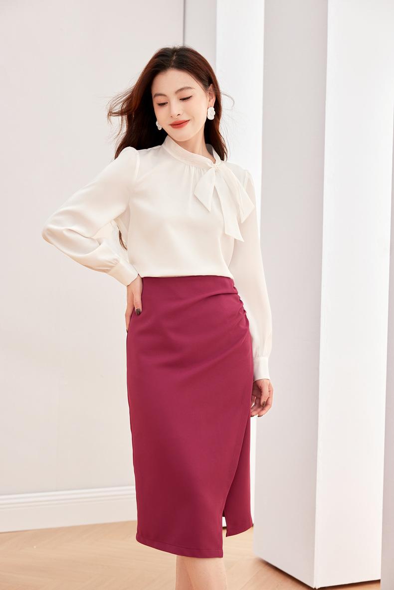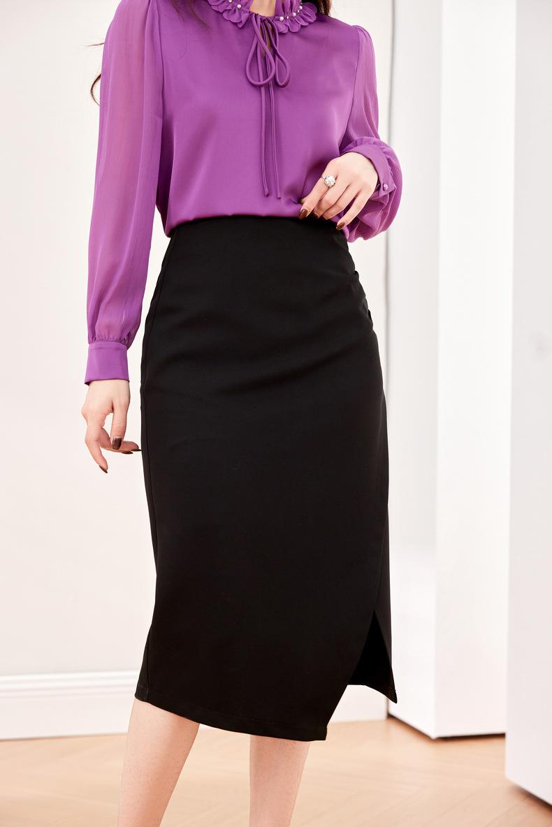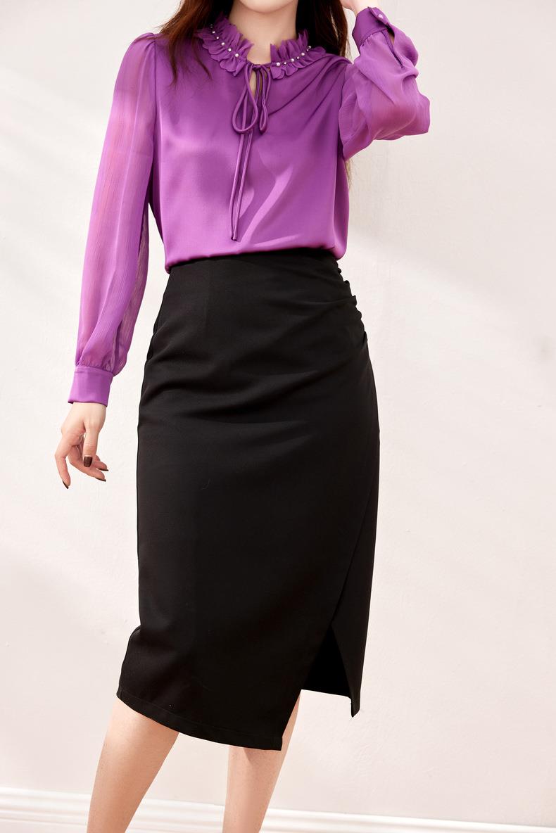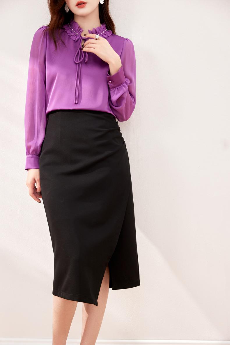 压褶不规则开??半身裙2024春装新款显瘦中长裙直筒裙6507