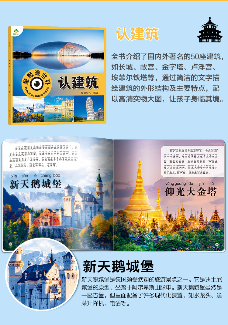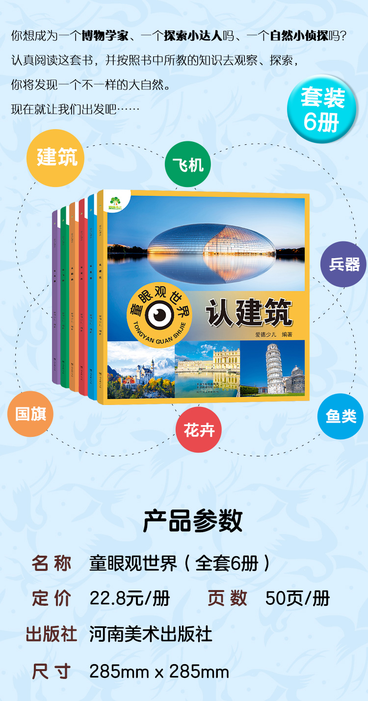 童眼观世界6册4-8岁儿童看图识物书启蒙益智早教书百科全书科普百科全套恐龙百科全书认识标志功能建筑飞机鱼类花卉植物鸟类国家