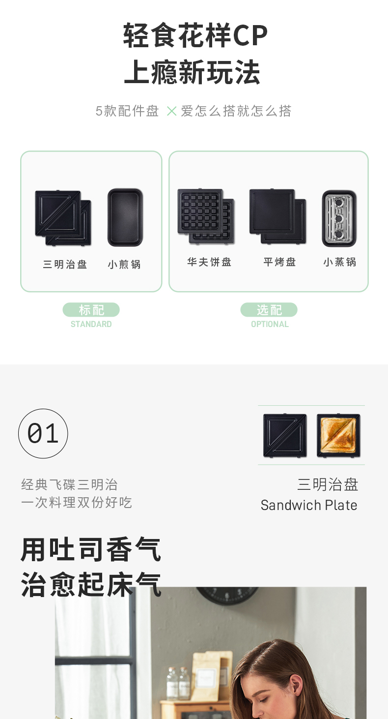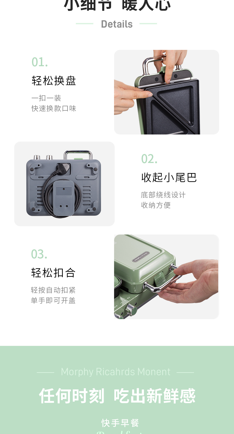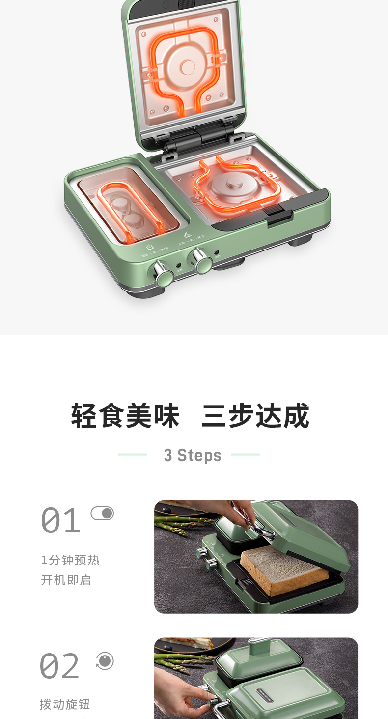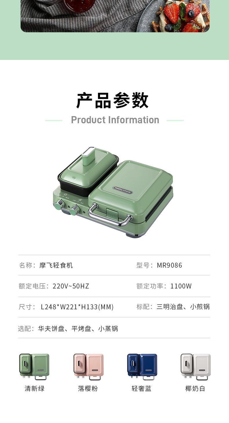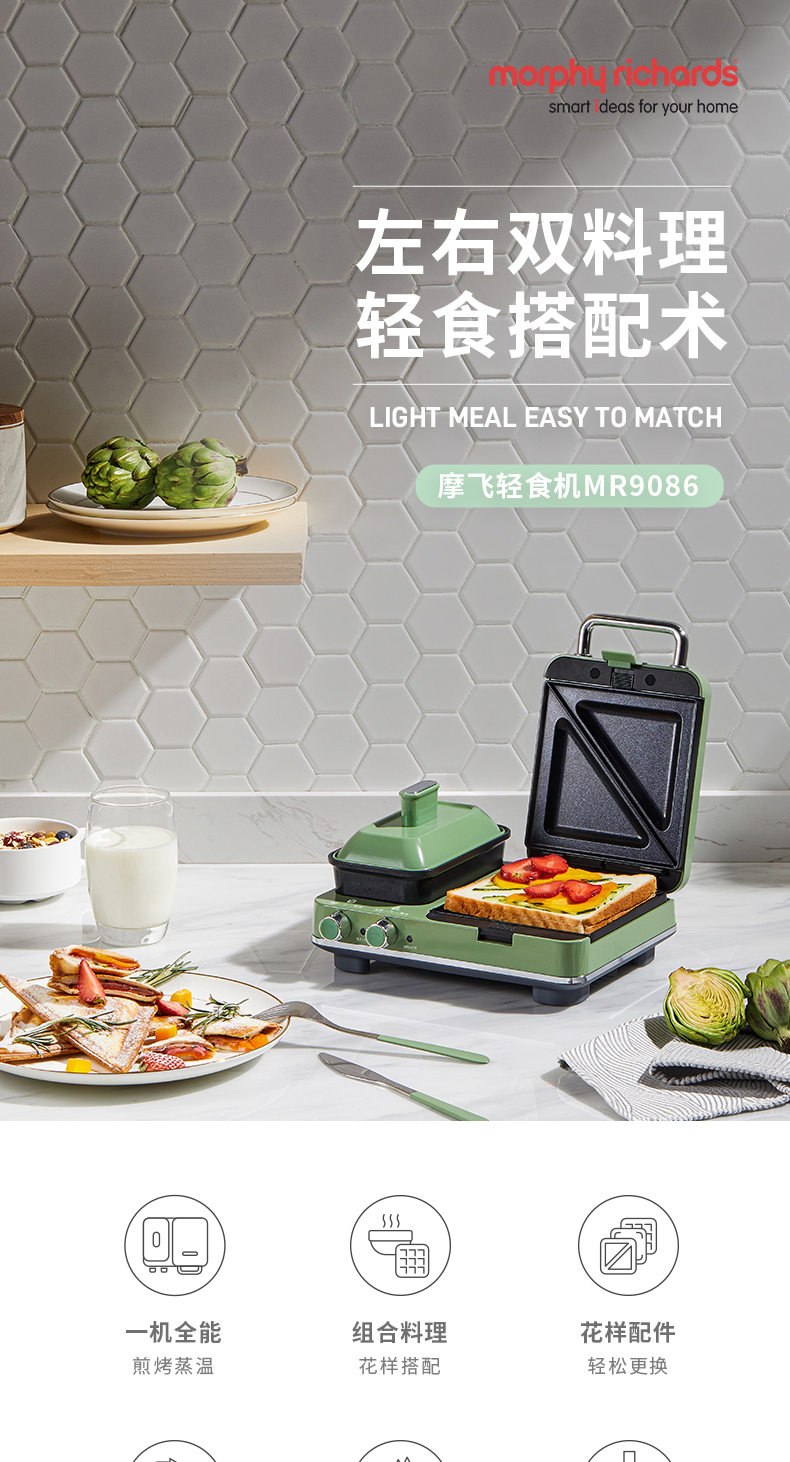 摩飞多功能早餐机神器三明治轻食机小型家用华夫饼机烤吐司面包机