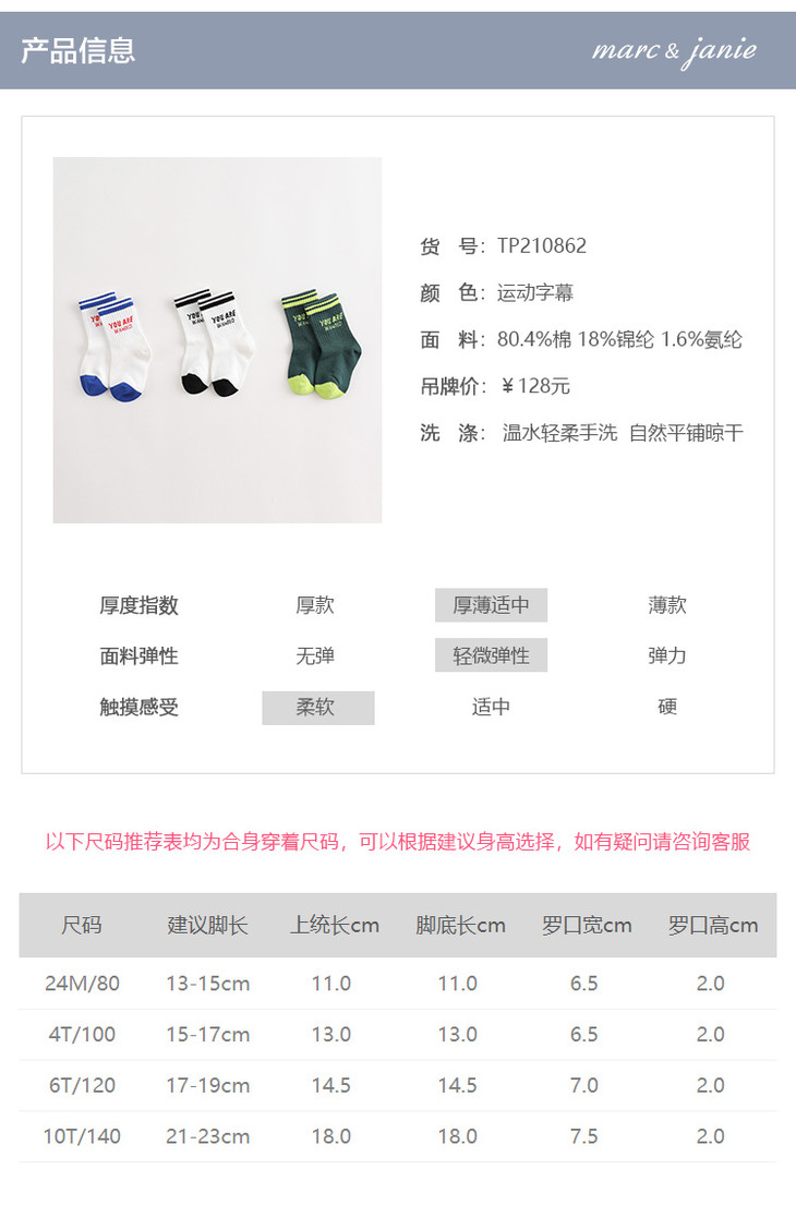 【3双装】马克珍妮新款宝宝秋装 男童短袜 儿童袜子210862