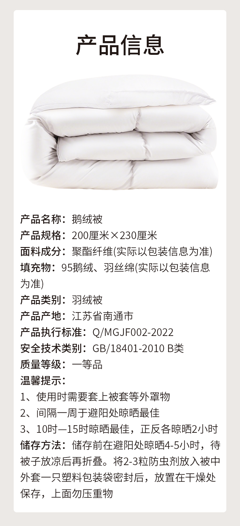 【5斤被3-5天发货】【专享】笙观相沐鹅绒被 95%绒子含量 大朵白鹅绒填充 高蓬饱满 轻盈保暖