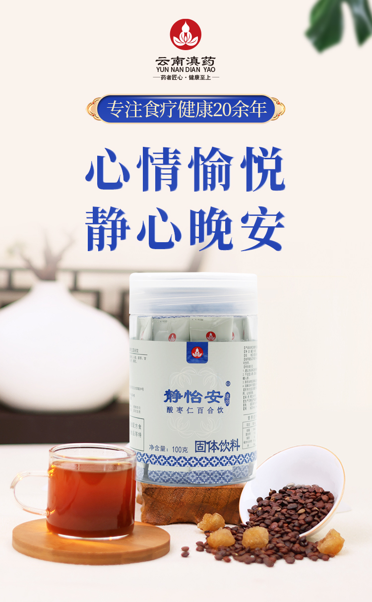 静怡安茶睡眠不好茶静心晚安酸枣仁百合龙眼肉药食两用原料草本浓缩速溶吸收好(5g*20袋/瓶×2瓶)