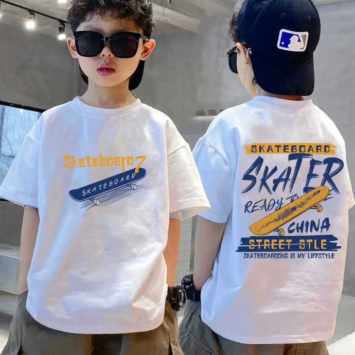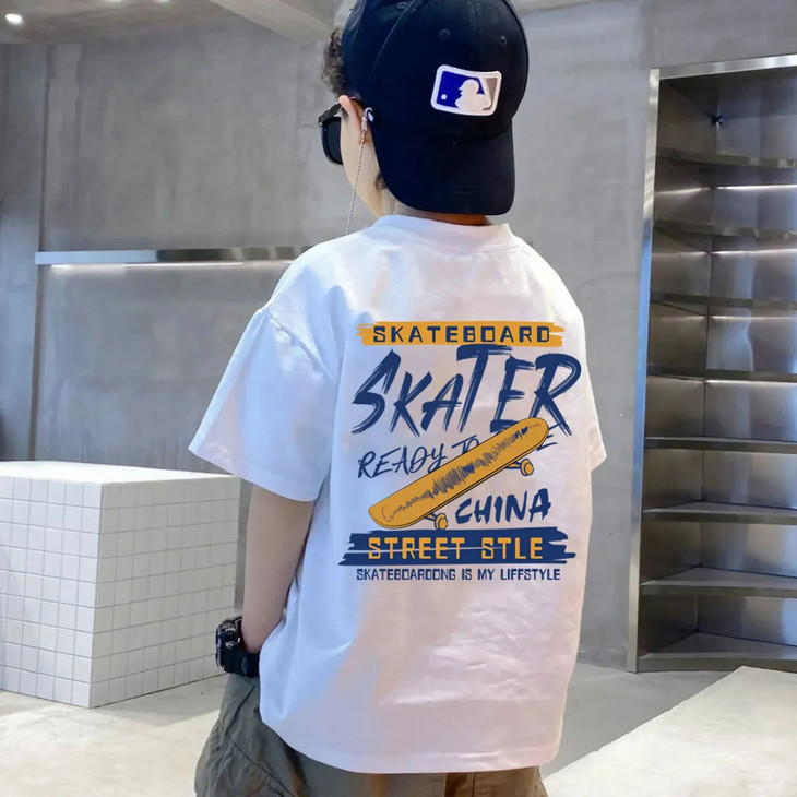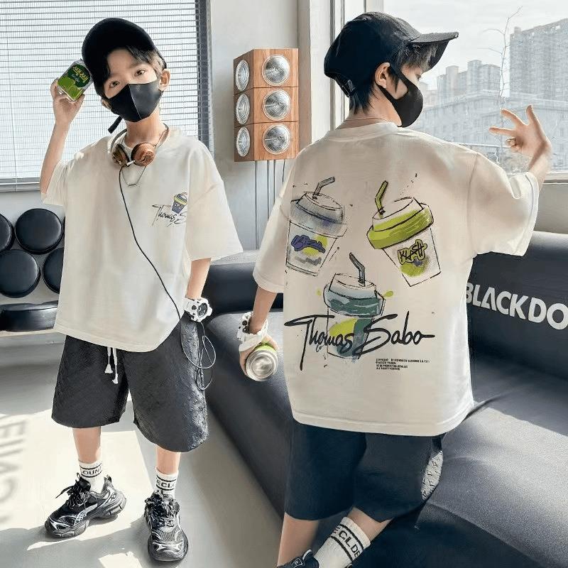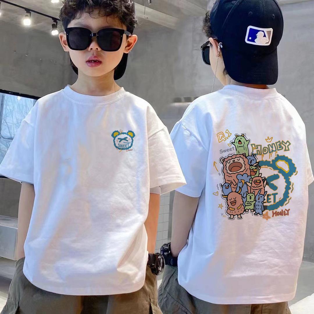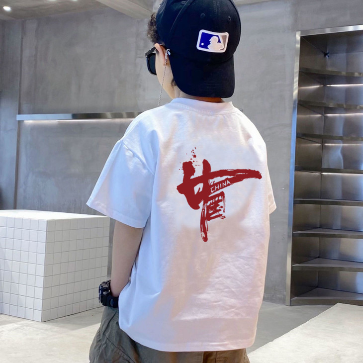 男童220克纯棉T恤夏装炸街短袖中大童洋气男孩夏季上衣儿童潮体恤90-170