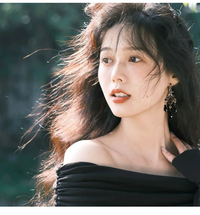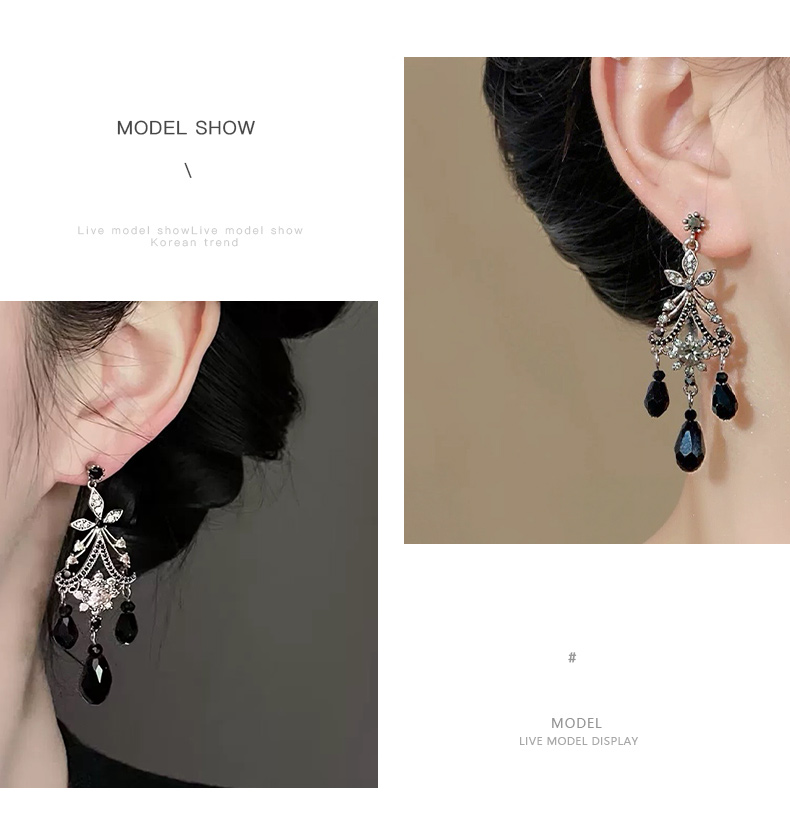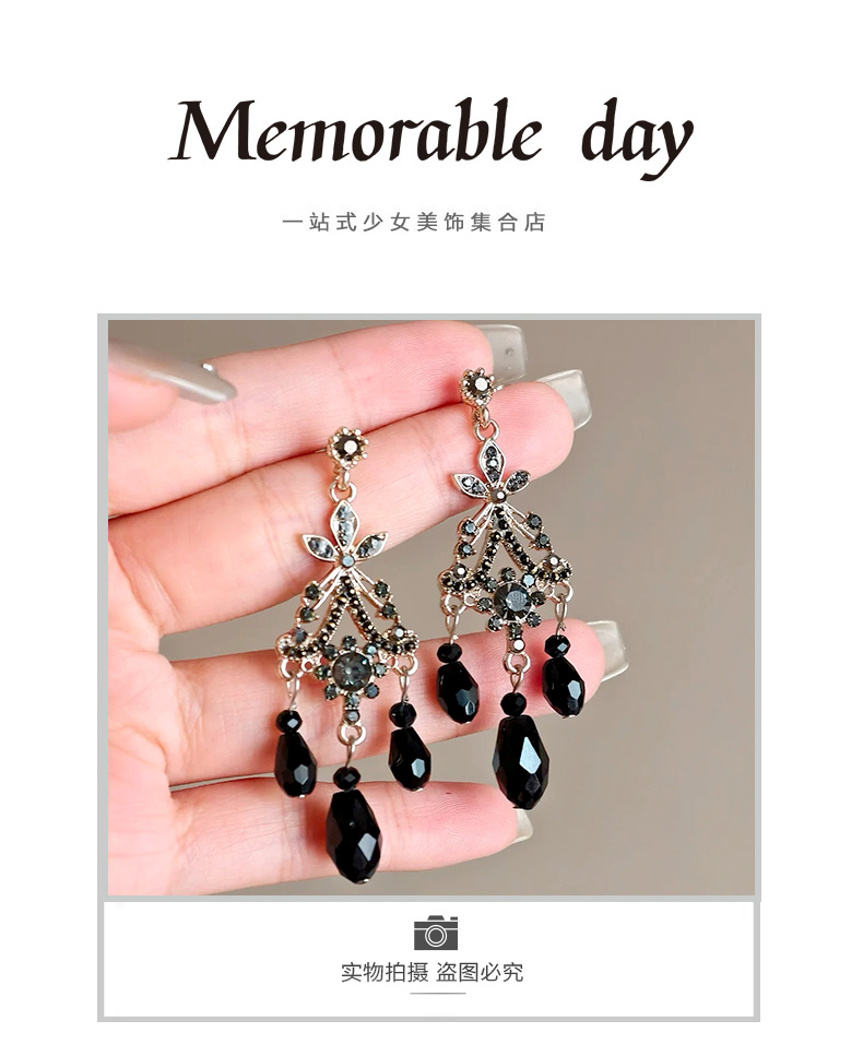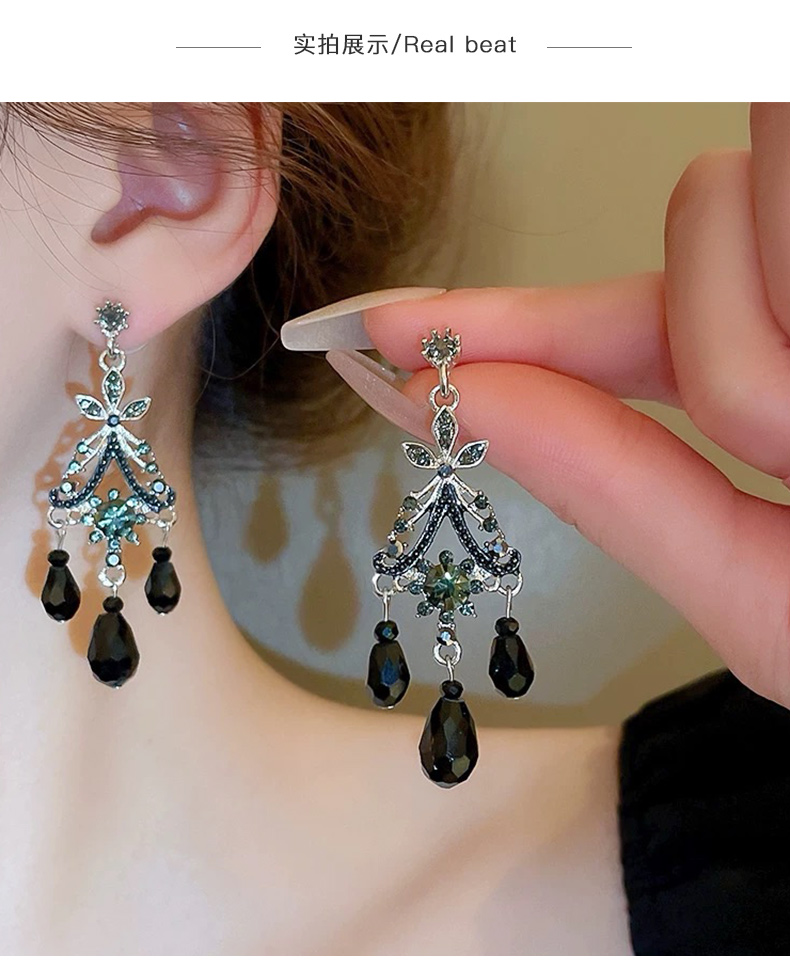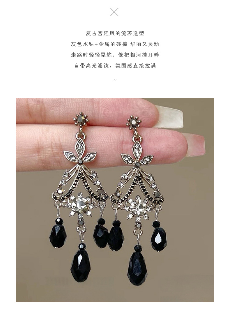 宫廷风黑色水晶吊坠耳饰银针耳环-纪念日百货门店同款166693425