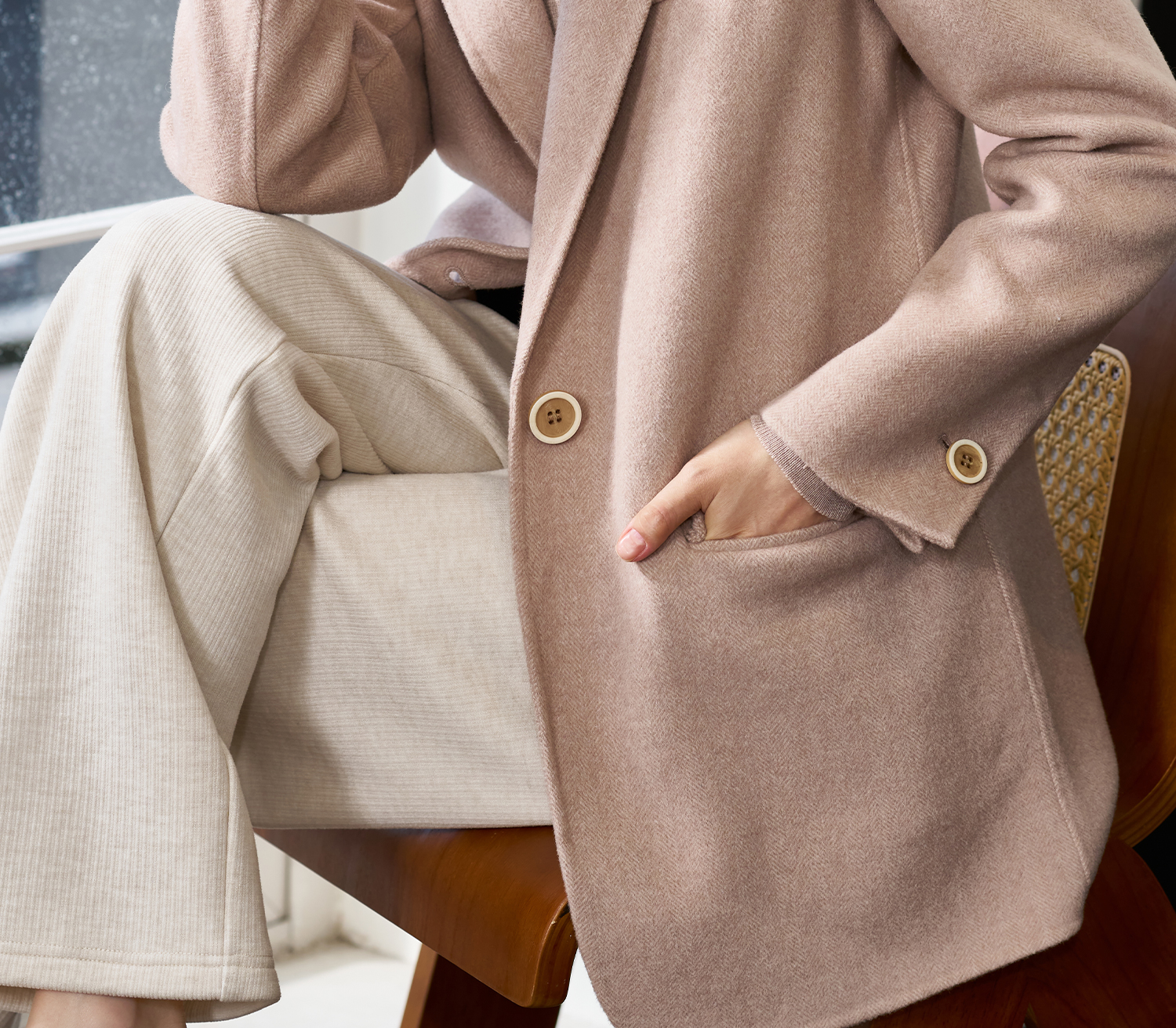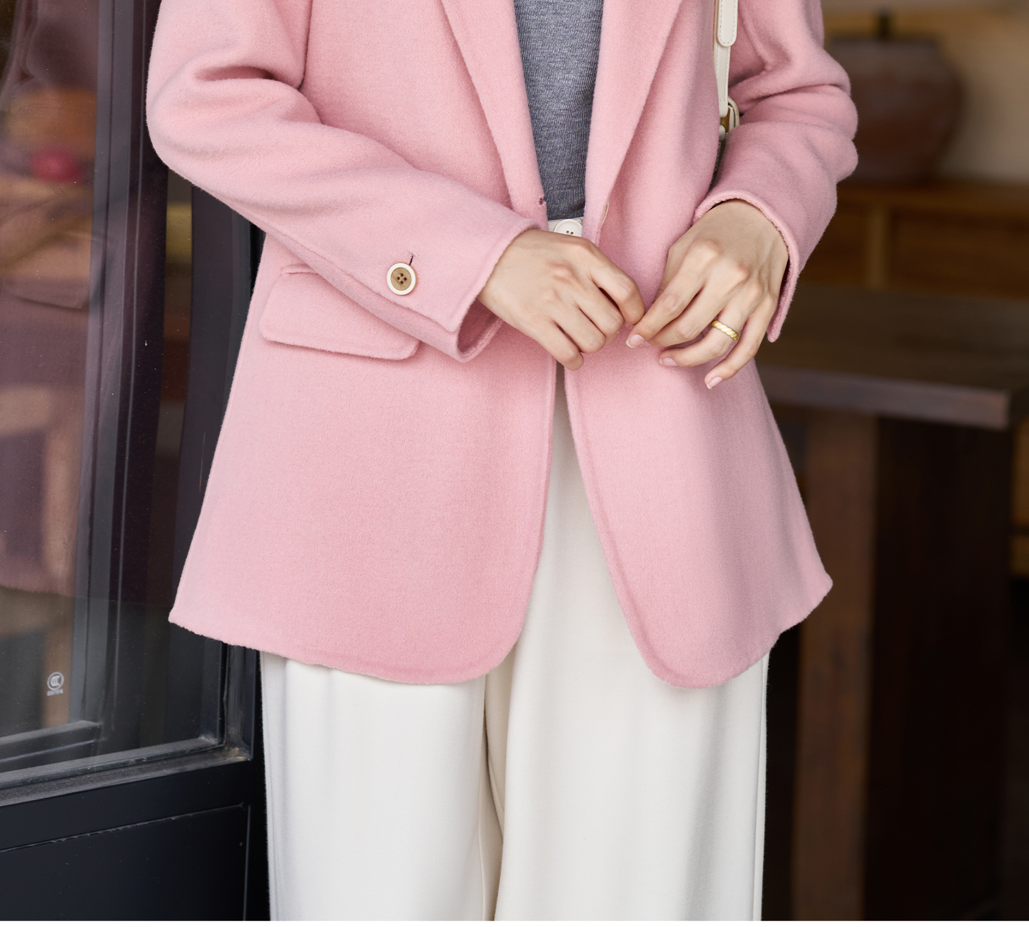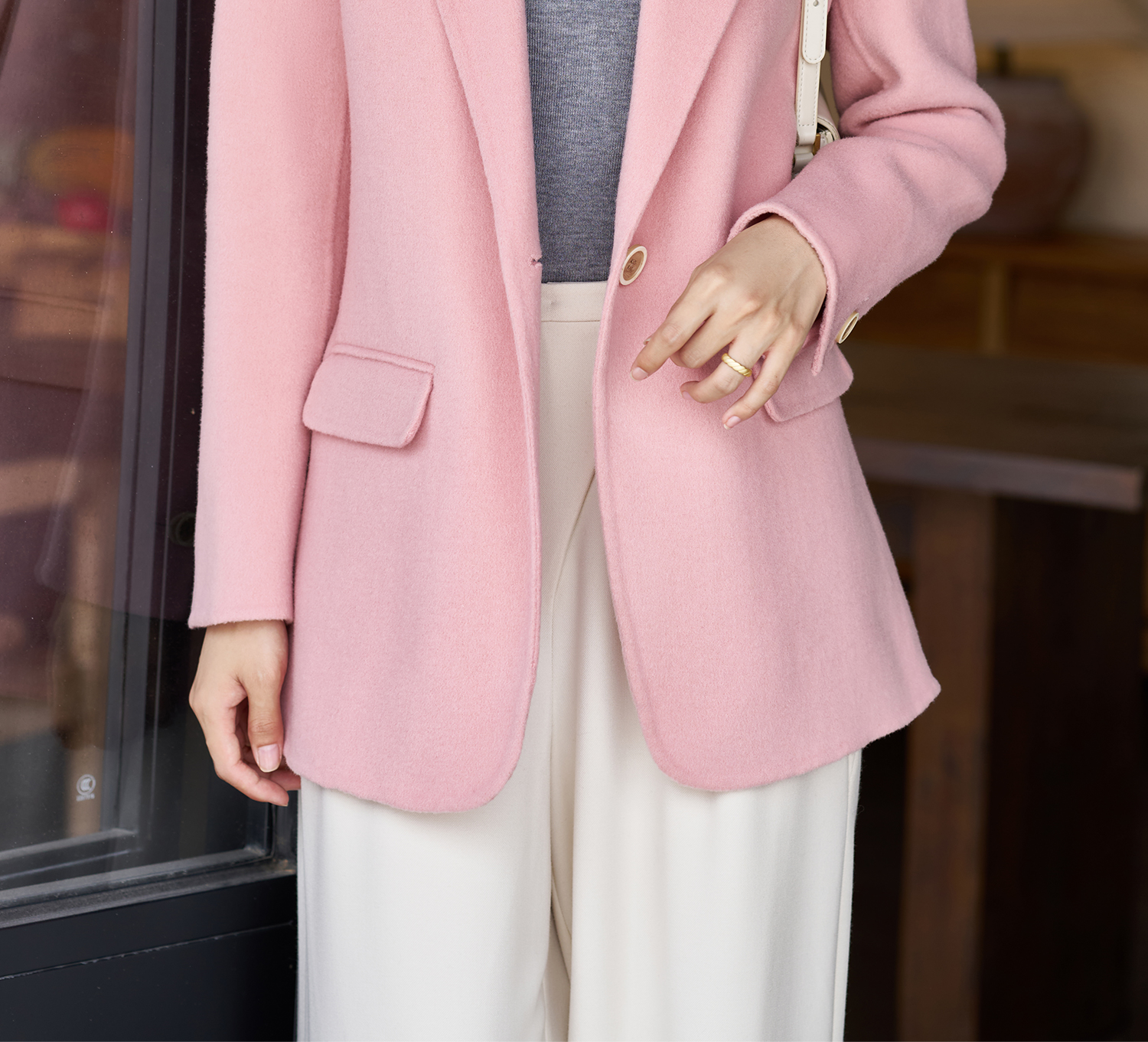 米思阳2025冬季新款经典简约风毛呢外套双面呢100%羊毛西装女1842