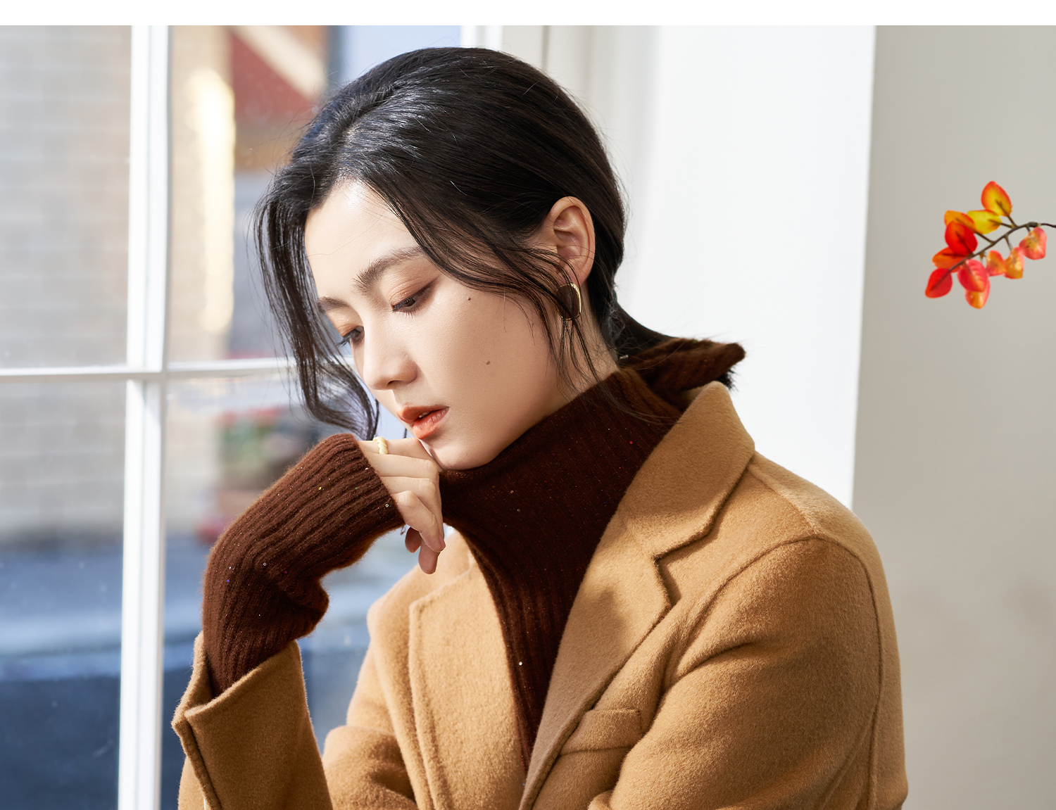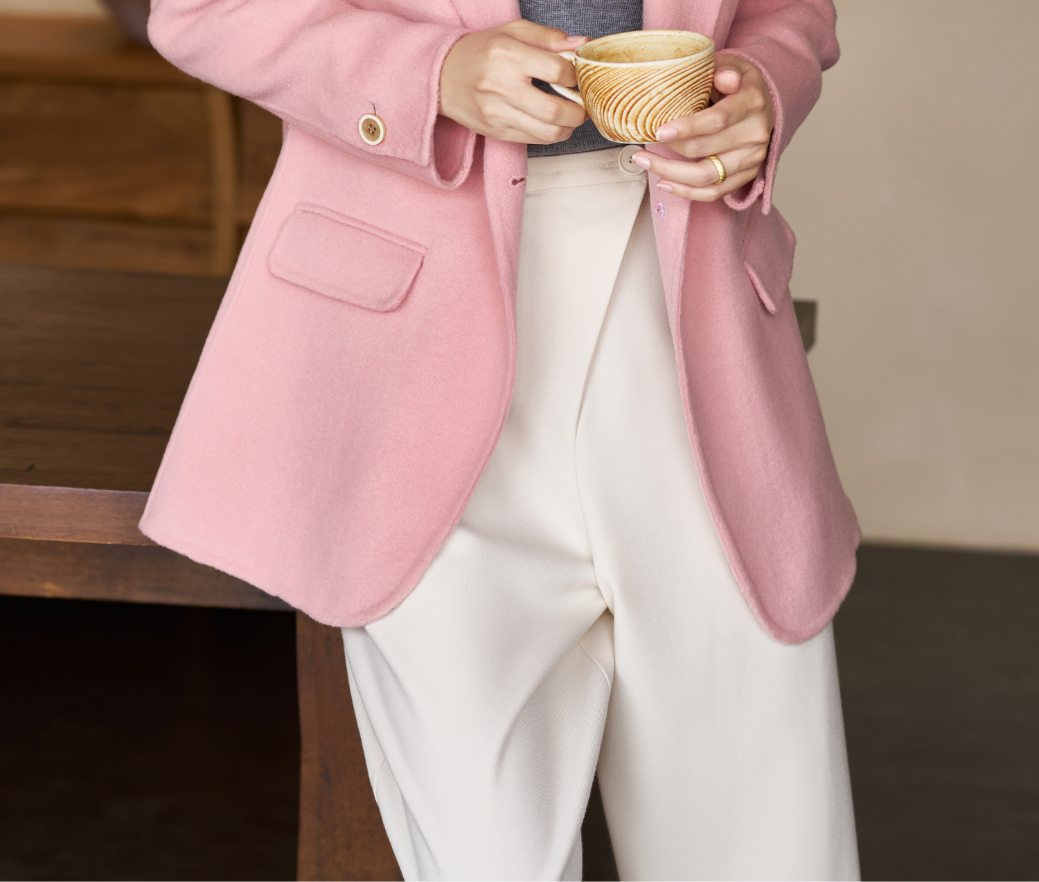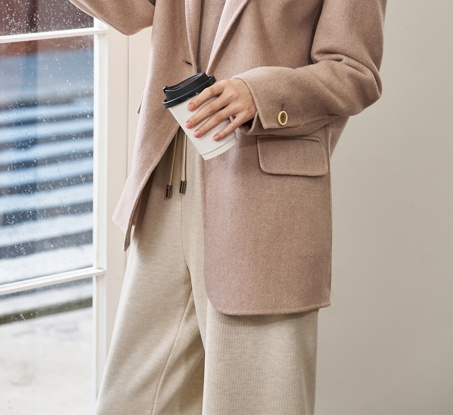 米思阳2025冬季新款经典简约风毛呢外套双面呢100%羊毛西装女1842