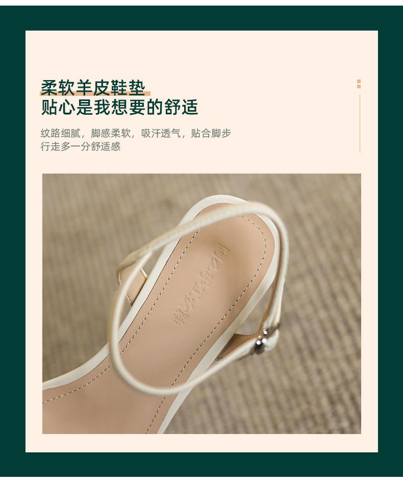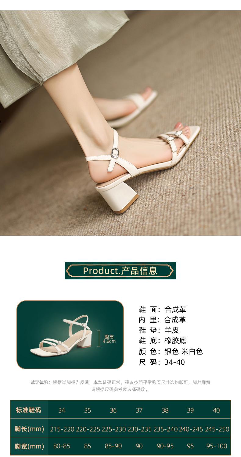 方头仙女风一字带凉鞋不累脚夏季银色百搭中跟4.8CM 商品图4