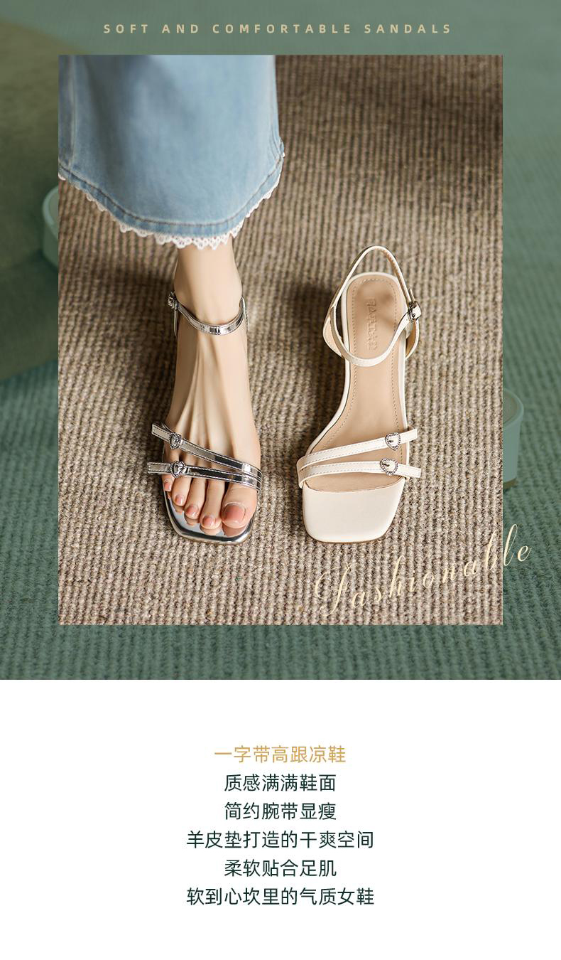 方头仙女风一字带凉鞋不累脚夏季银色百搭中跟4.8CM 商品图0