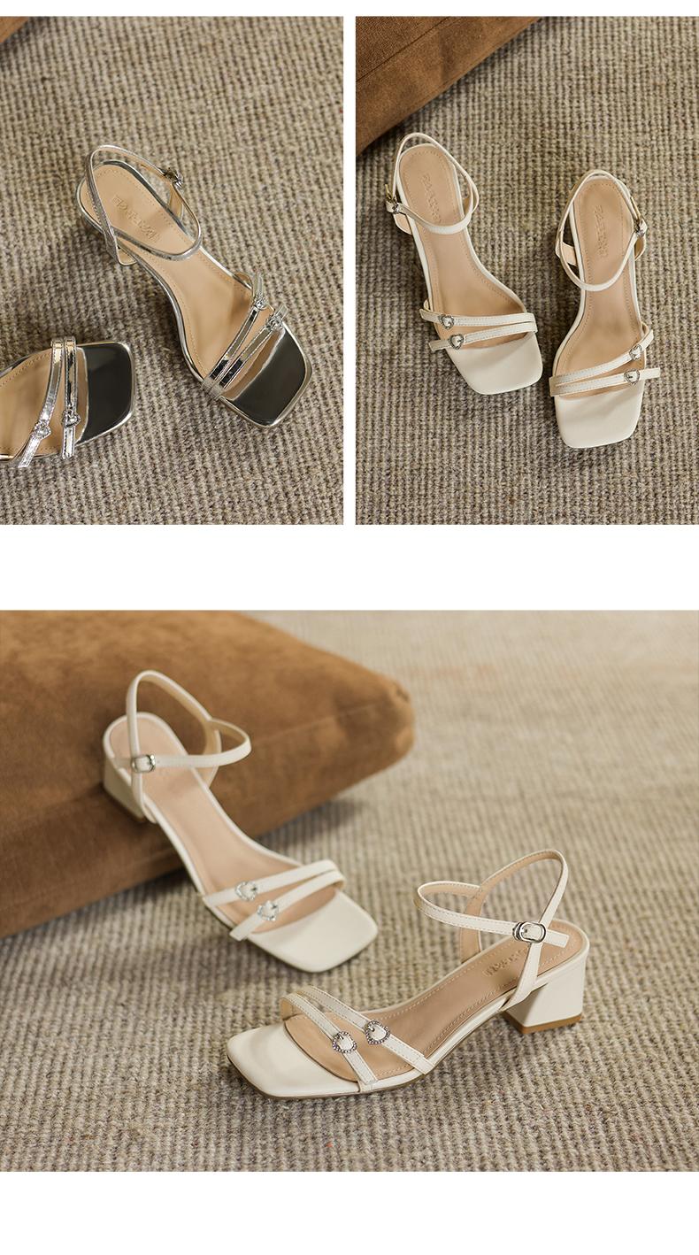 方头仙女风一字带凉鞋不累脚夏季银色百搭中跟4.8CM 商品图3