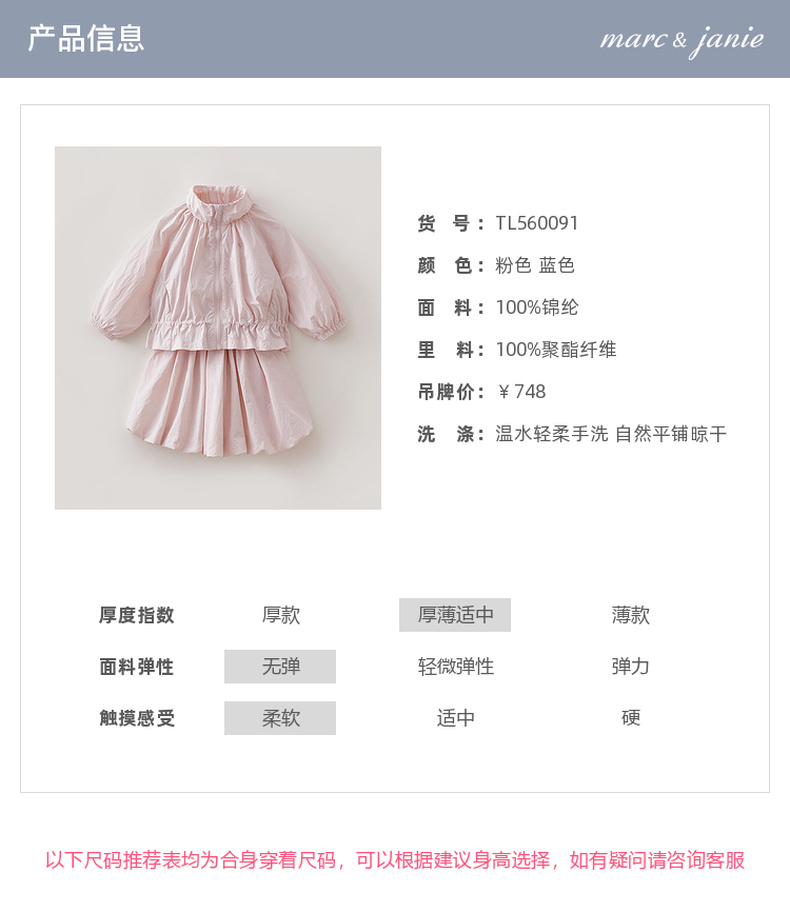 马克珍妮轻氧运动女童花苞夹克套装2026年春装新款560091