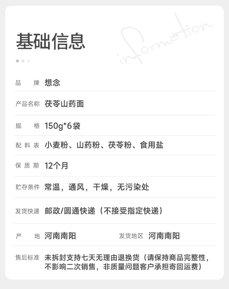【想念 茯苓山药面】非遗山药种植工艺 添加茯苓粉 入口爽滑劲道 一面多吃 易煮不糊汤AA