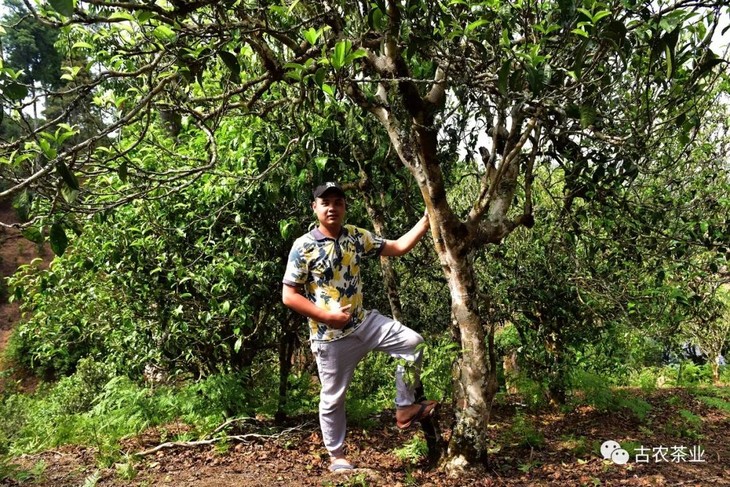 该“老班章第一高杆古茶王”片区,四面青山环包,山涧溪流涓涓,阳坡面光照充足,植被保存更为完好,形成特殊的小盆地立体综合气候环境,古茶树树姿高大强壮,长势茂盛,树龄极老,高大的古茶树与岩石混生共长,茶品味道更佳,滋味更好,韵味更甚,气感最为强烈。