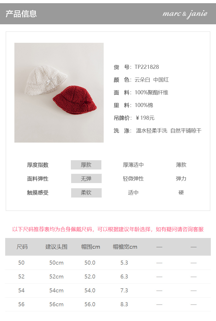 【马克珍妮 芦芙】冬装 女童植绒蝴蝶结仿羊驼渔夫帽221828