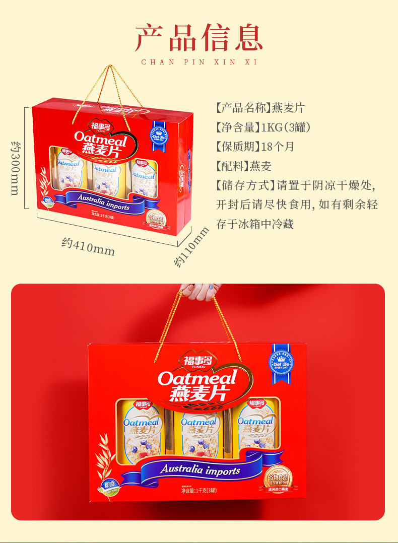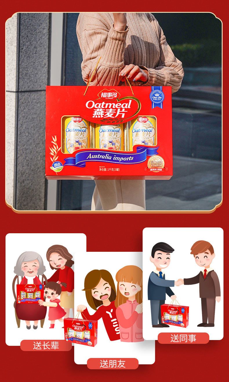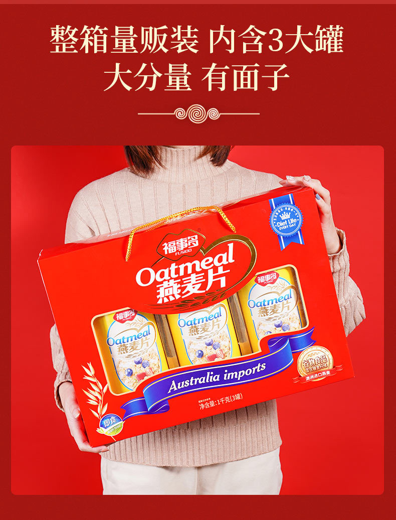 【营养谷物❗️澳洲燕麦片礼盒装1kg】能量满满,清甜香浓美味,科学配比,冲泡即食,早餐即食代餐过年送礼大礼包
