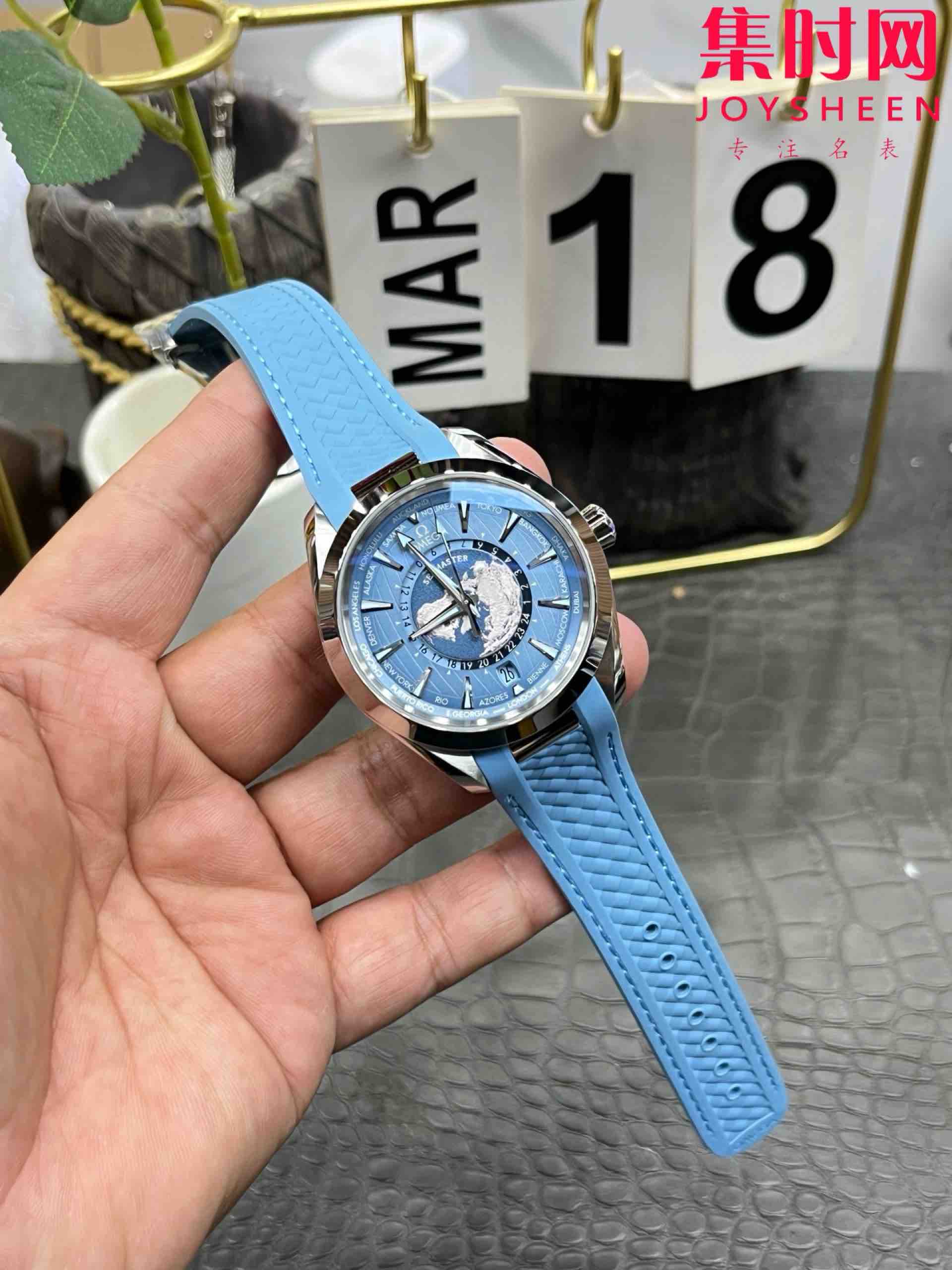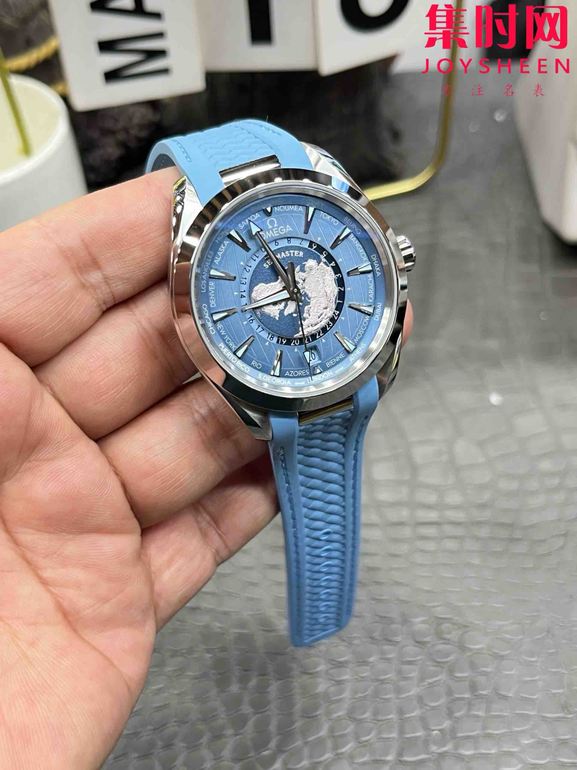VS欧米茄新款海马世界时系列 VS海马世界时渐变蓝 湖蓝海马 海马世界时密底款 75周年纪念版 夏日蓝 男士腕表 表径43mm Aqua Terra 世界时腕表。一款可以戴着环游世界的世界时腕表,激光烧蚀蓝色海洋,陆地浮雕勾勒,24小时hesalite水晶环。辽阔世界尽在掌握,于方寸之间伴您开启环球之旅!搭载VS定制Cal.8938多功能全自动机械机芯,蓝宝石水晶镜面,316L精钢表壳,定制橡胶表带,原装折叠扣,功能同步原装真实可用!表径43mm