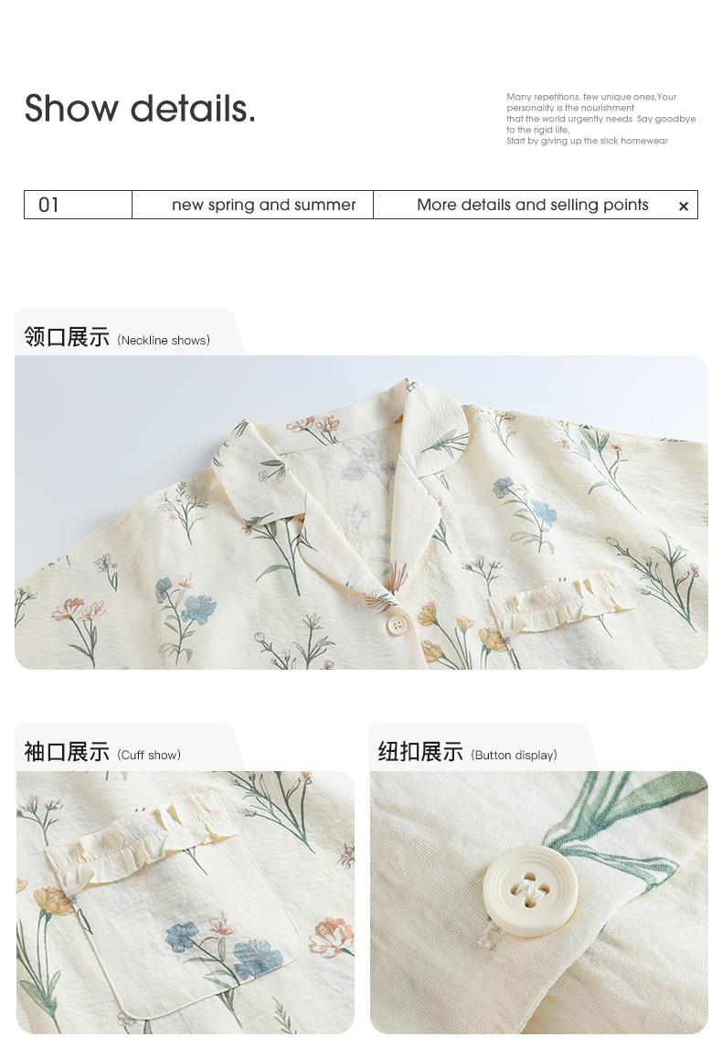 栗茵小众设计师新款泡泡绵女士睡衣夏季短袖可外出家居服三件套