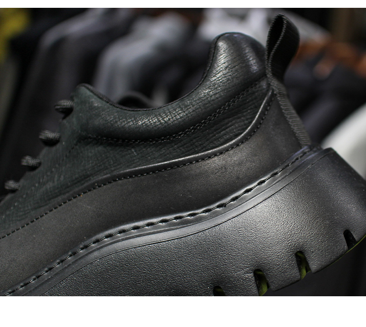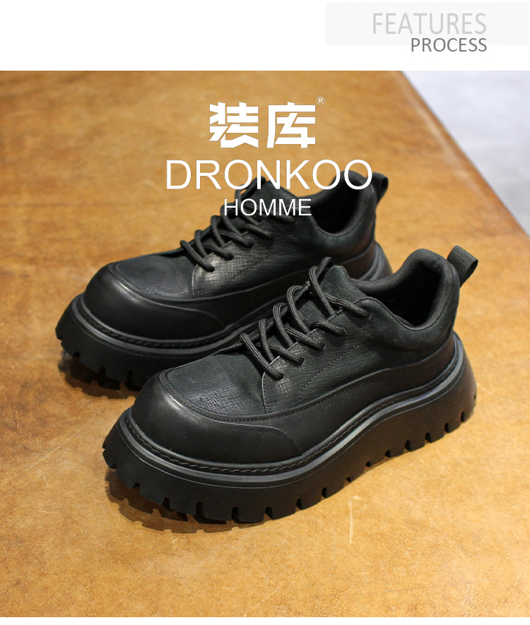 DRONKOO 2025 系带亮皮拼小暗格皮擦色低帮真皮休闲鞋