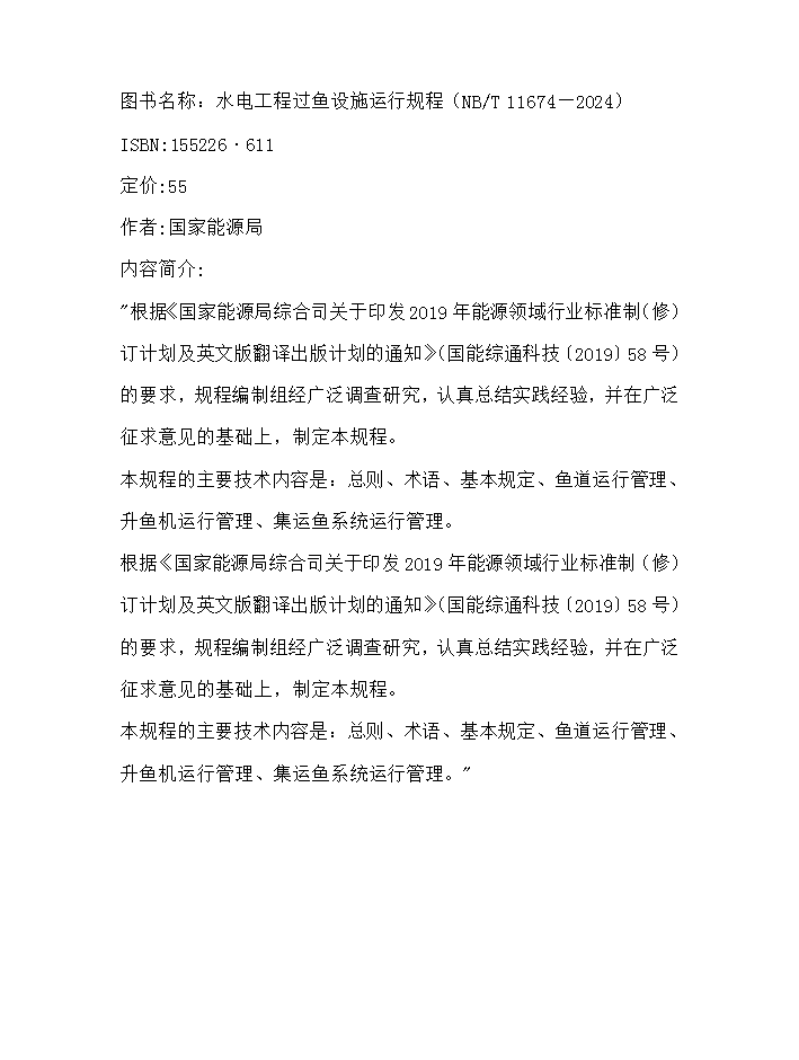 水电工程过鱼设施运行规程(NB/T 11674—2024)