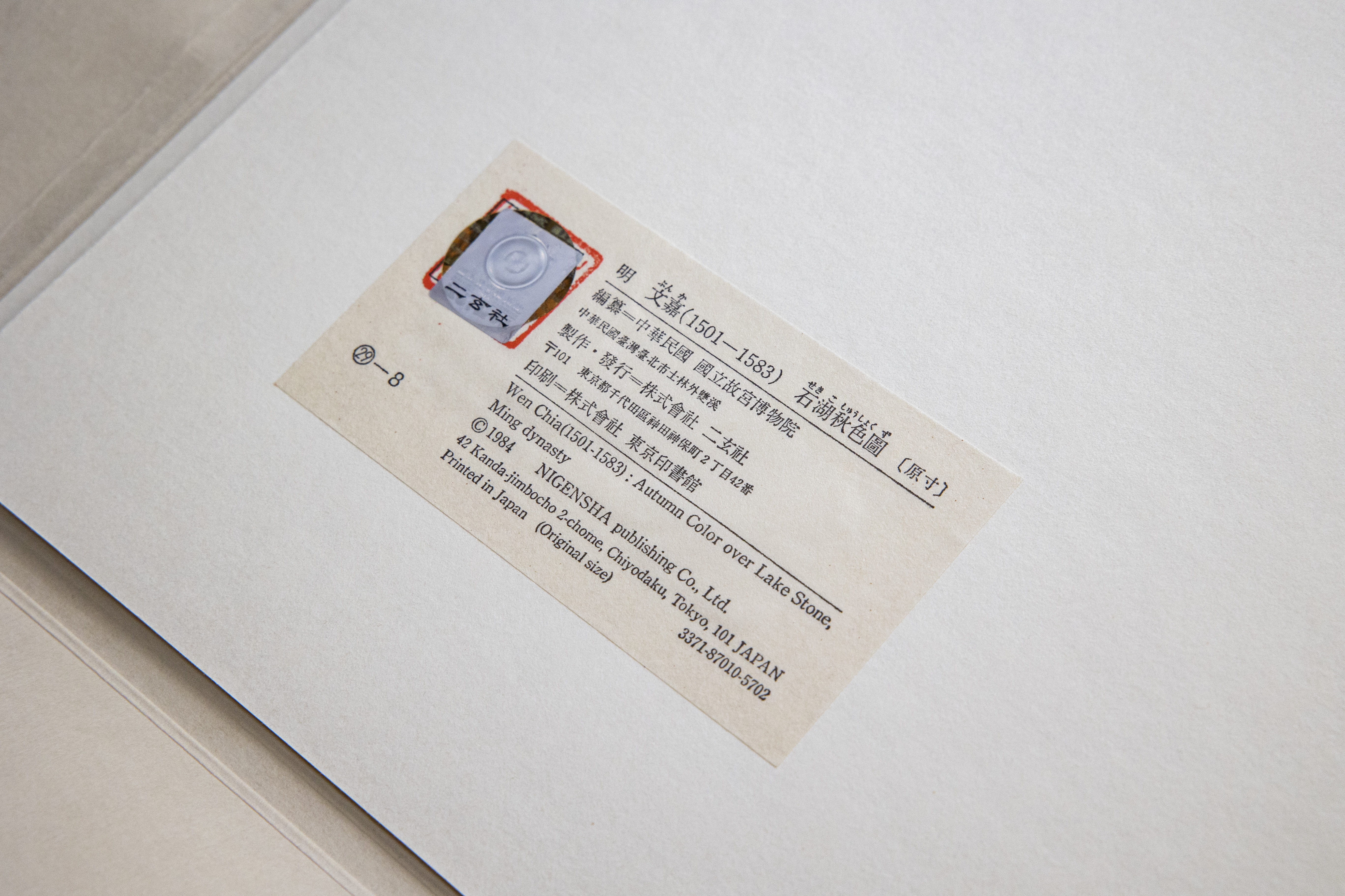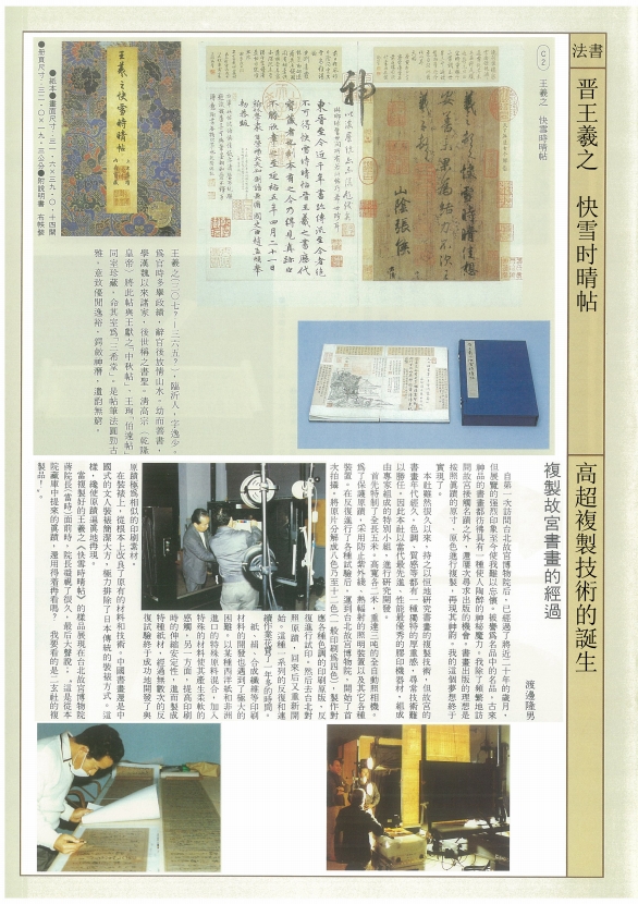 当复制好的王義之《快雪时晴帖》的样品展现在台北故宫博物院蒋院长(当时)面前时,院长凝视了很久,最后大声说:“这是从本院藏库中提来的真蹟,还用的着再看吗?我要看的是二玄社的复制品”!