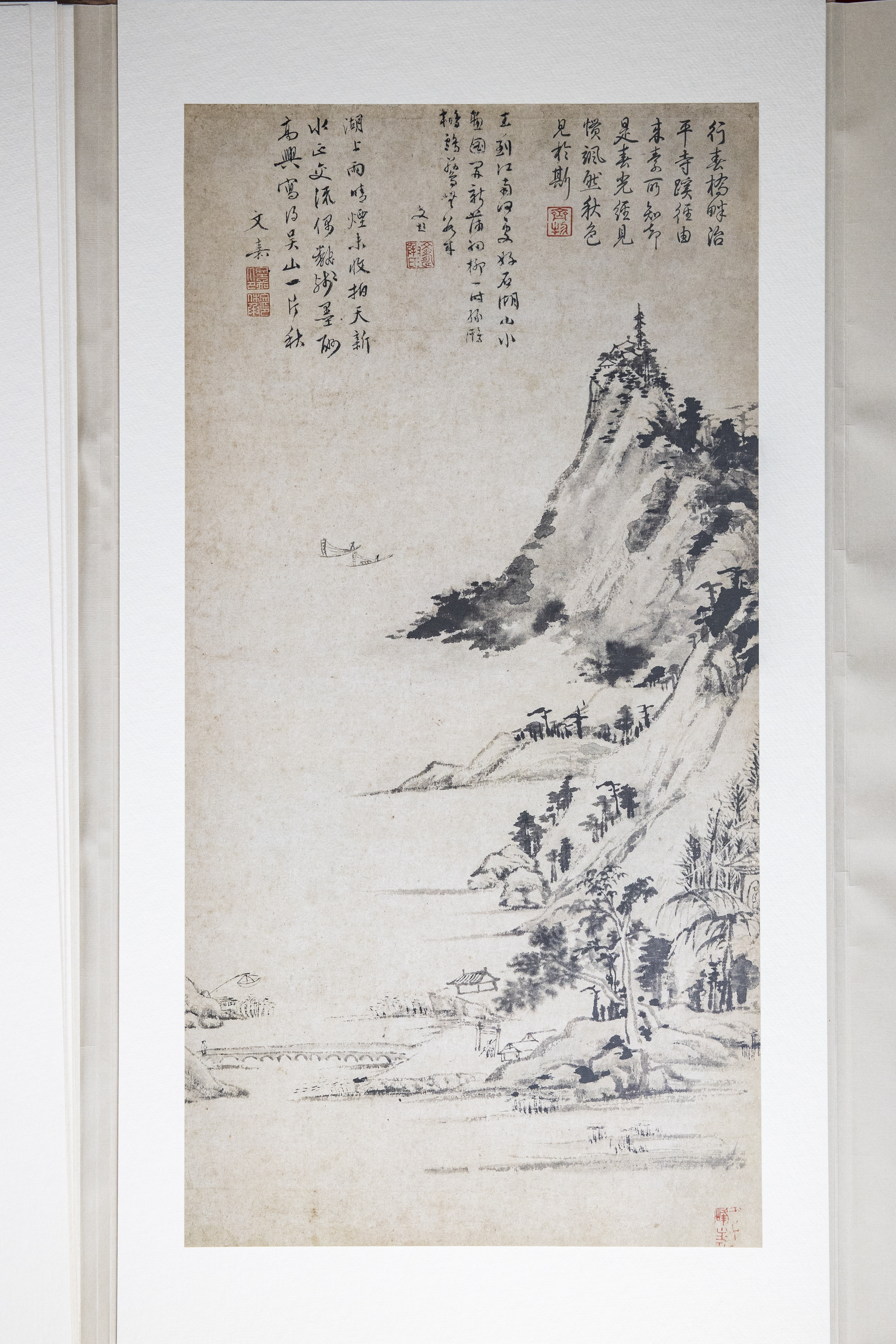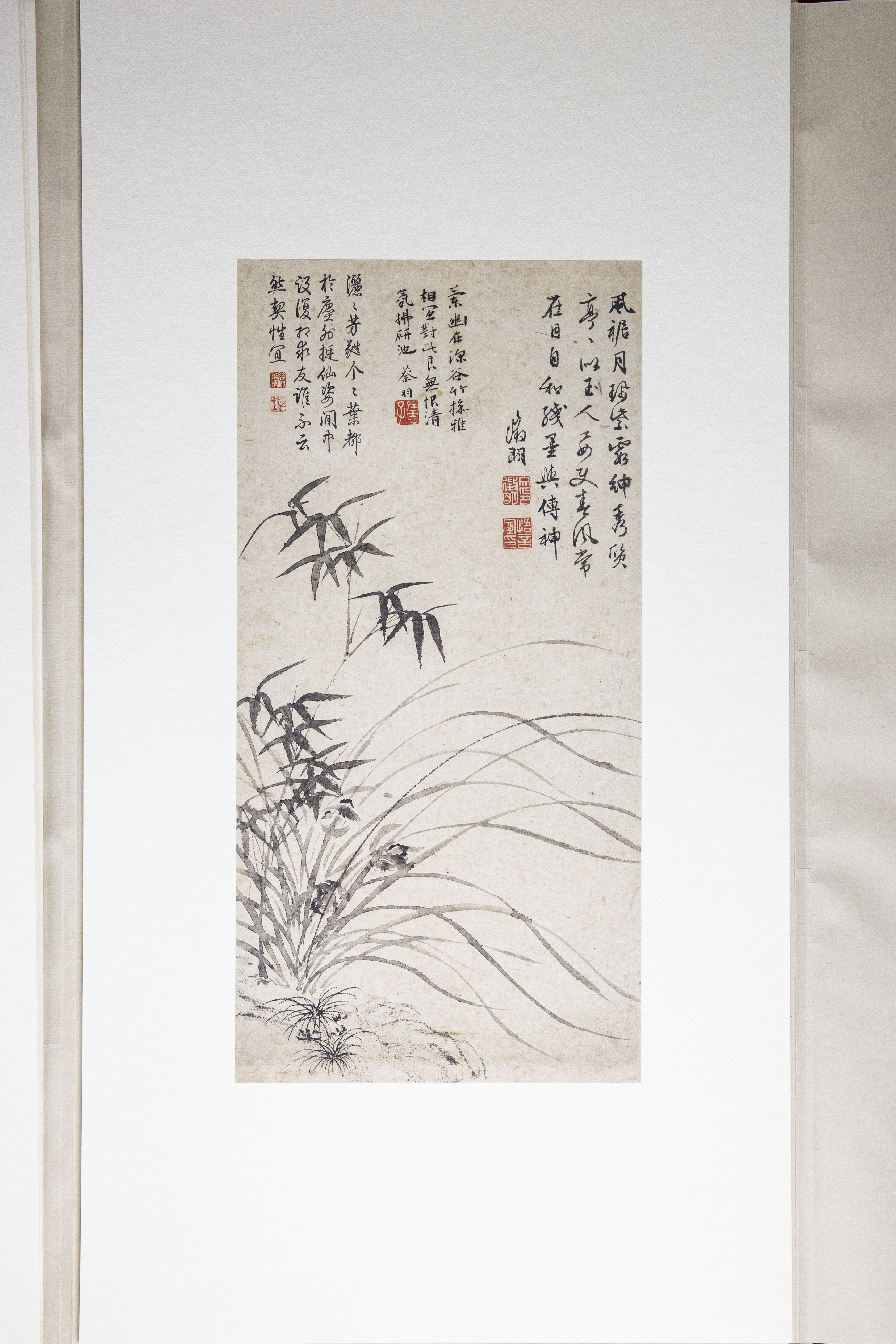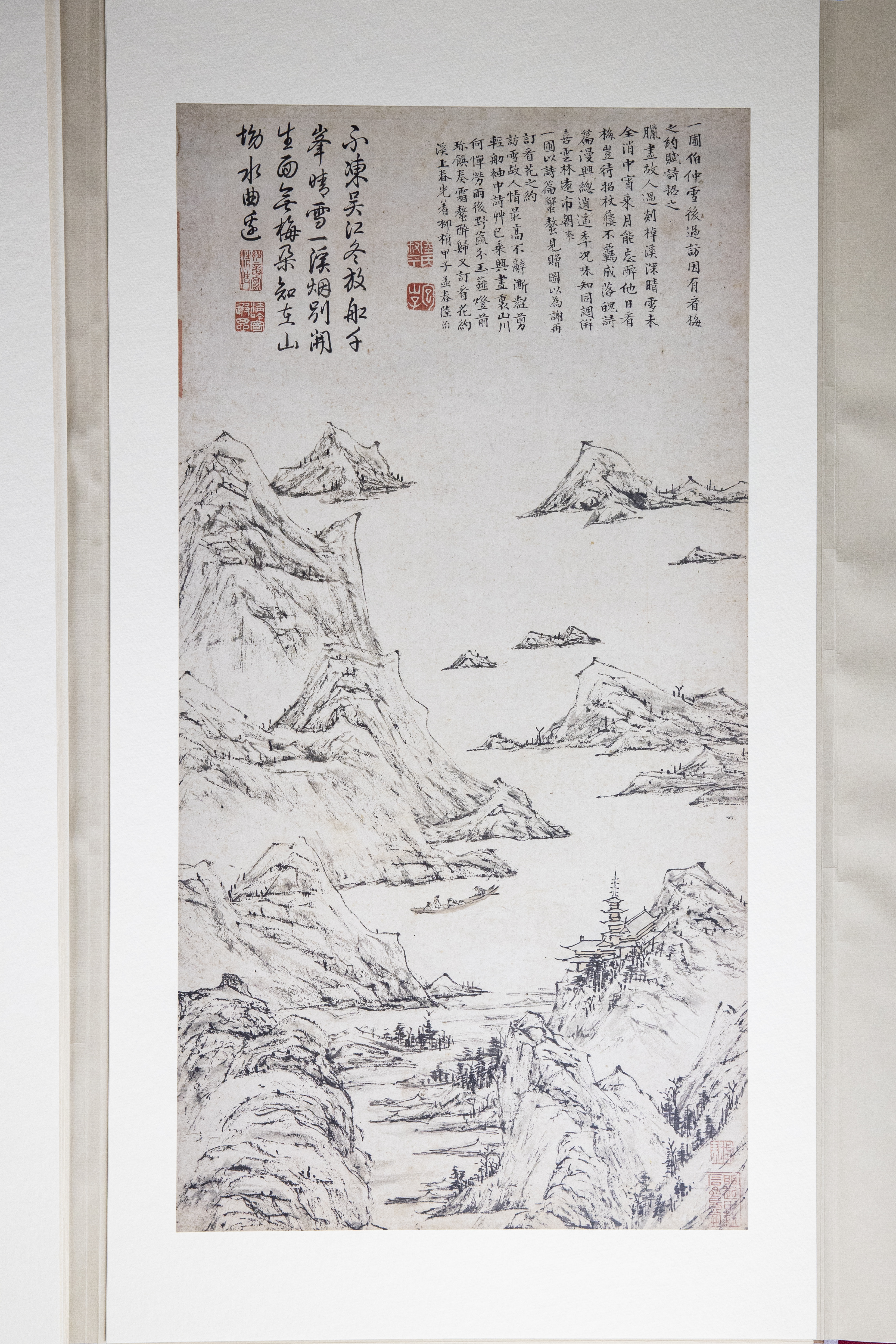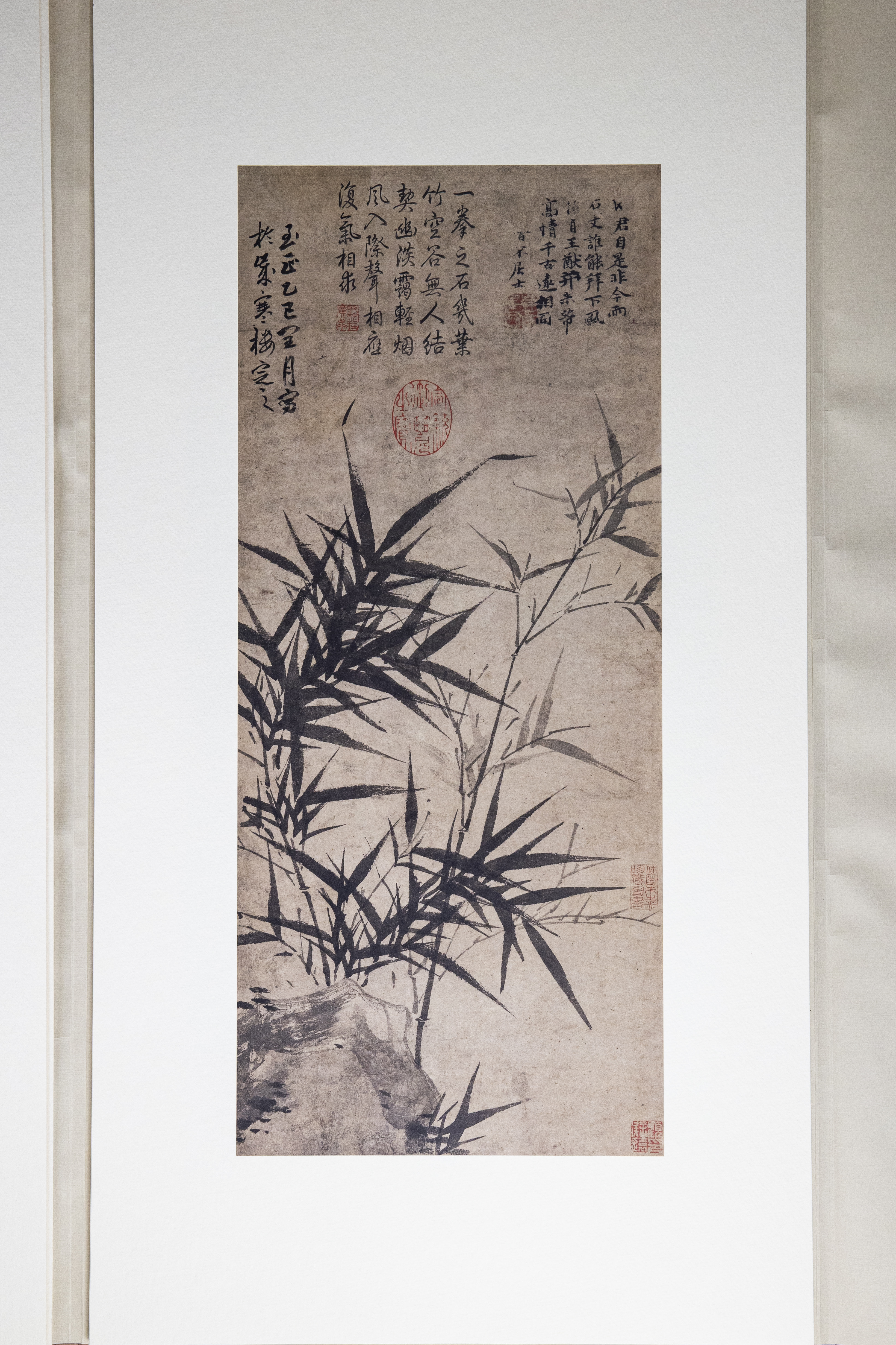 纸、绢、合成纤维等印刷材料的 开始也遇到了极大的困难。以某种西洋纸和非洲进口的特殊原料混合,加入特殊的材料使其产生柔软的感触,另一方面,提高印时的伸缩安定性,进而制成特种纸 材,经过无数次的反复实验终于成功地开发了于原蹟极为相似的印刷素材。在装裱上,从根本上改良了原有的材料和技术。中国书画还是中国式的文人装裱简洁大 方,极力排除了日本传统的装裱方式。方使原蹟逼真地再现。