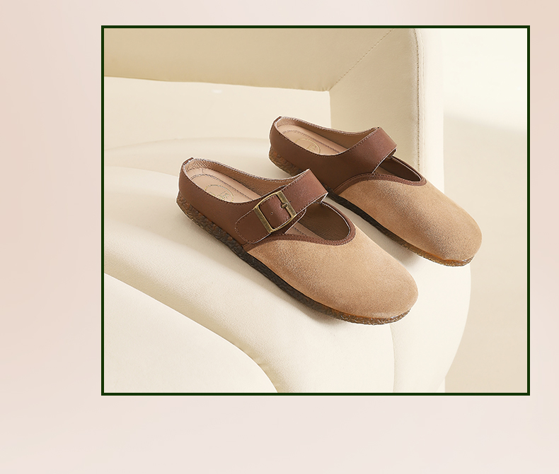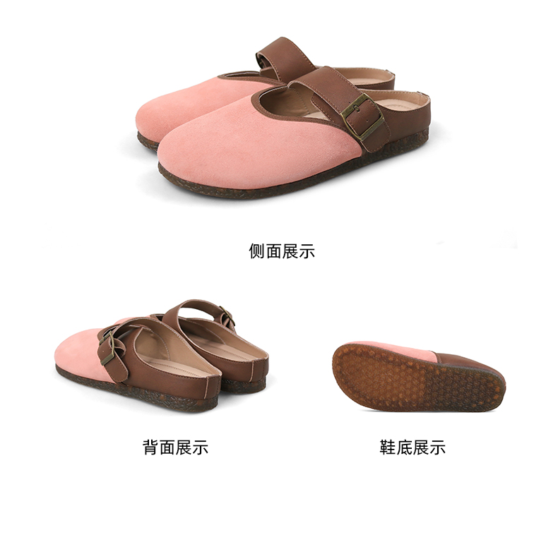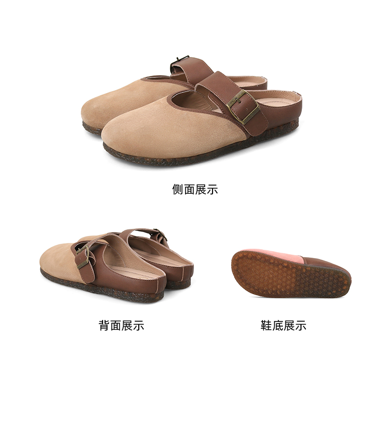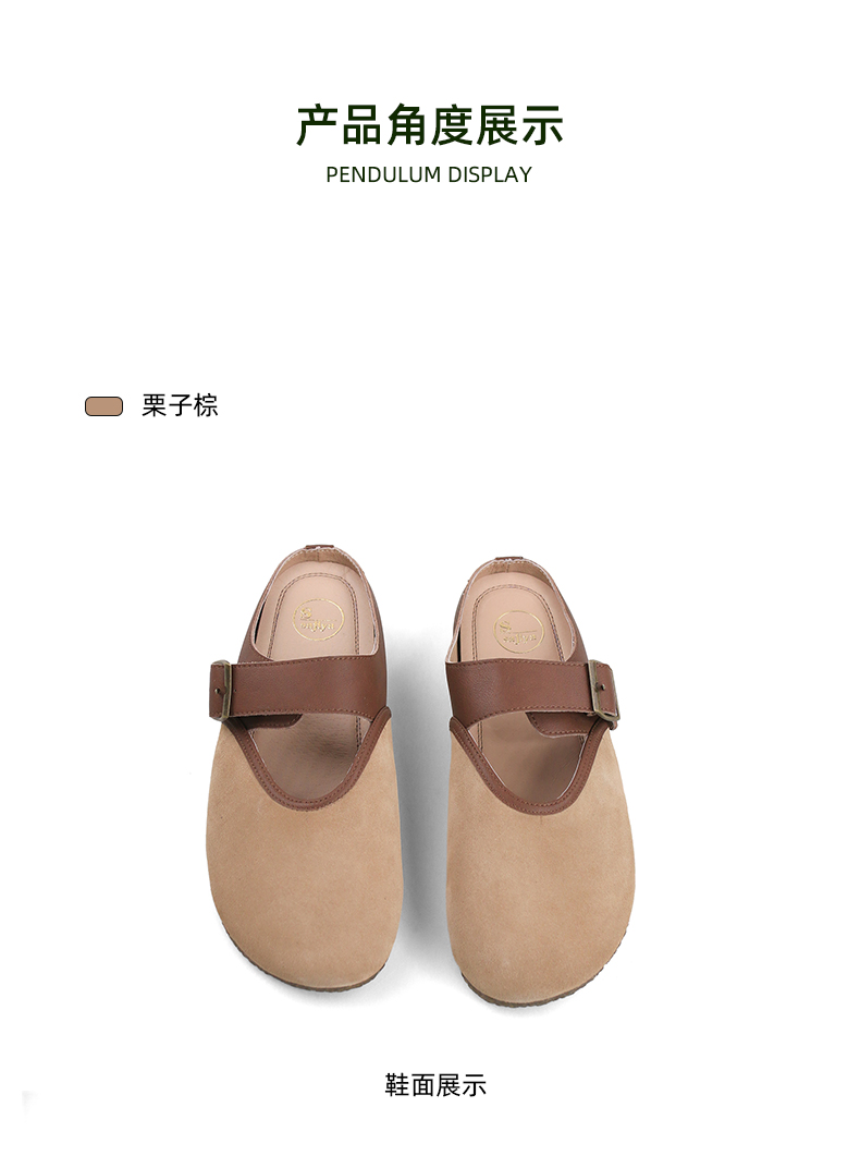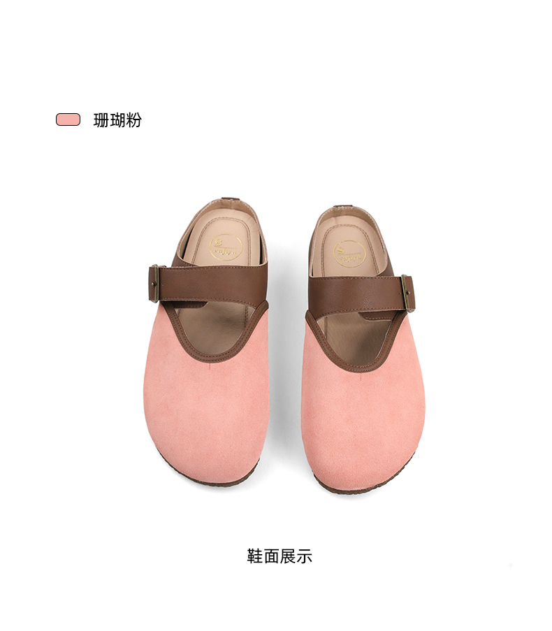 Safiya/索菲娅2024春 丑萌森系复古拼色包头外穿懒人勃肯鞋 SF42110093