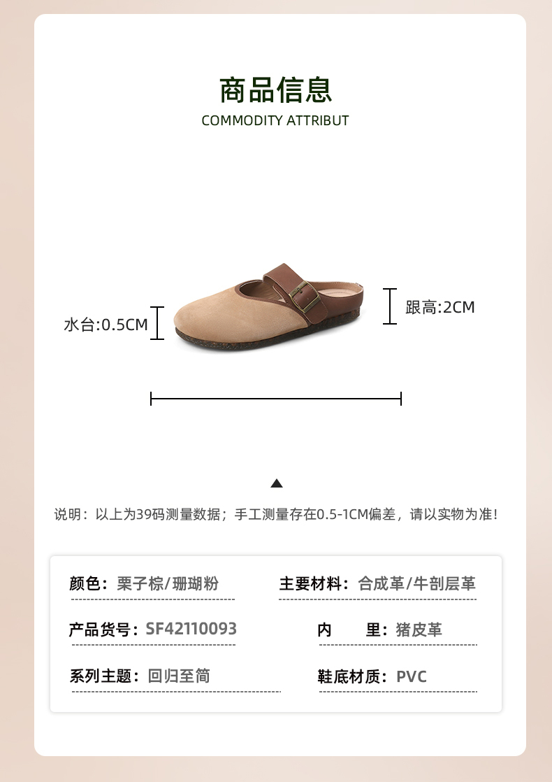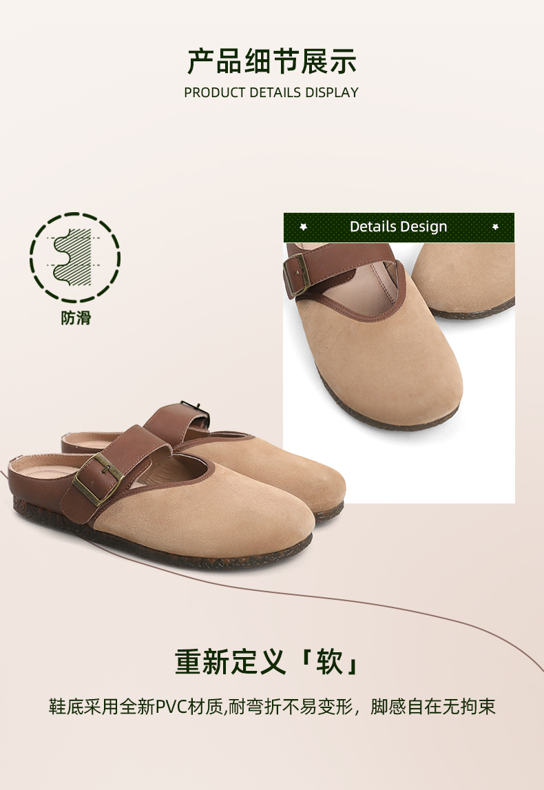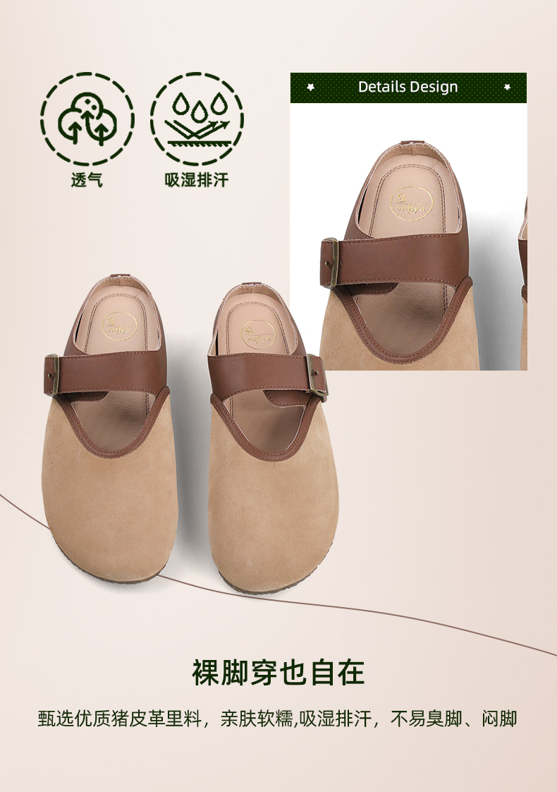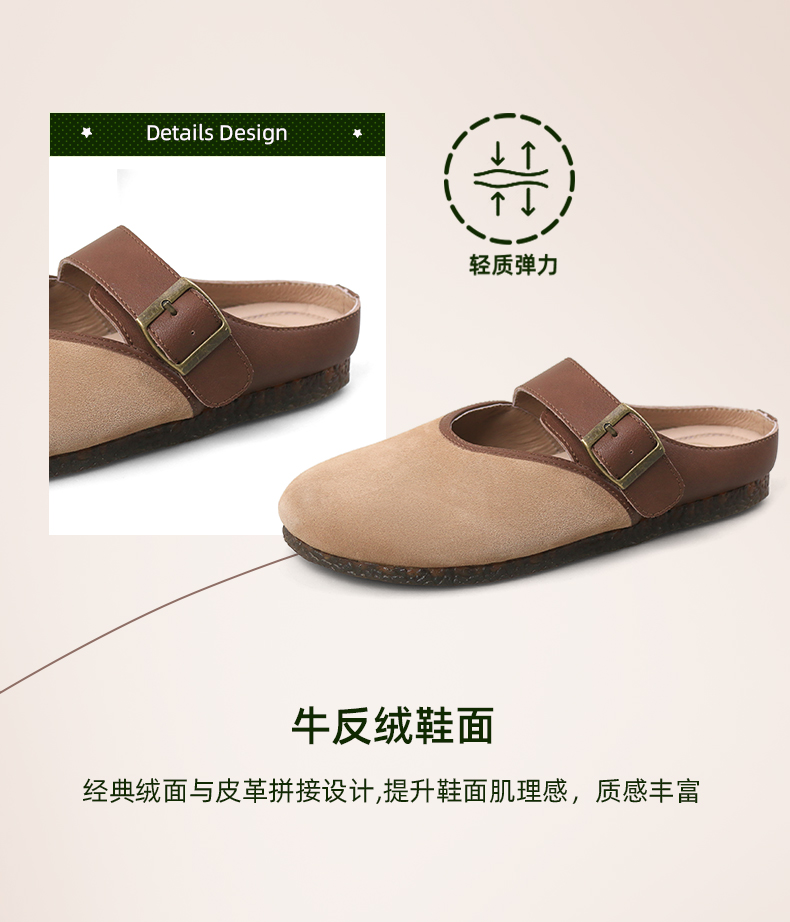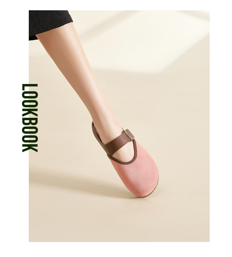 Safiya/索菲娅2024春 丑萌森系复古拼色包头外穿懒人勃肯鞋 SF42110093