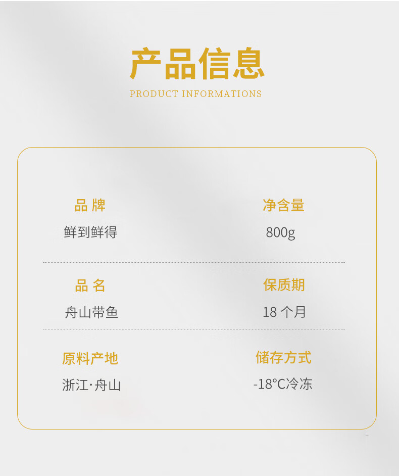 鲜到鲜得 冷冻舟山带鱼段800g 中段 深海鱼 海鲜水产 生鲜 鱼类