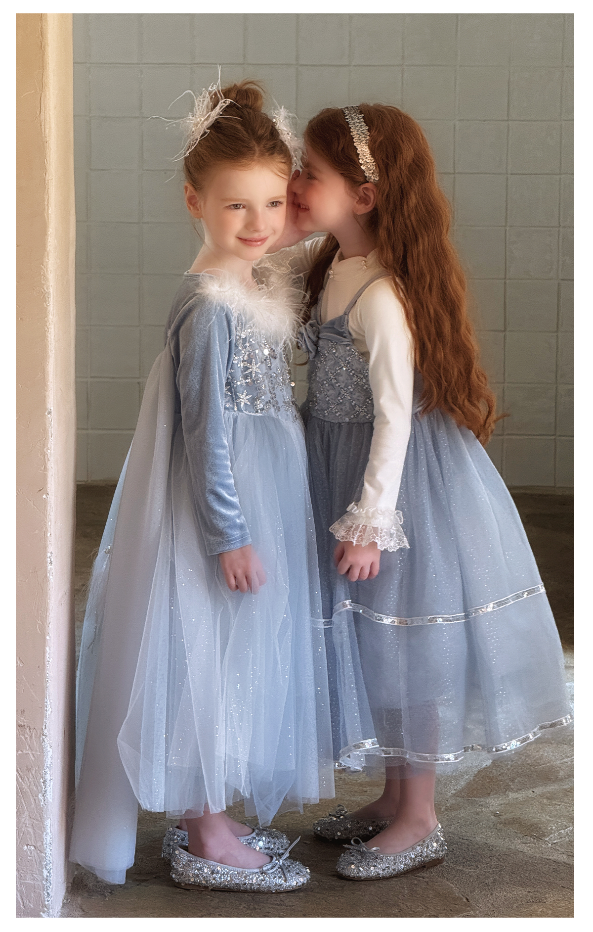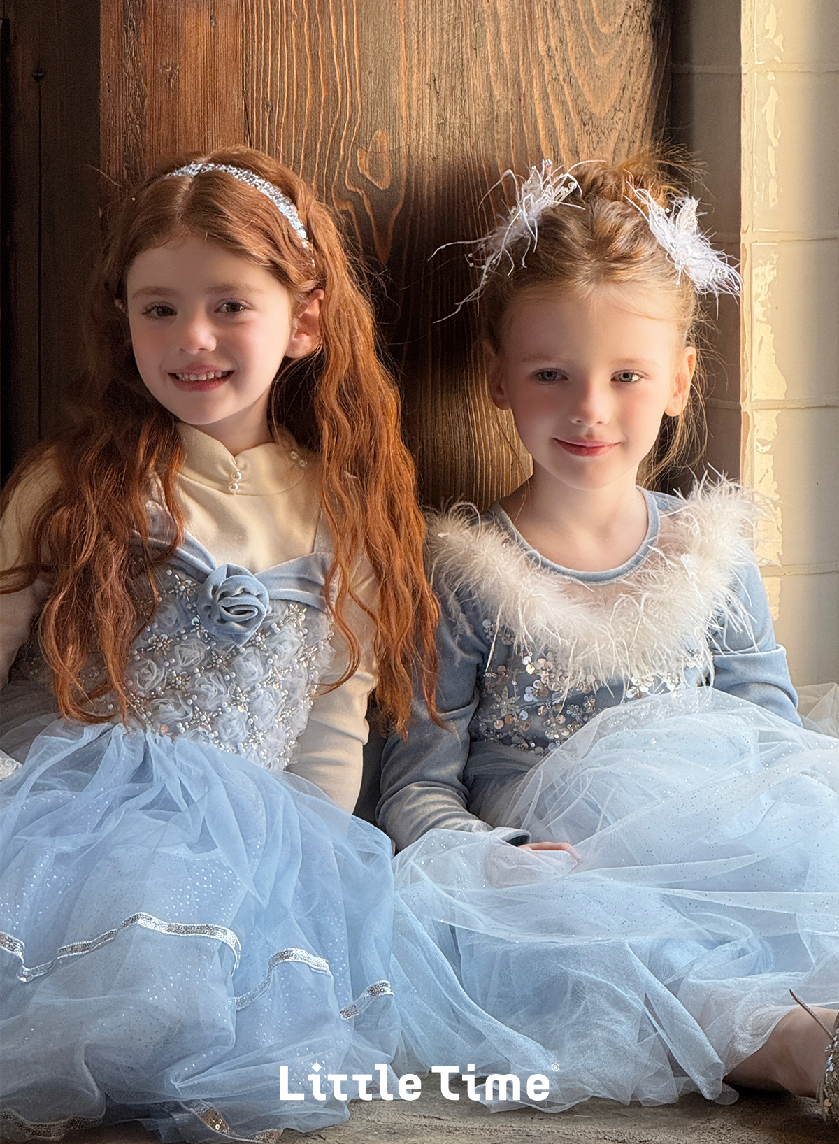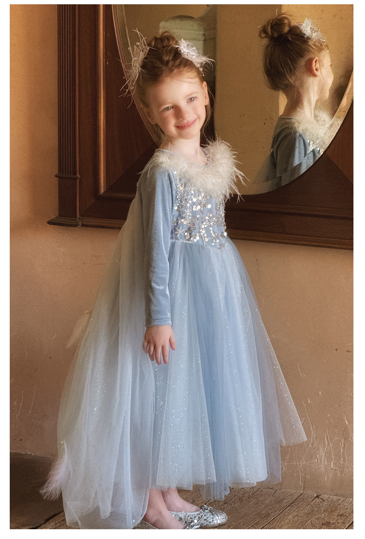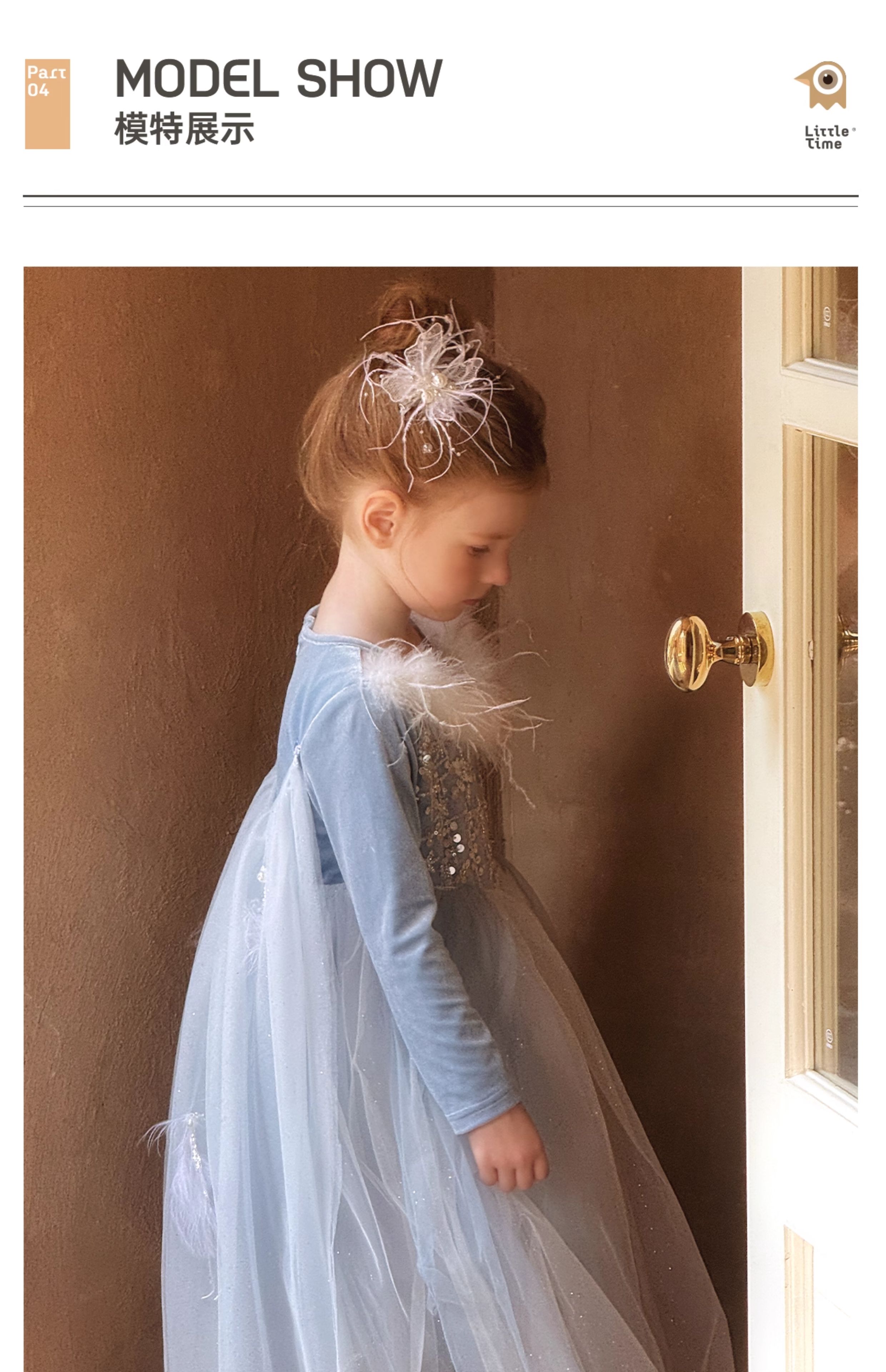 Littletime女童连衣裙2025秋冬新款儿童冰雪羽毛爱莎披肩公主裙