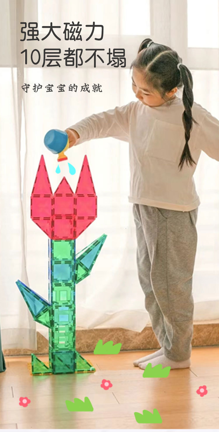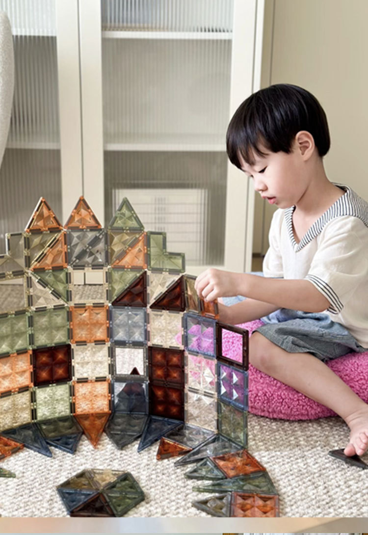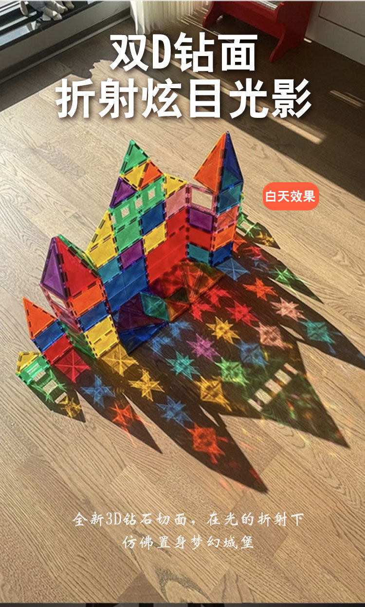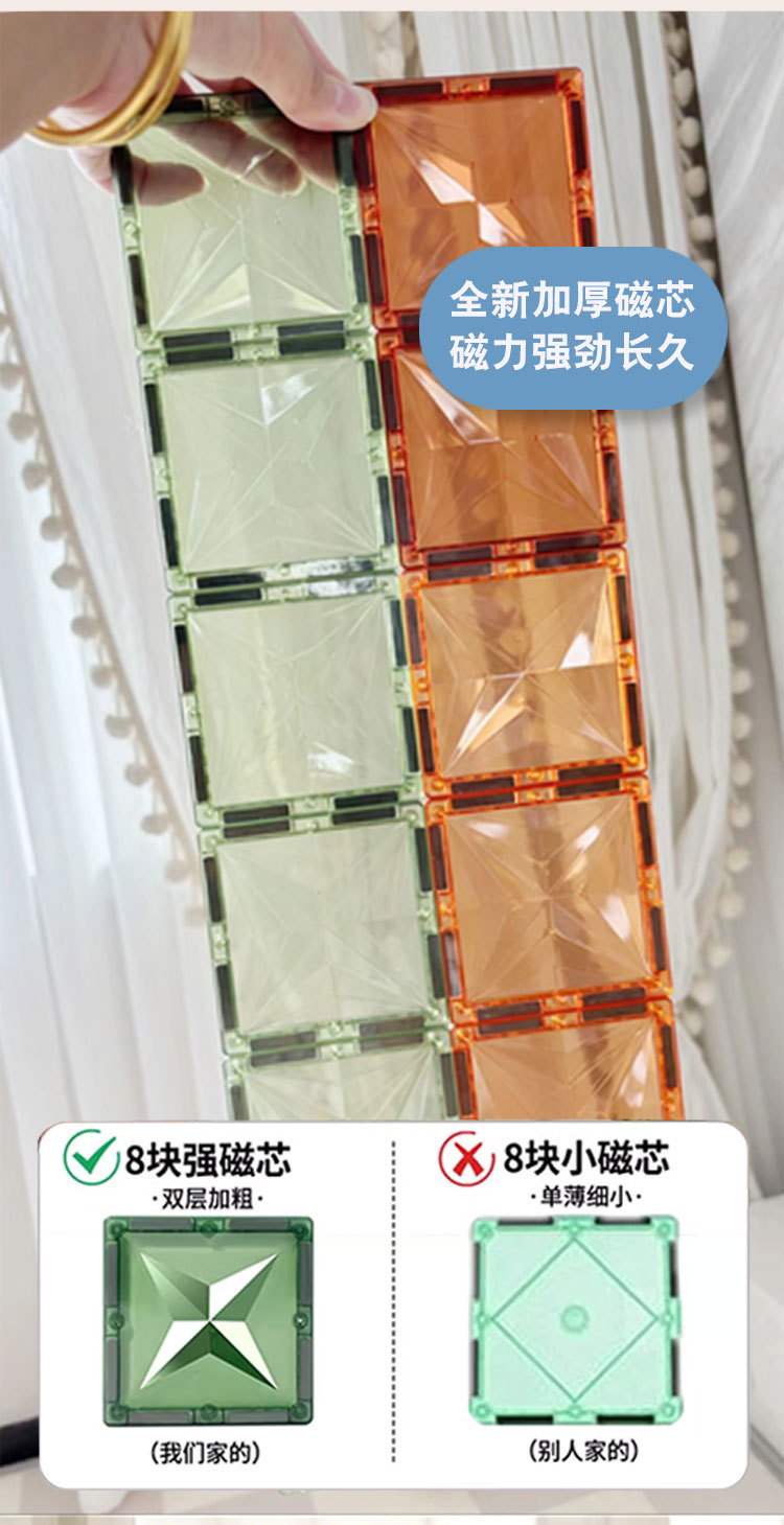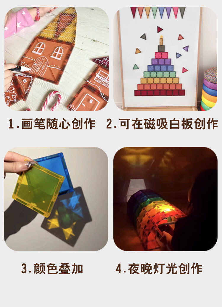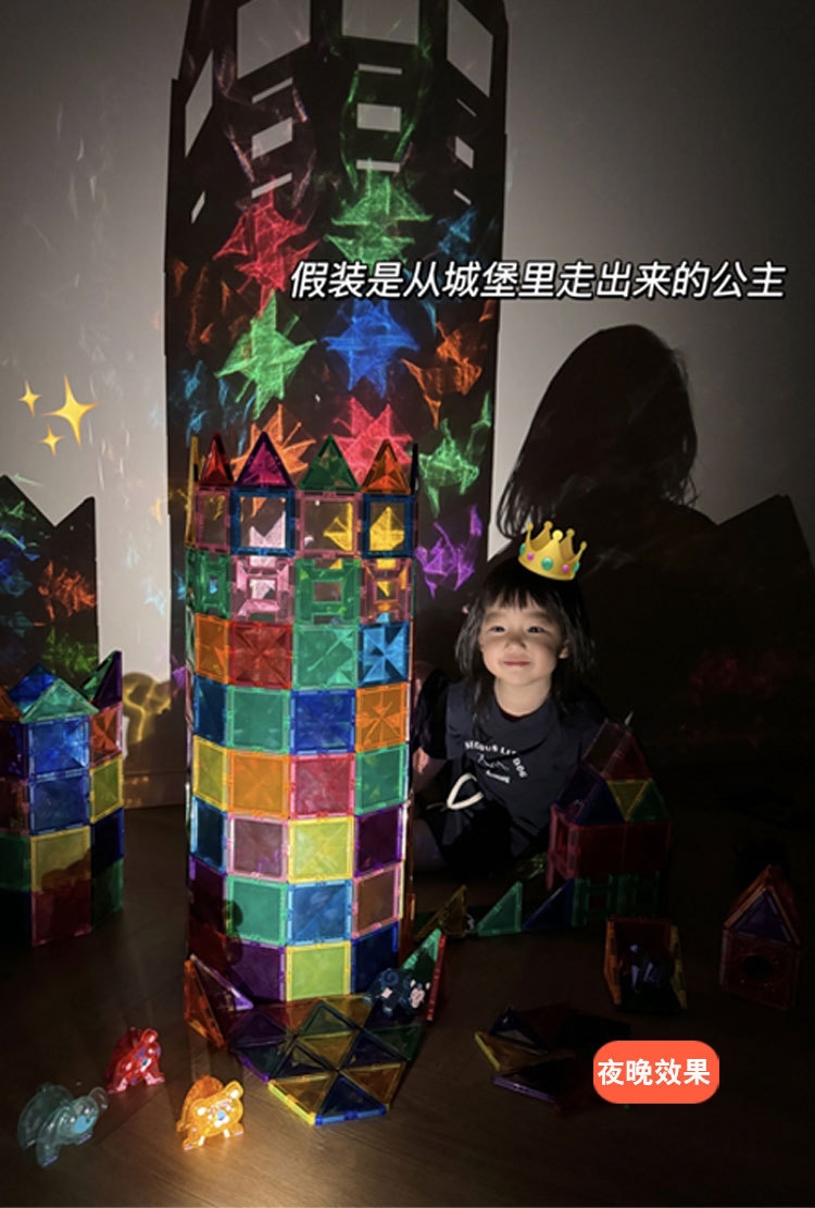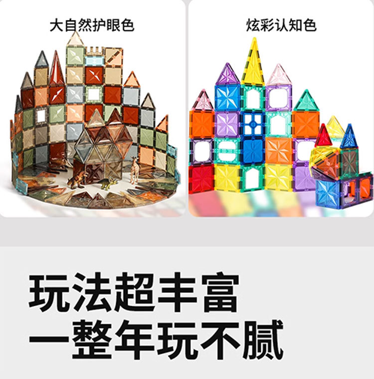 【可以发光的磁力片】儿童大号磁力片玩具100片大自然色拼接磁力磁吸积木磁力玩具益智