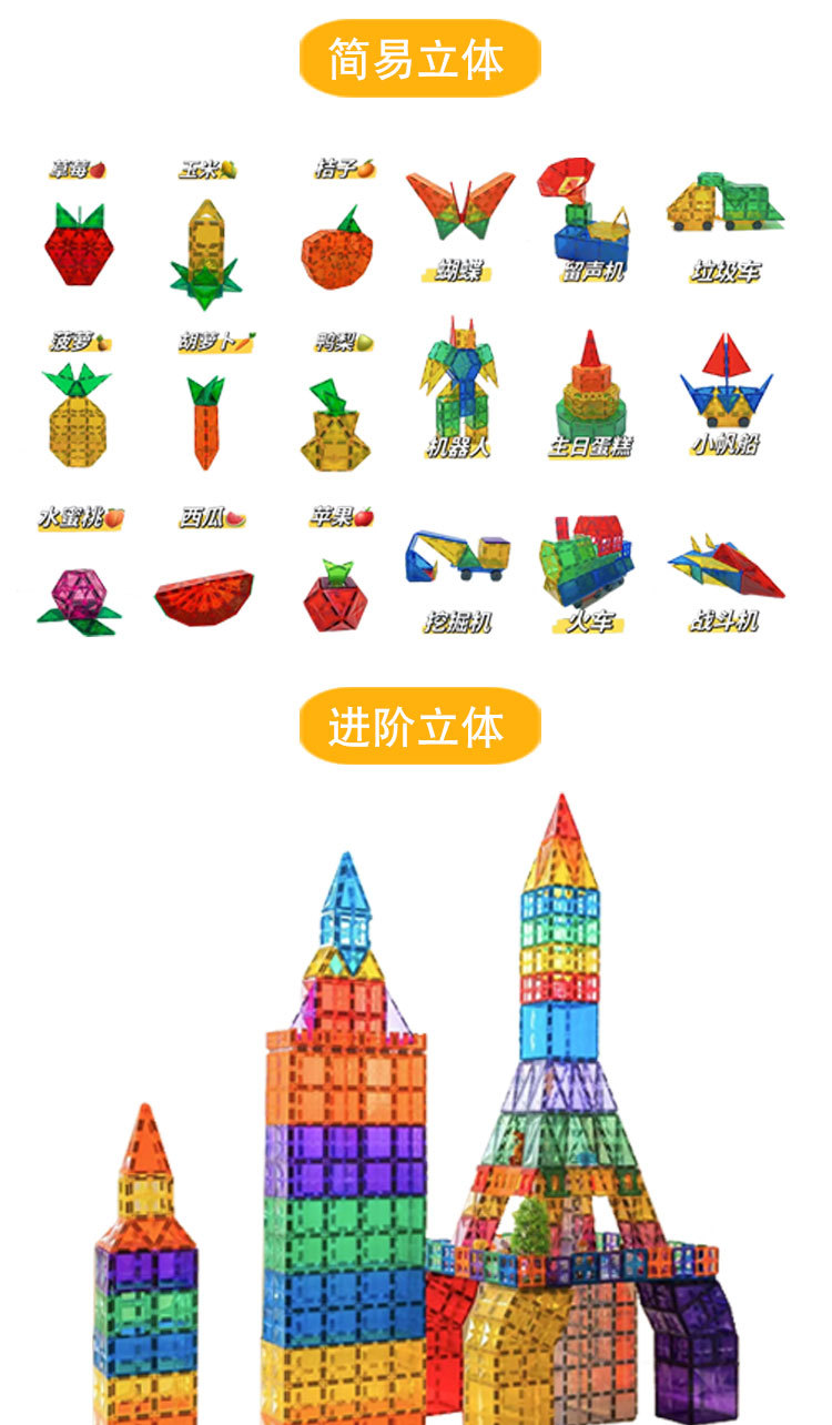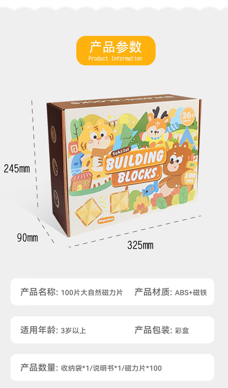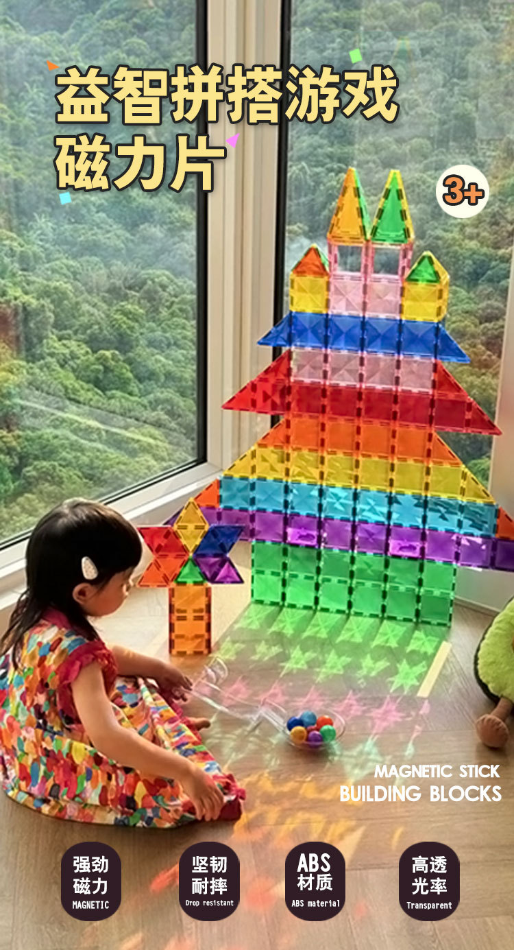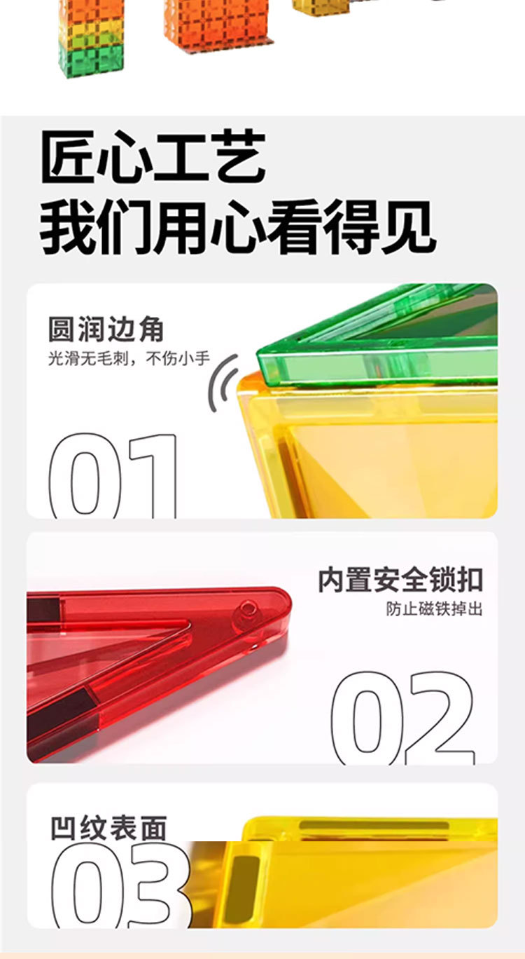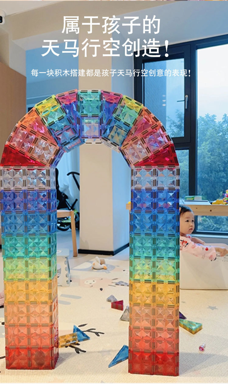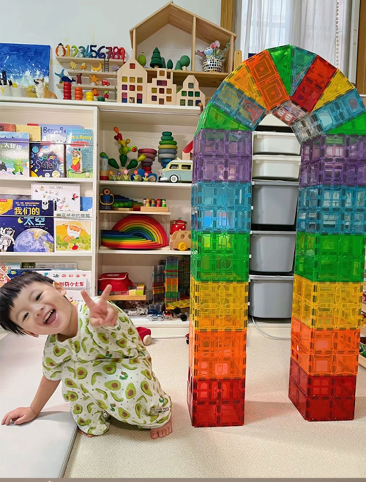 【可以发光的磁力片】儿童大号磁力片玩具100片大自然色拼接磁力磁吸积木磁力玩具益智