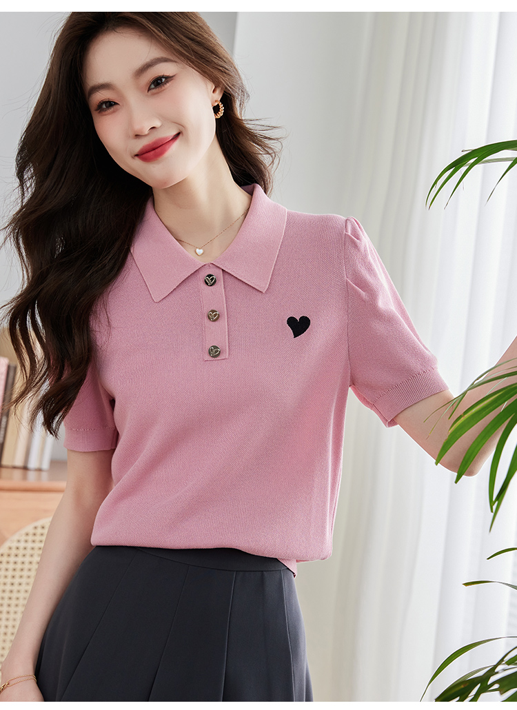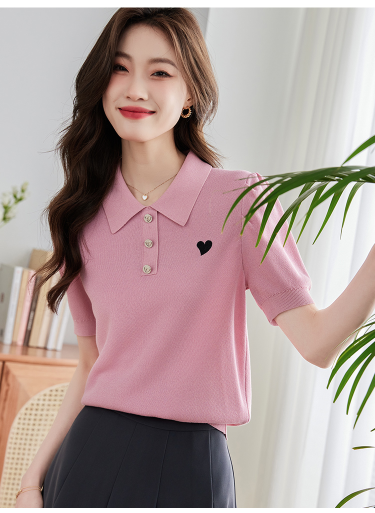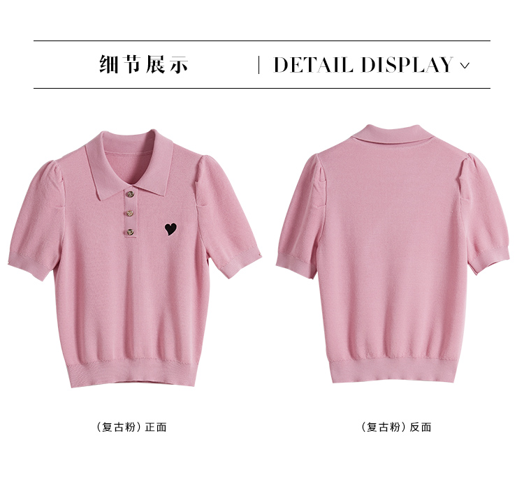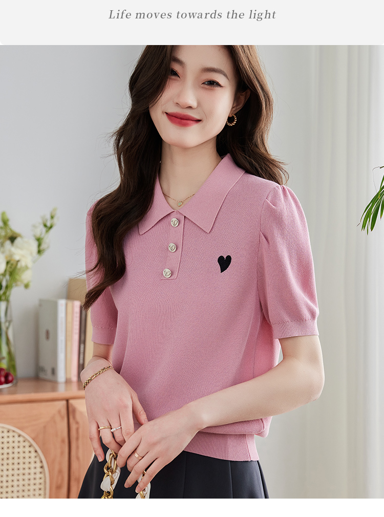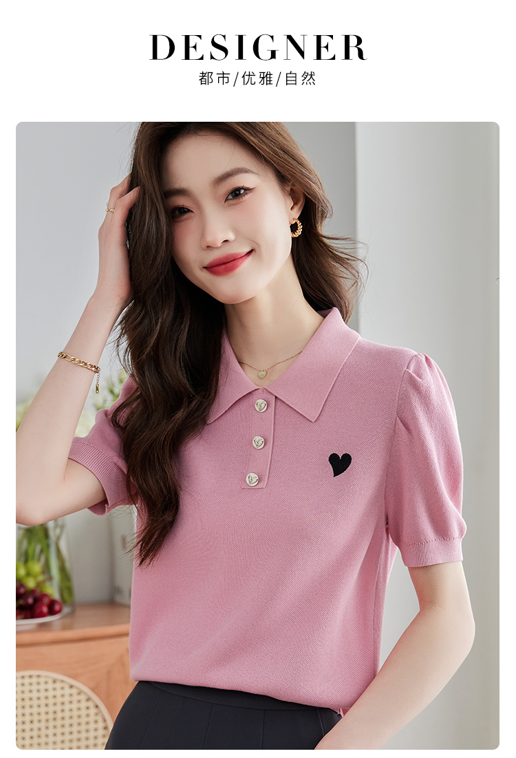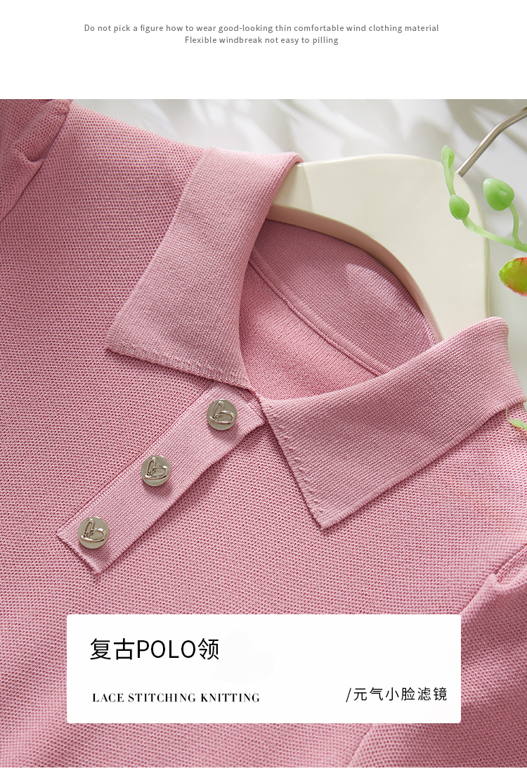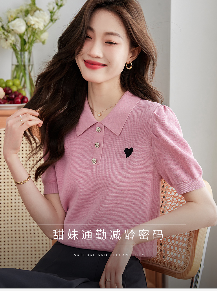 【专属特价】熙世界复古POLO领针织衫女短袖薄款冰丝通勤休闲上衣2025夏新款