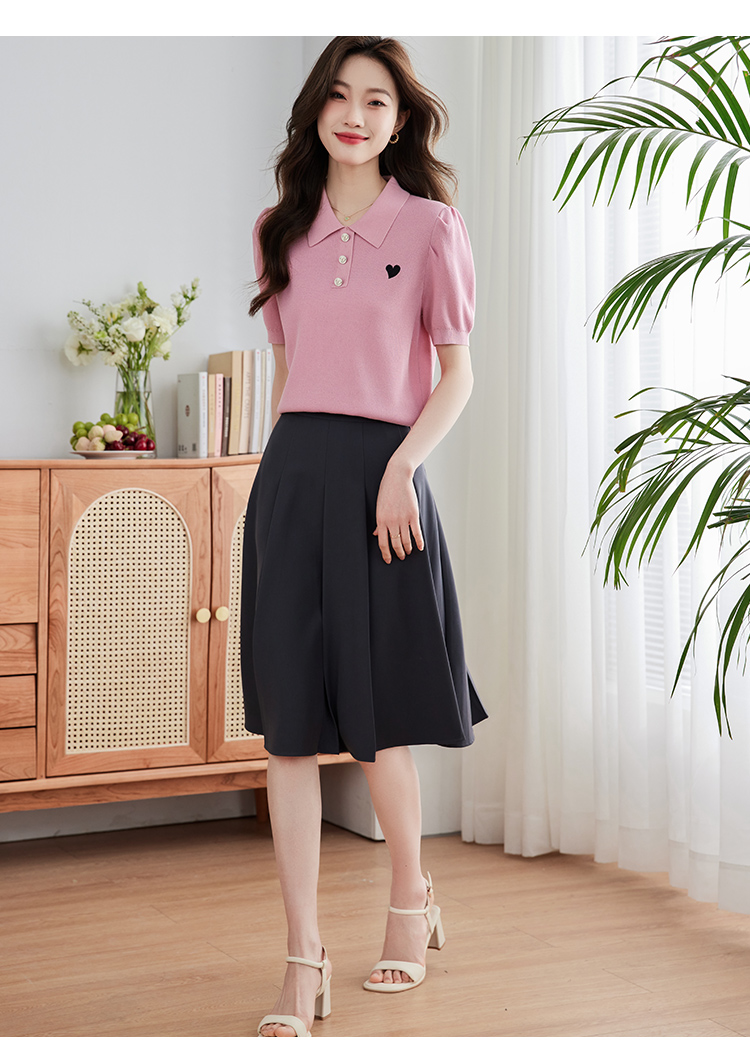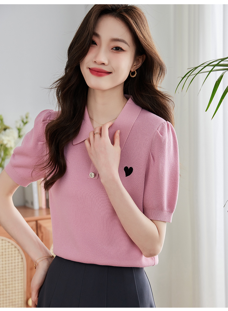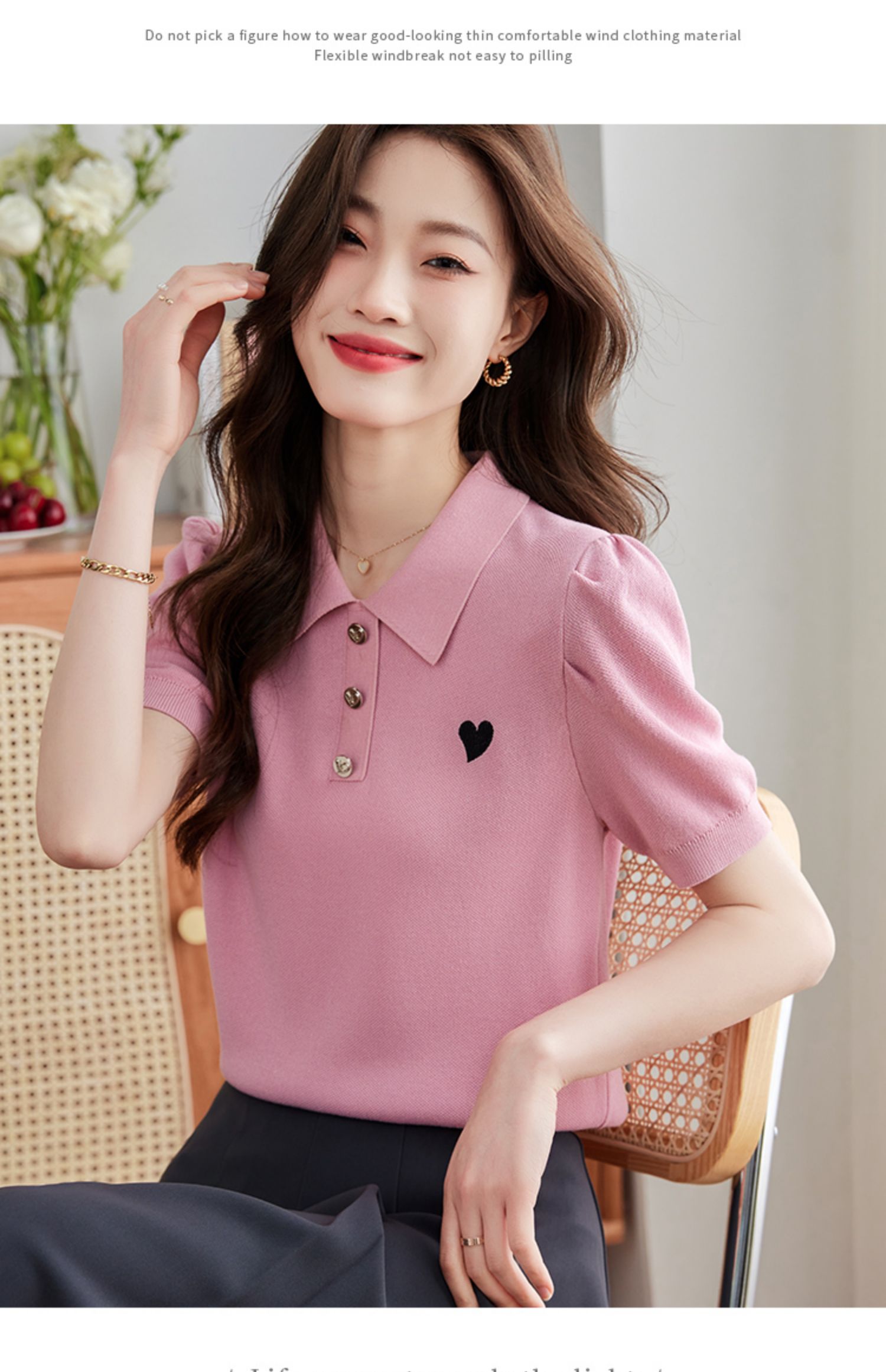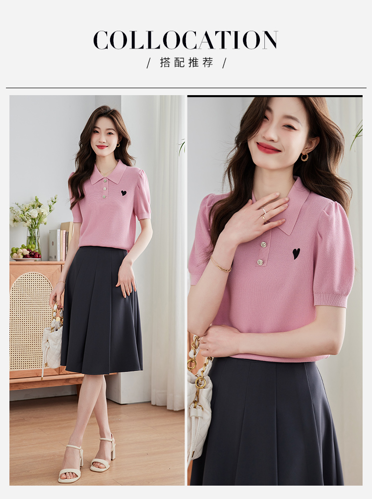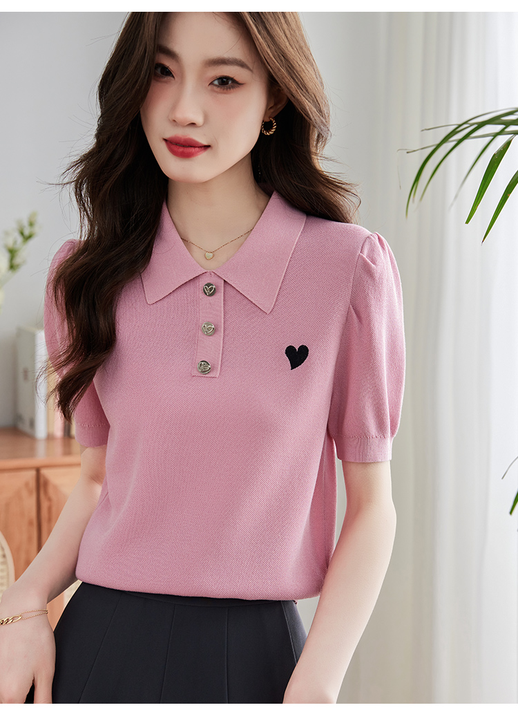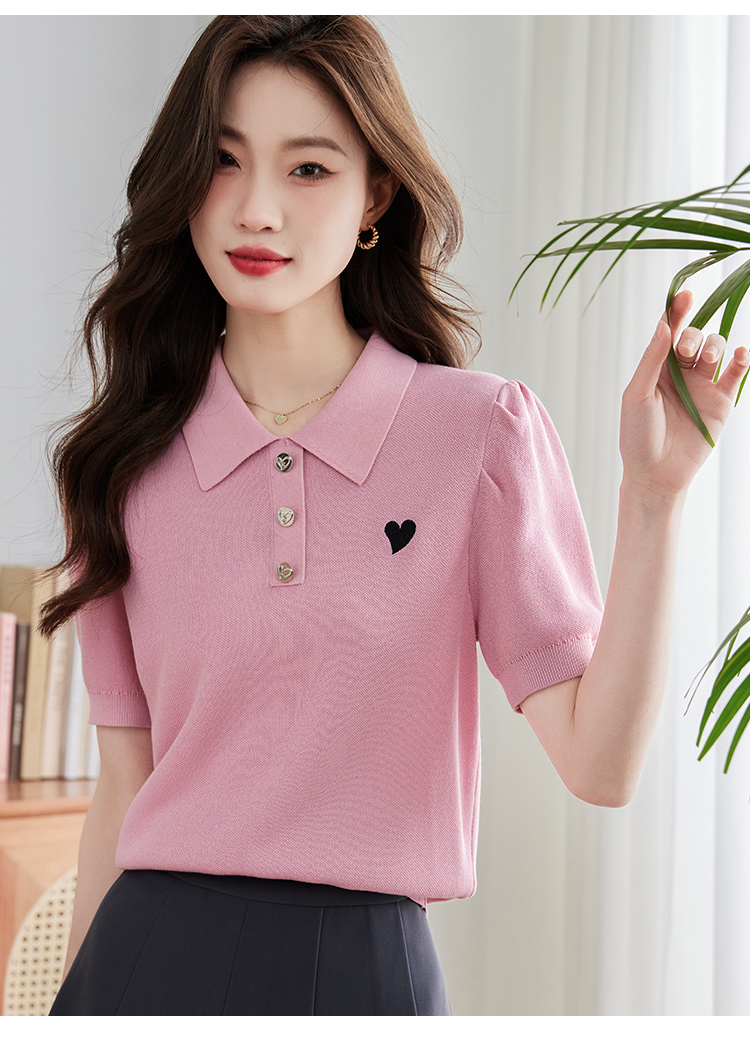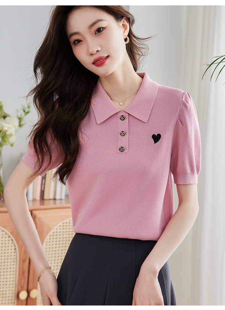 【专属特价】熙世界复古POLO领针织衫女短袖薄款冰丝通勤休闲上衣2025夏新款