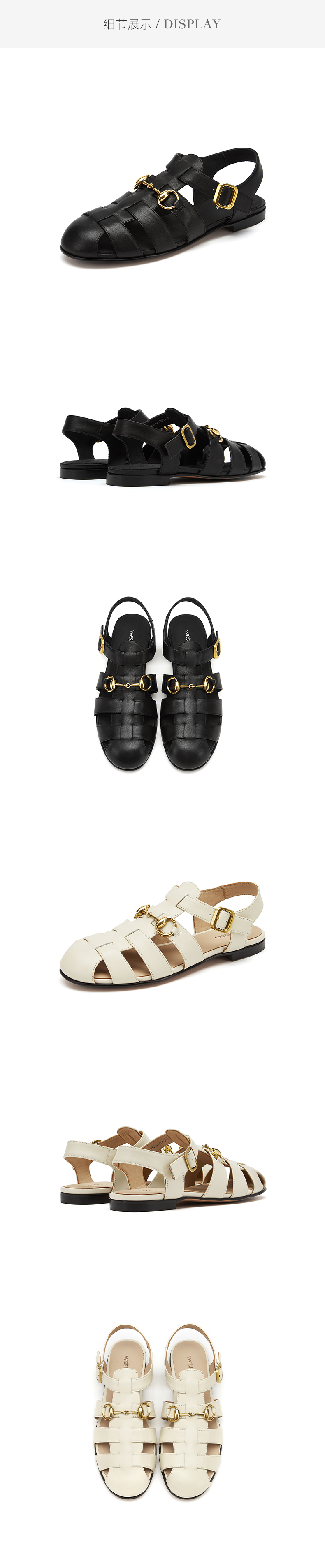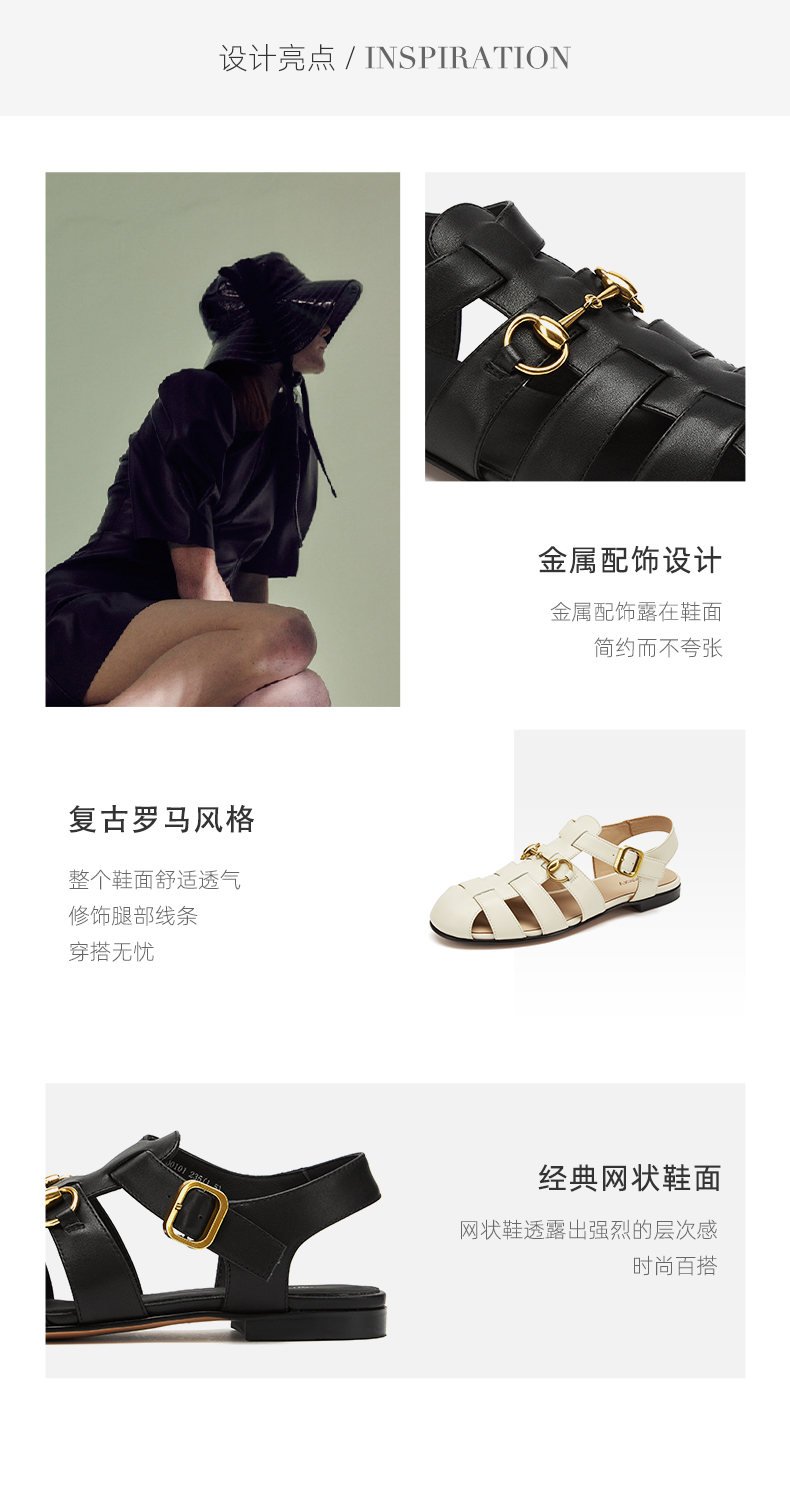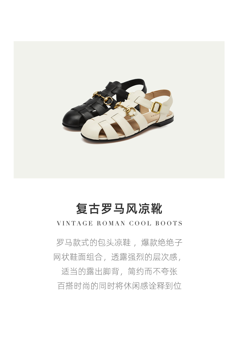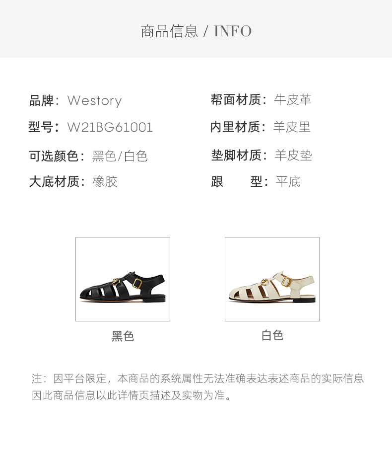 westory女鞋2021夏季新款小牛皮软底百搭凉鞋平底单鞋W21BG61001