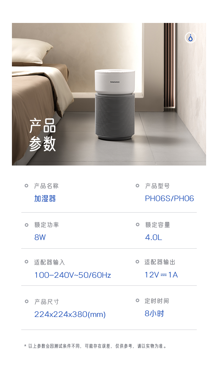 大宇 无雾加湿器高配版PH06S 28dB柔声加湿 双重降噪技术 秋冬净润好物 72小时发货