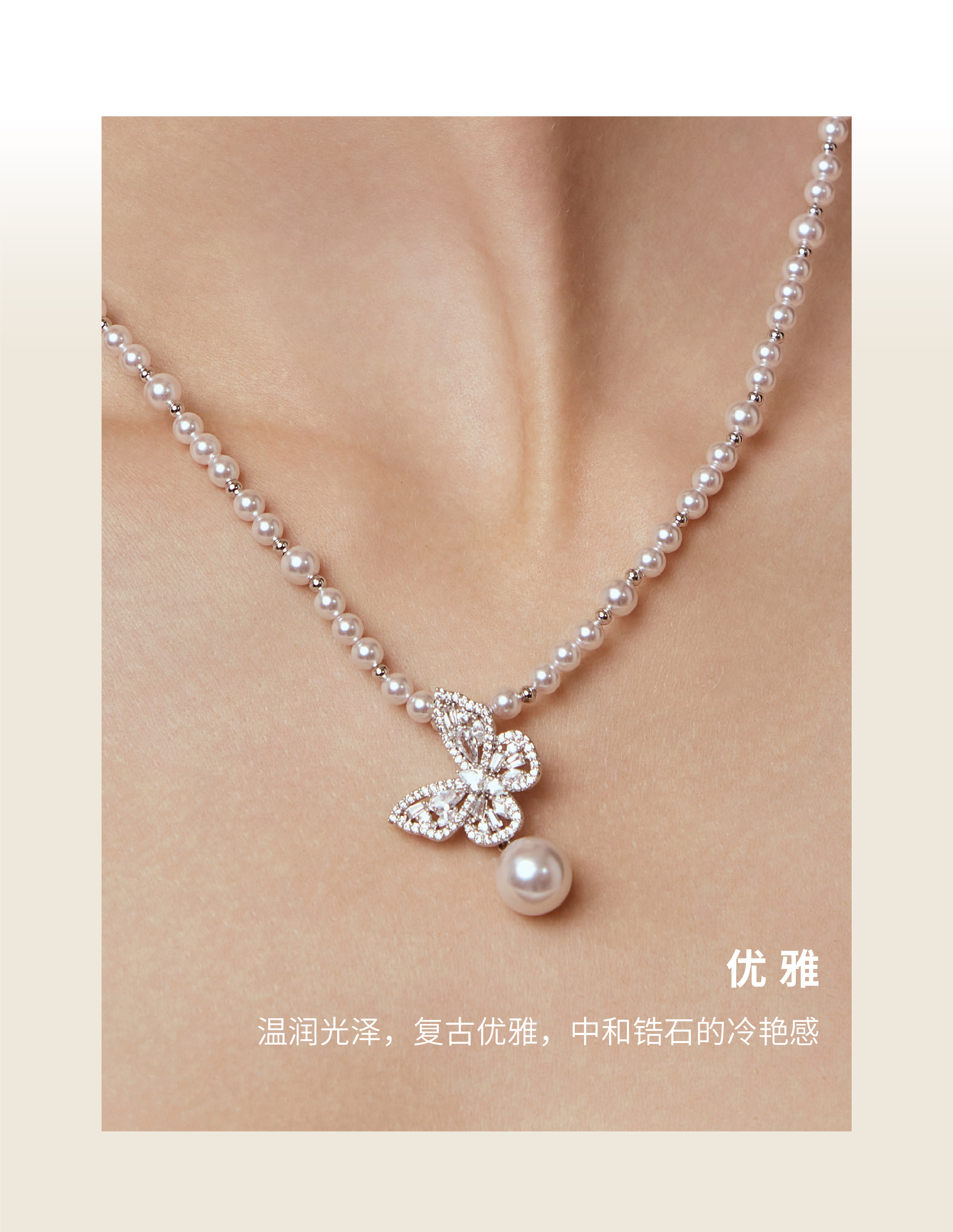 【月光蝴蝶】仿珍珠蝴蝶项链