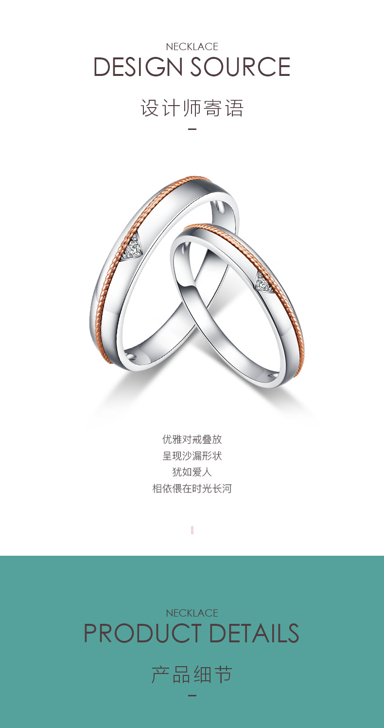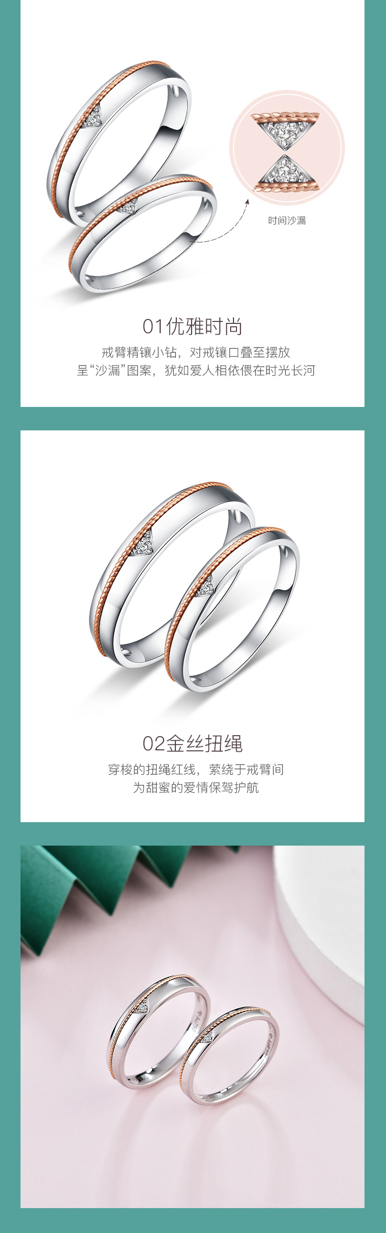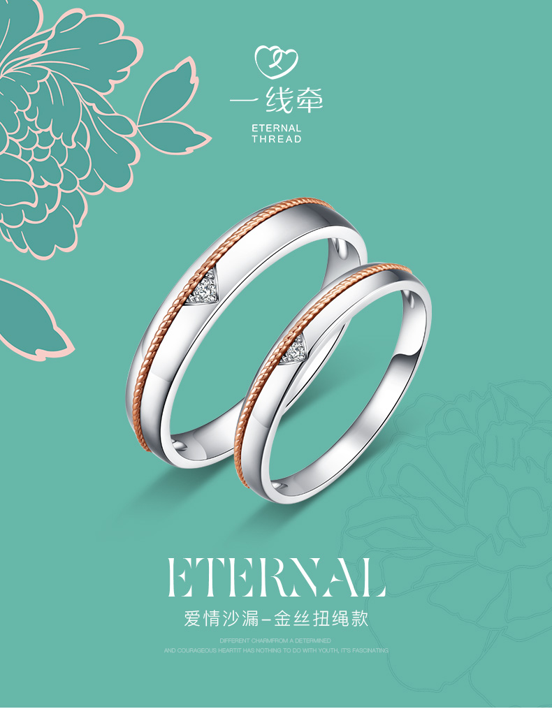 「一线牵-爱情沙漏」金丝扭绳款18K金钻石双色结婚对戒情侣戒指