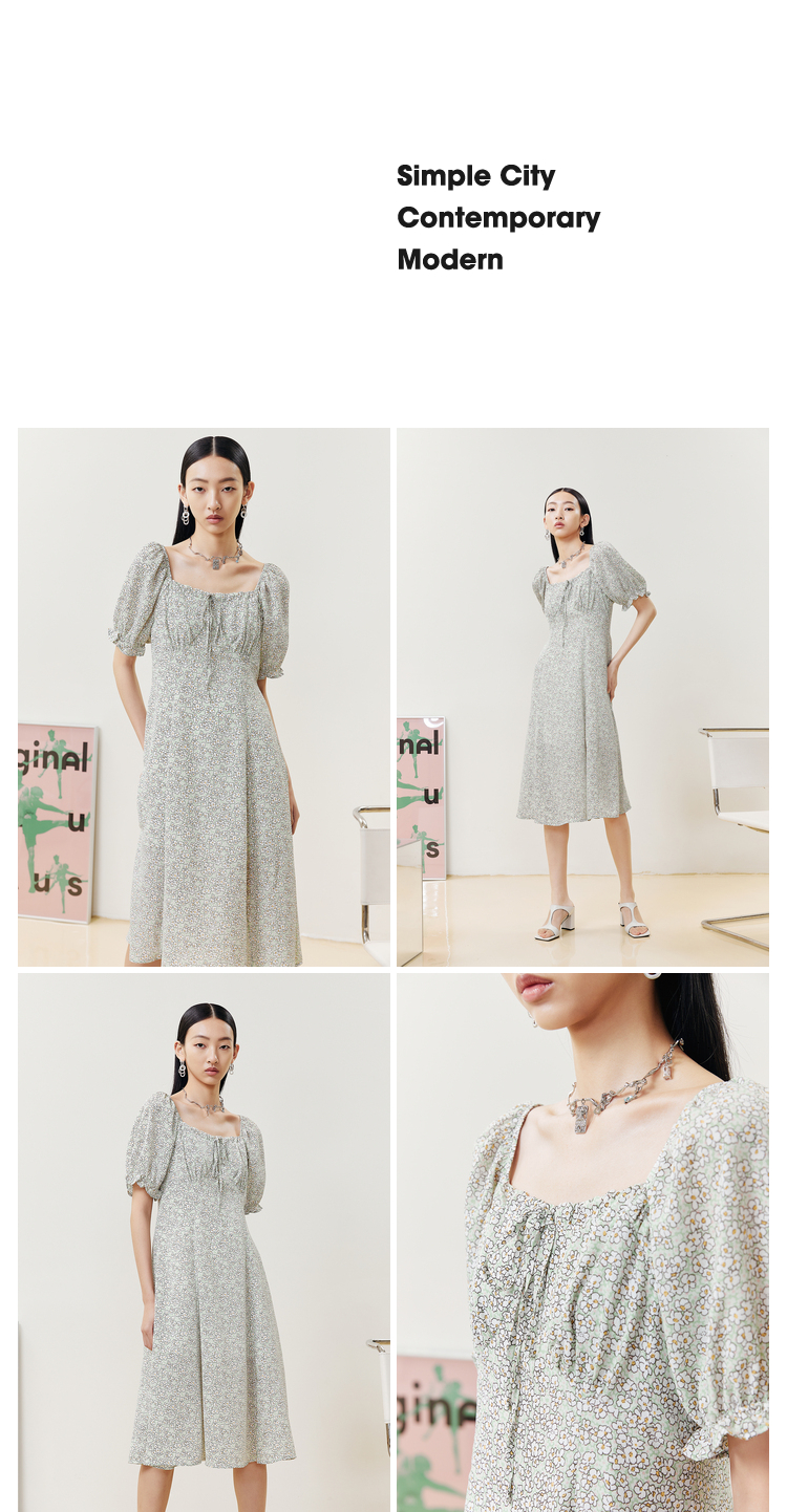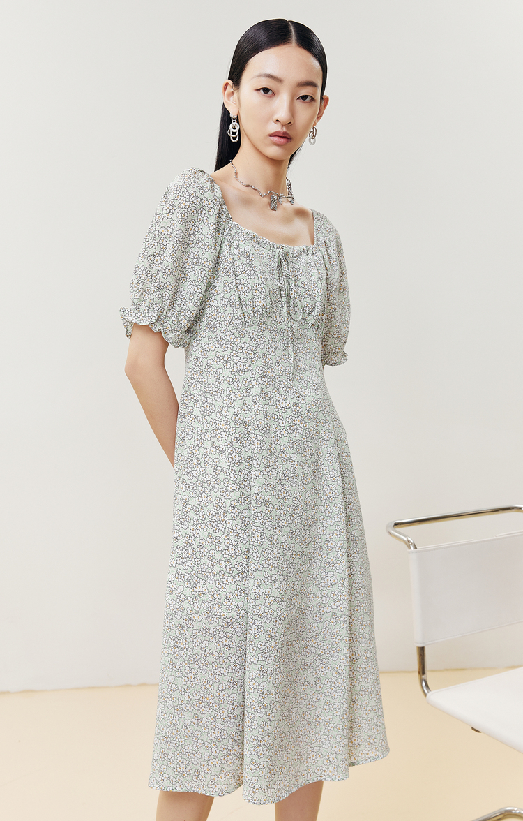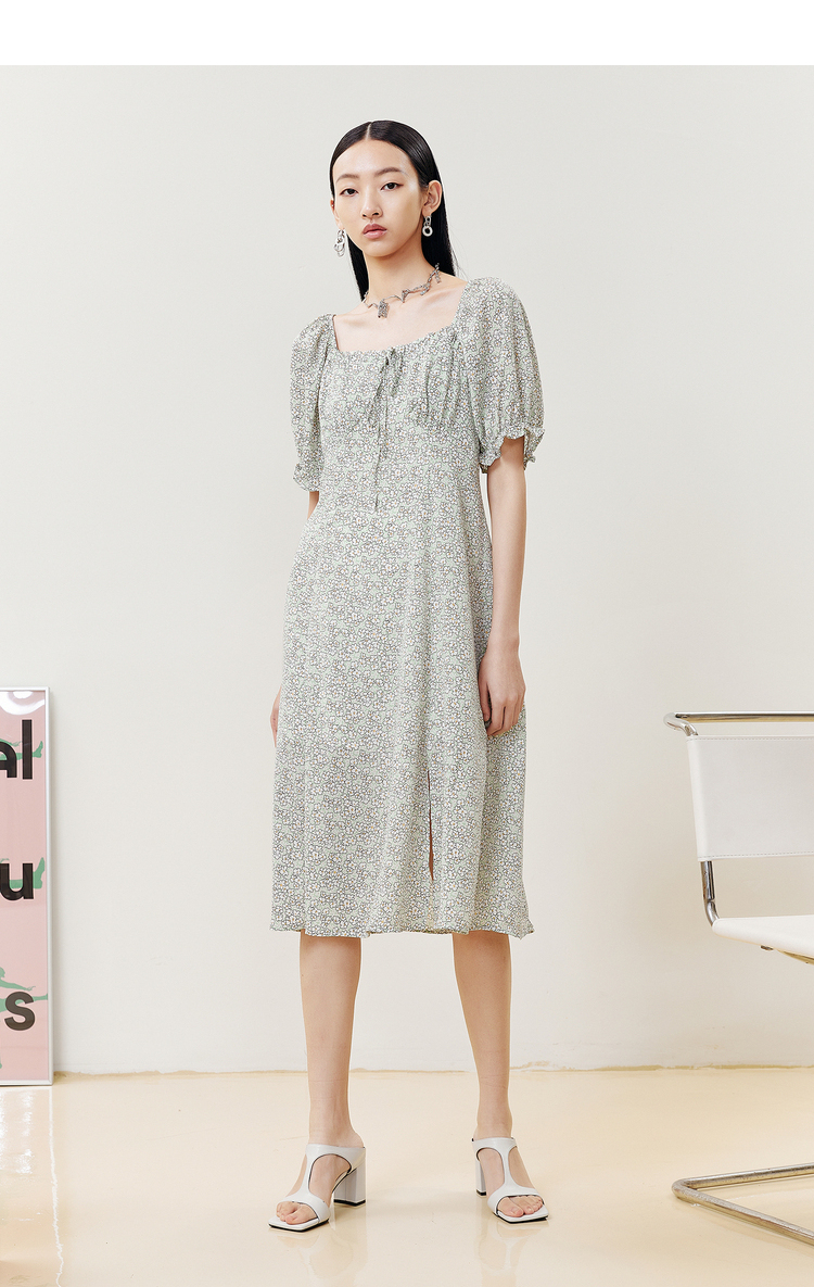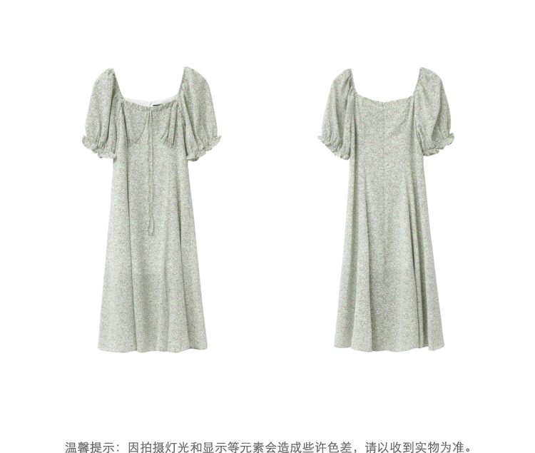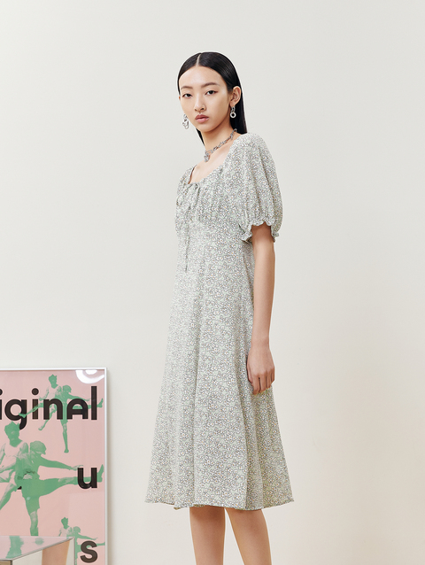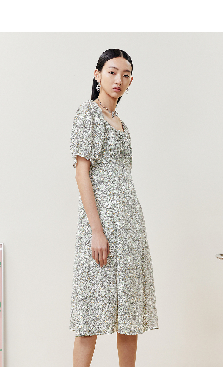 NEELLY纳俪商场同款夏季碎花连衣裙女中长款泡泡袖A字茶歇裙百搭N22043Y01103