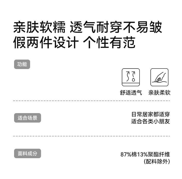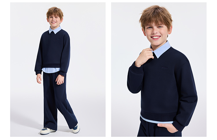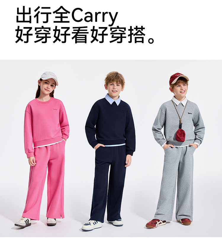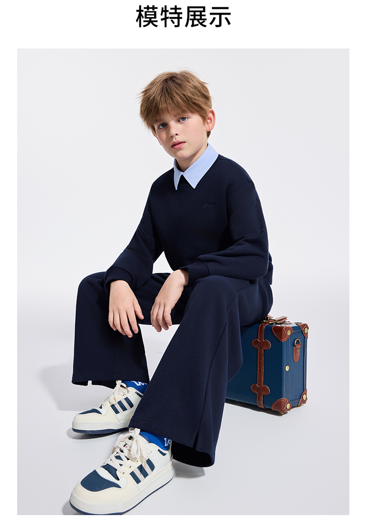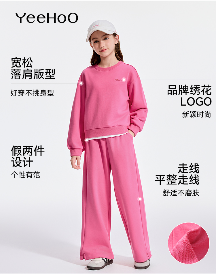 【英氏】【两件套】【110-175】男女童休闲套装假两件卫衣阔腿裤