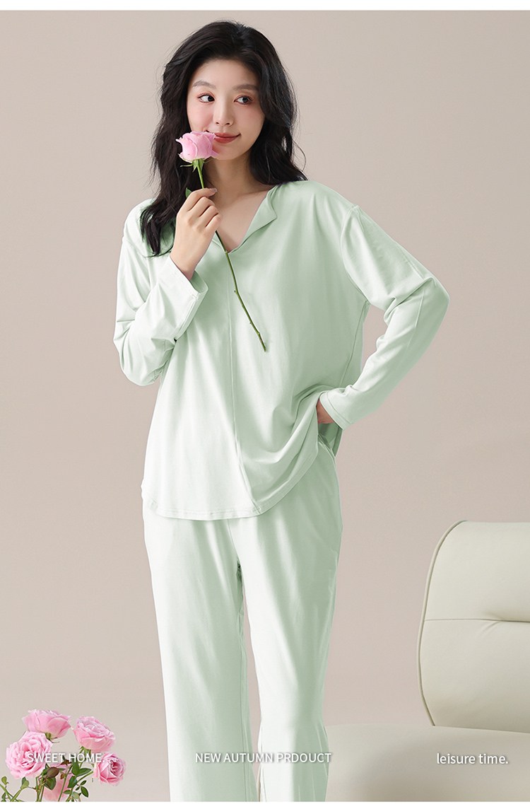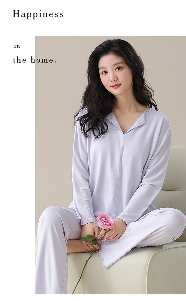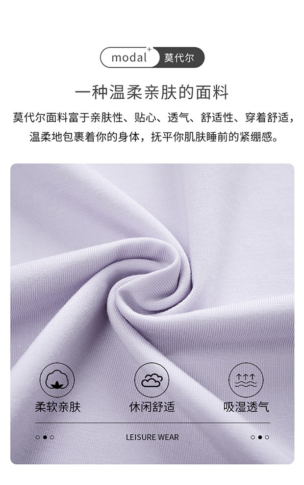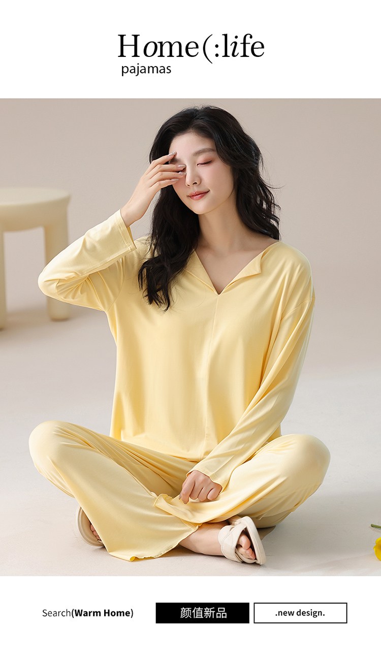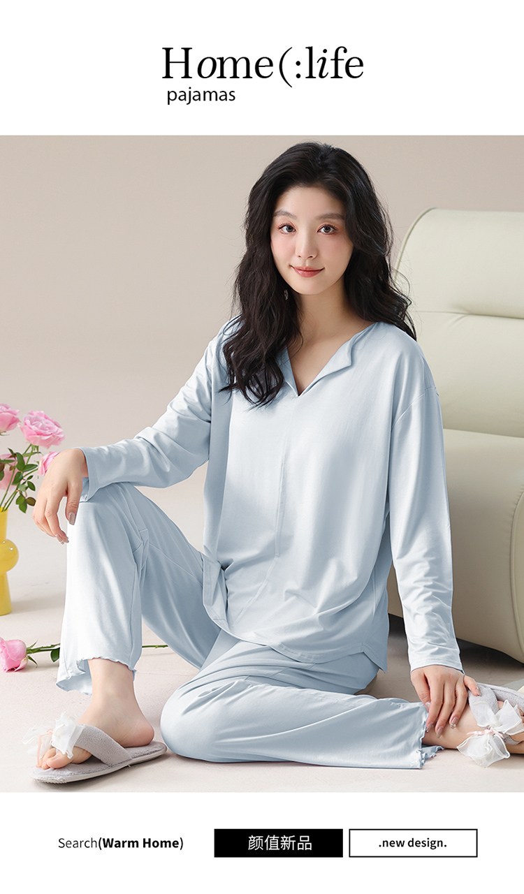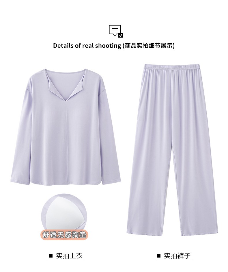 【轻梵 长袖新款莫代尔带胸垫家居服】带胸垫防凸点长袖家居服套装 宽松慵懒亲肤 无感bra