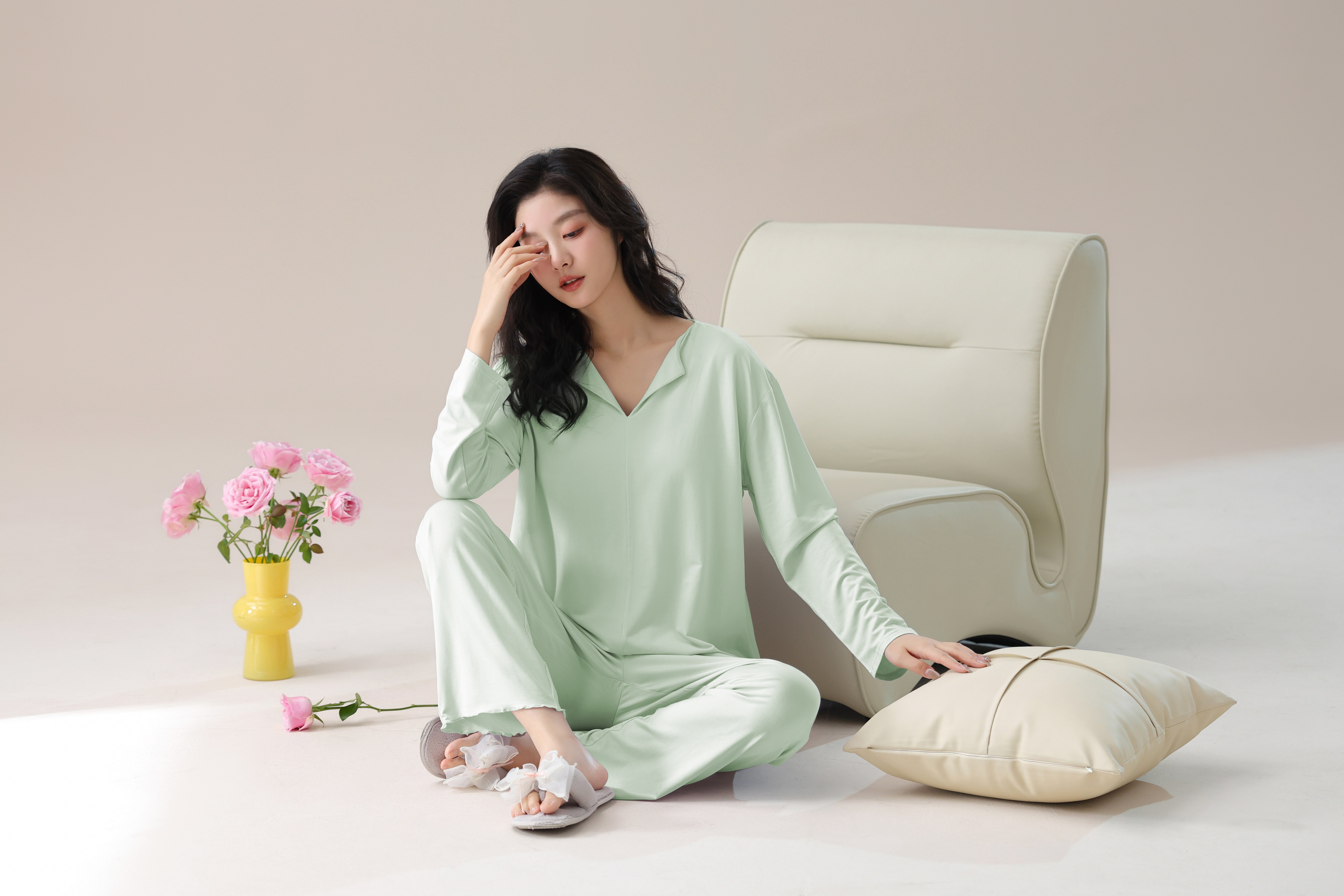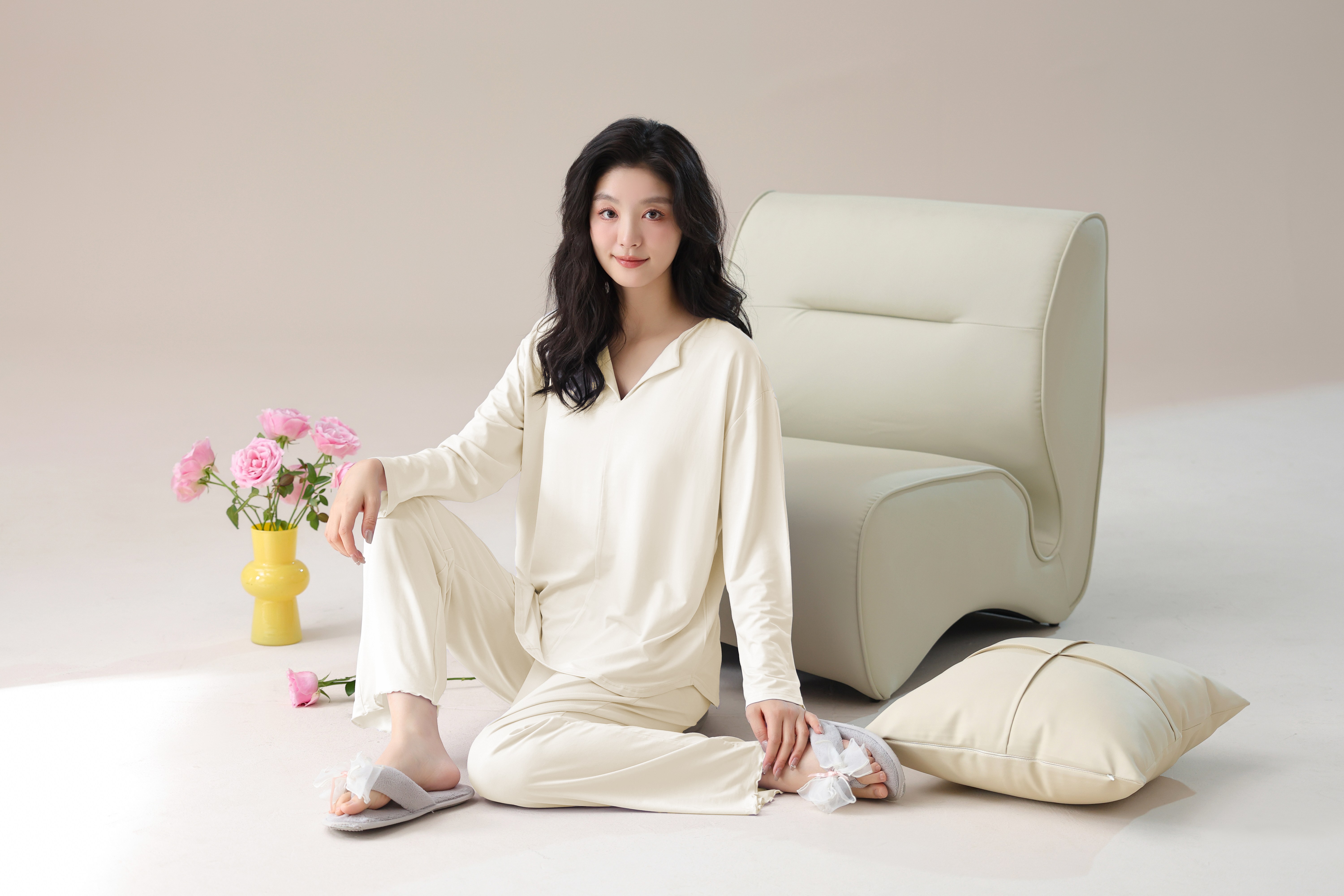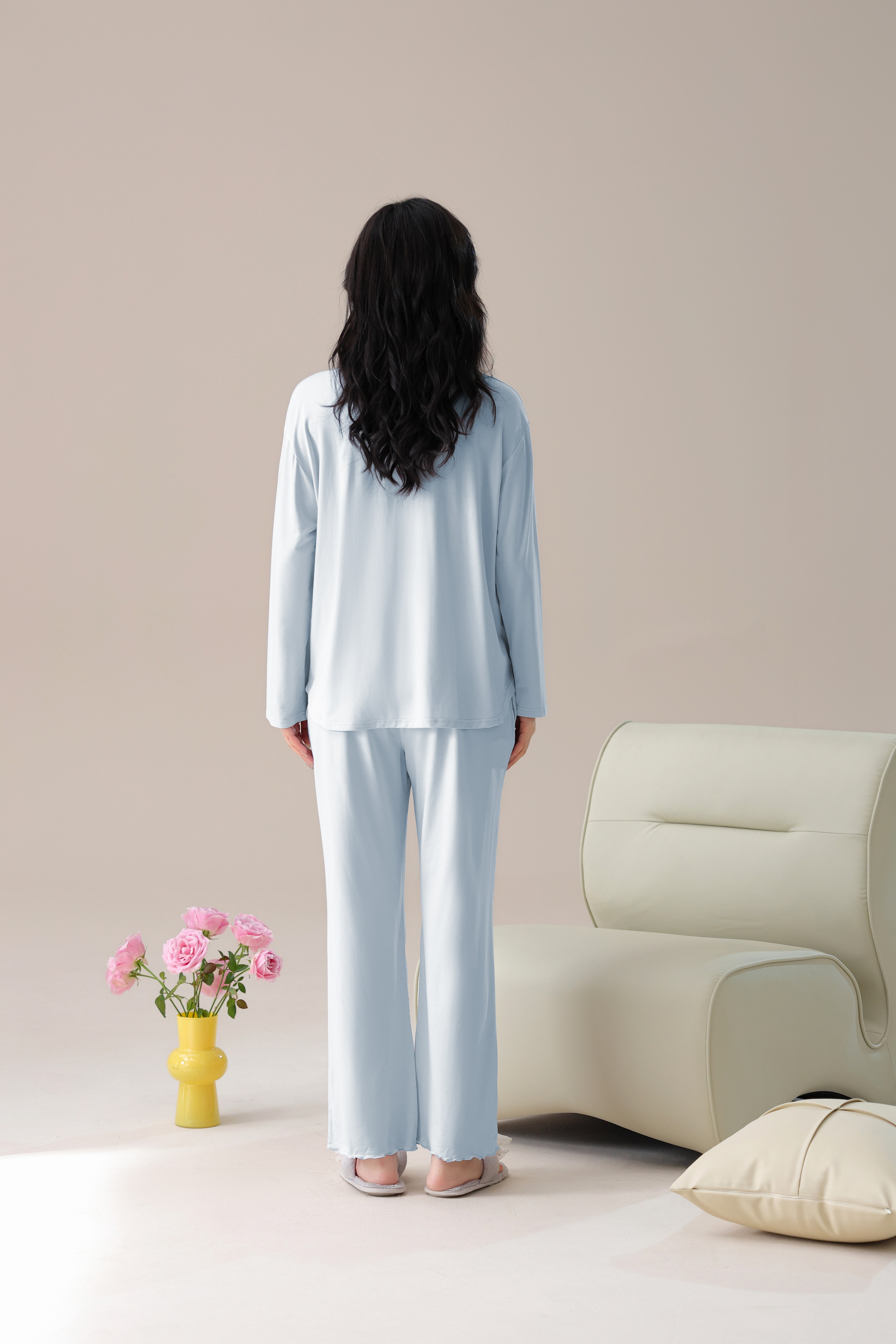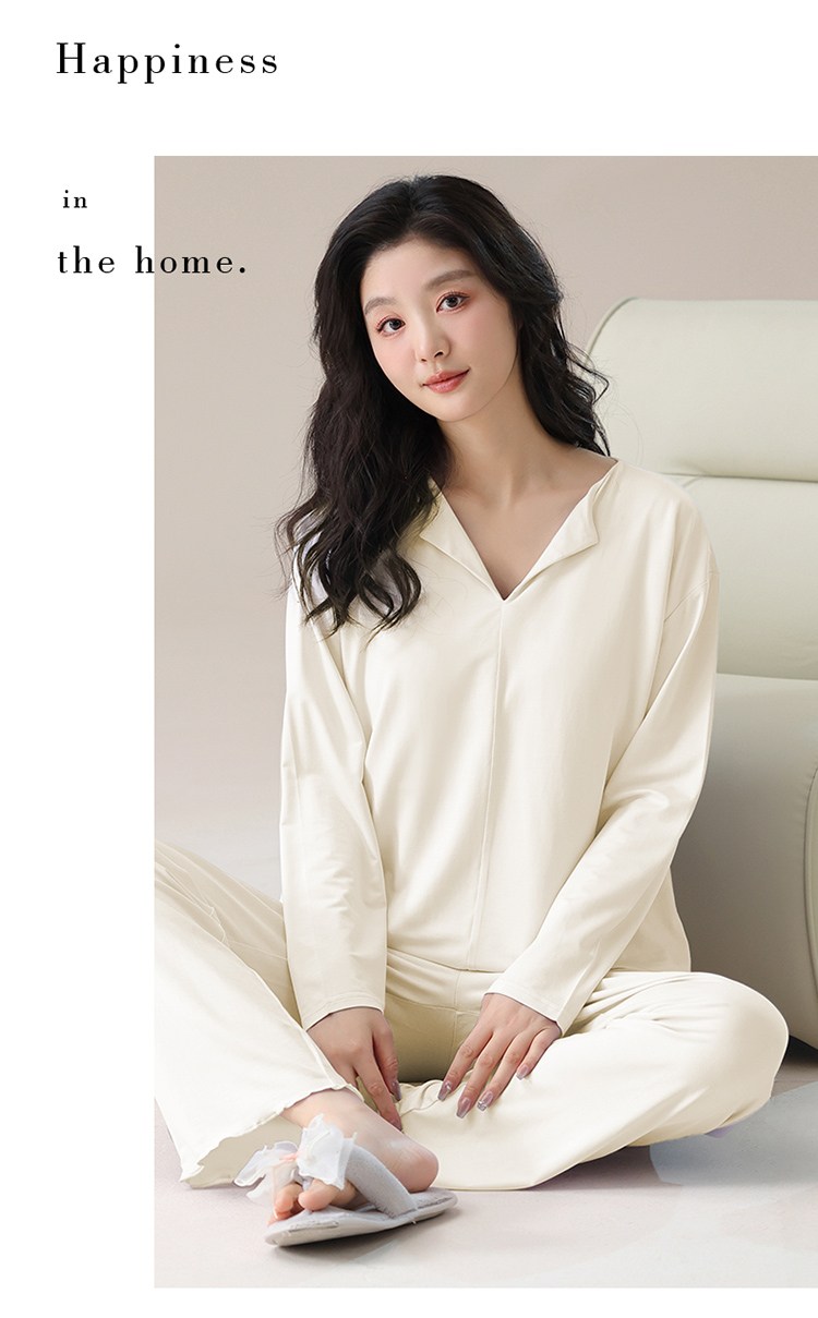 【轻梵 长袖新款莫代尔带胸垫家居服】带胸垫防凸点长袖家居服套装 宽松慵懒亲肤 无感bra