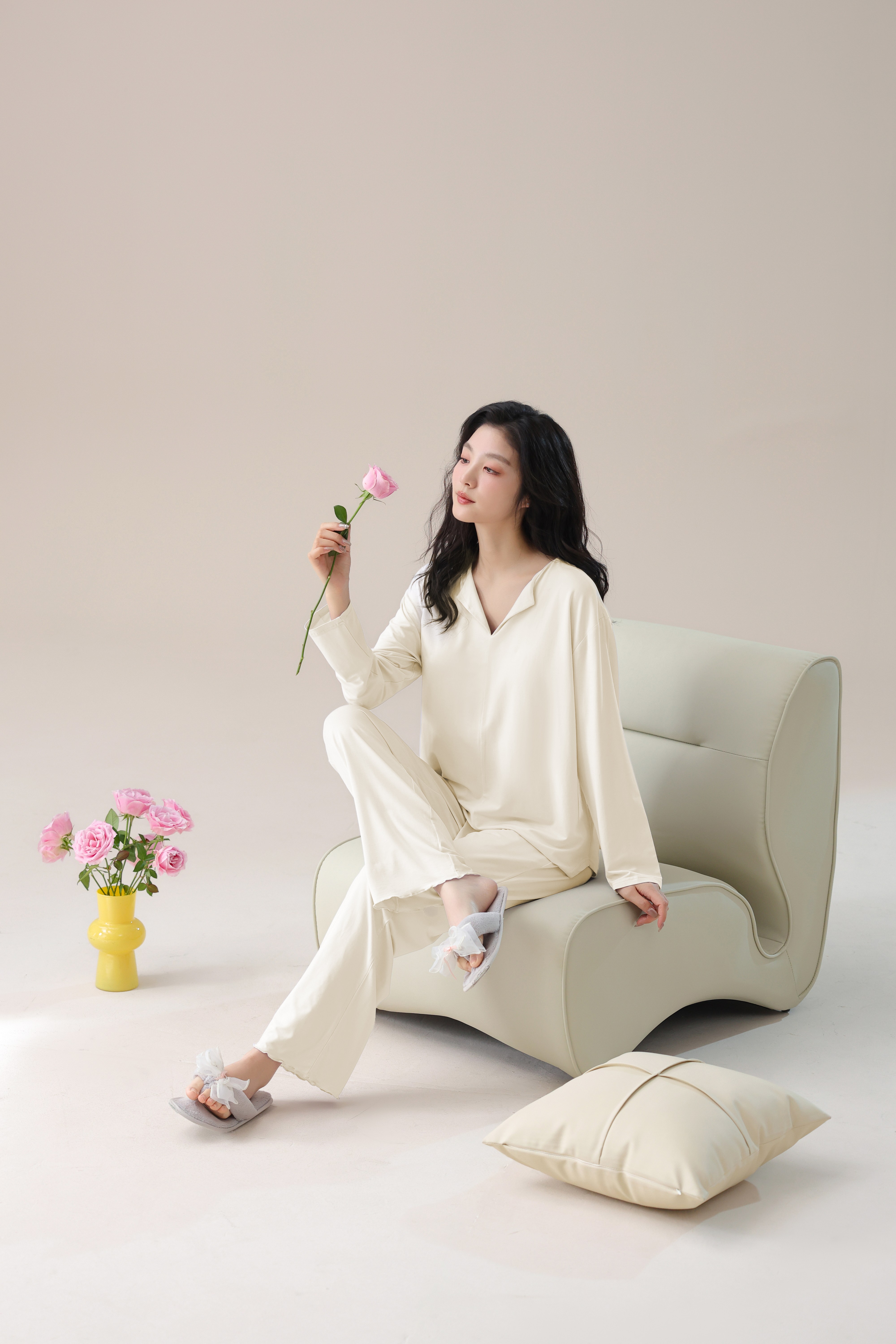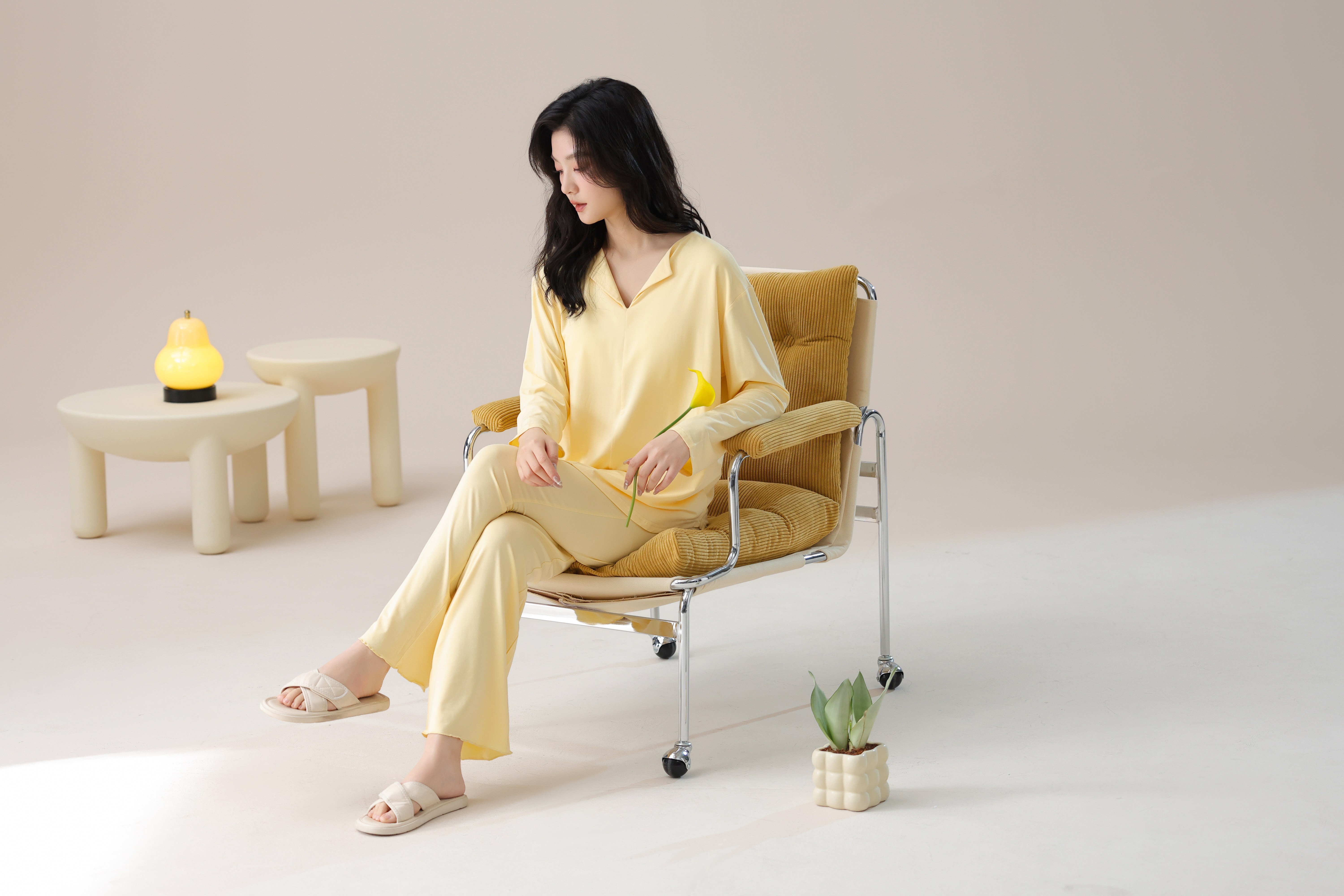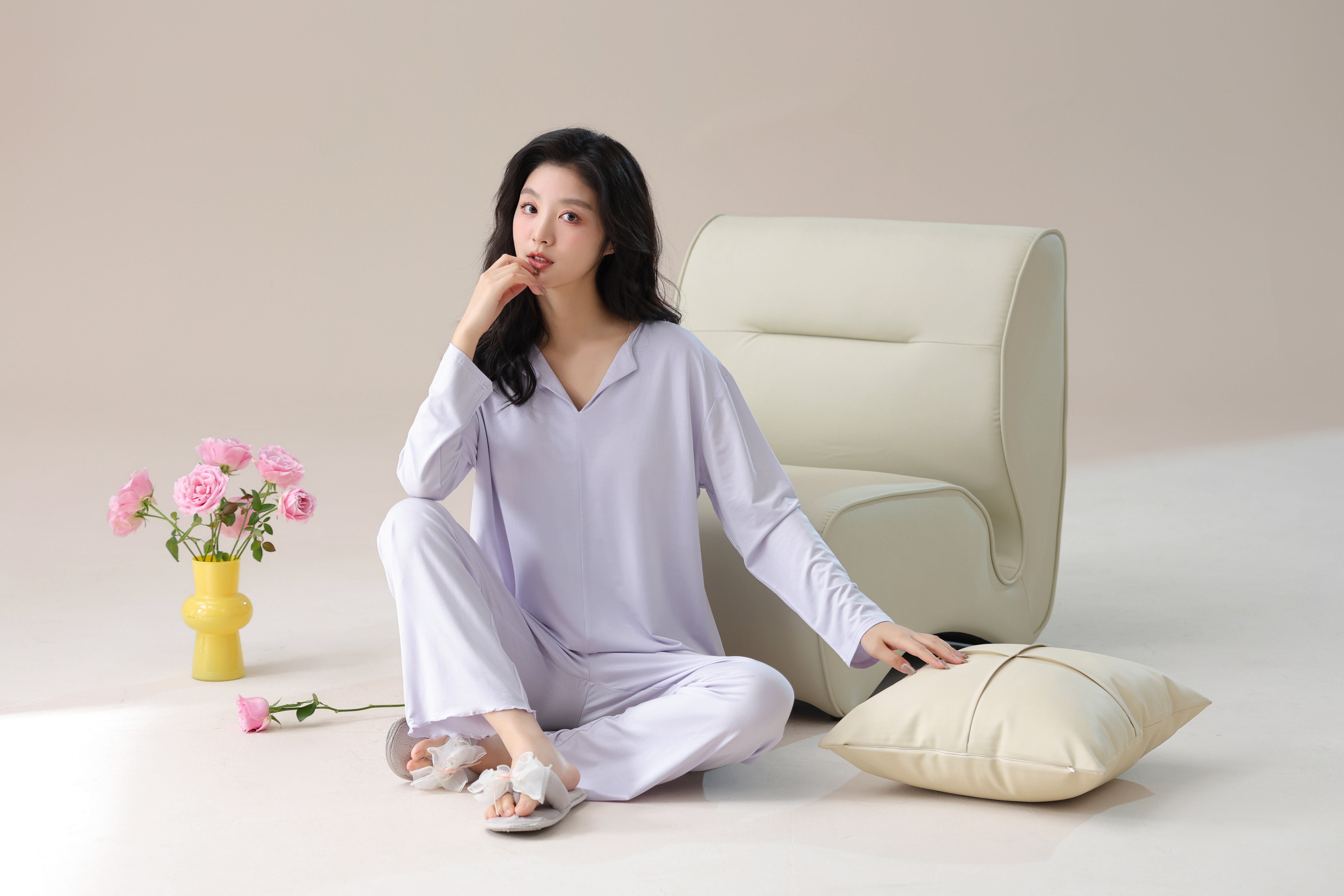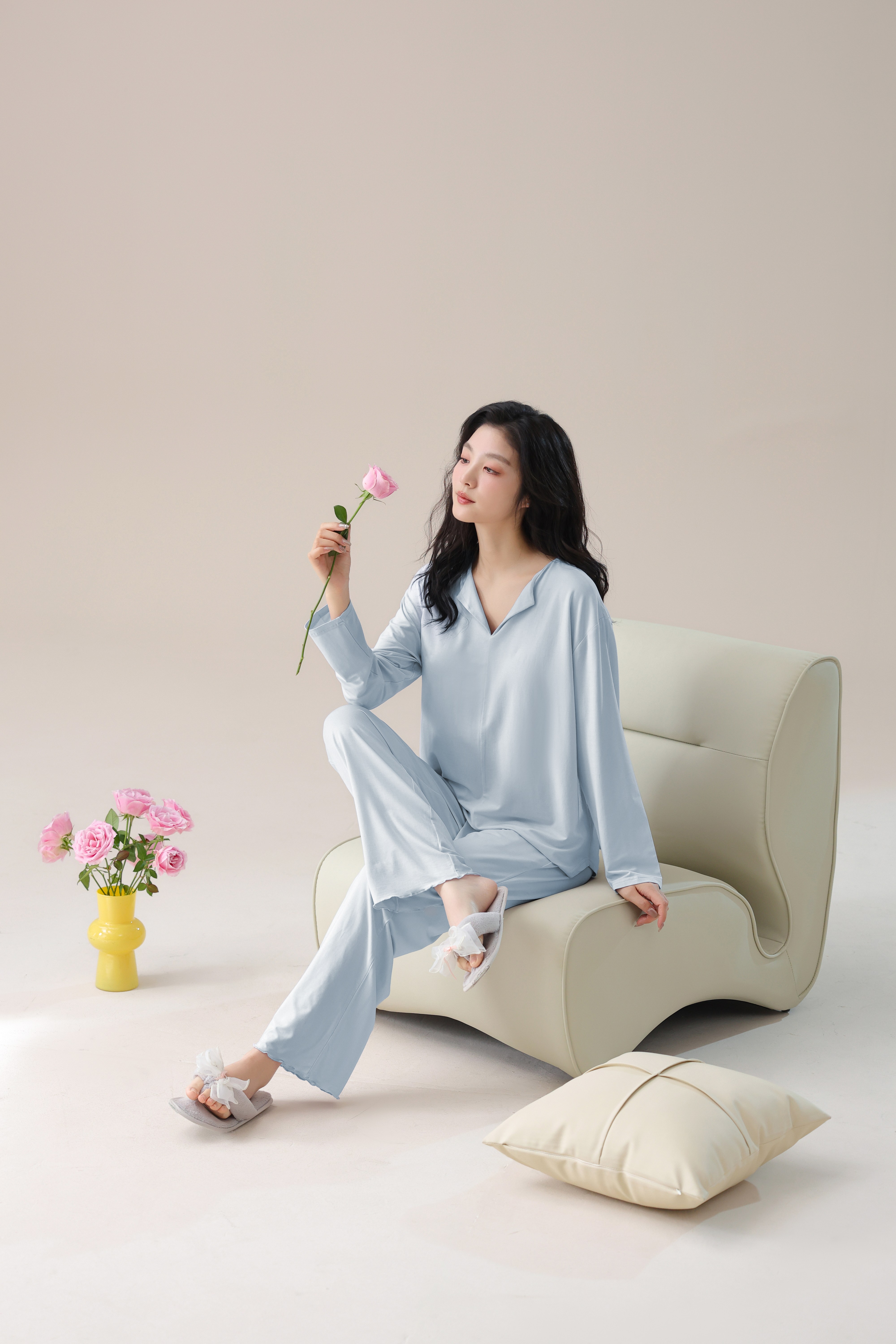 【轻梵 长袖新款莫代尔带胸垫家居服】带胸垫防凸点长袖家居服套装 宽松慵懒亲肤 无感bra