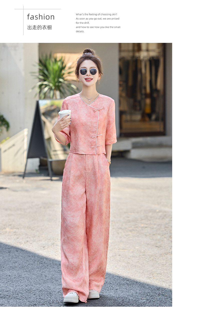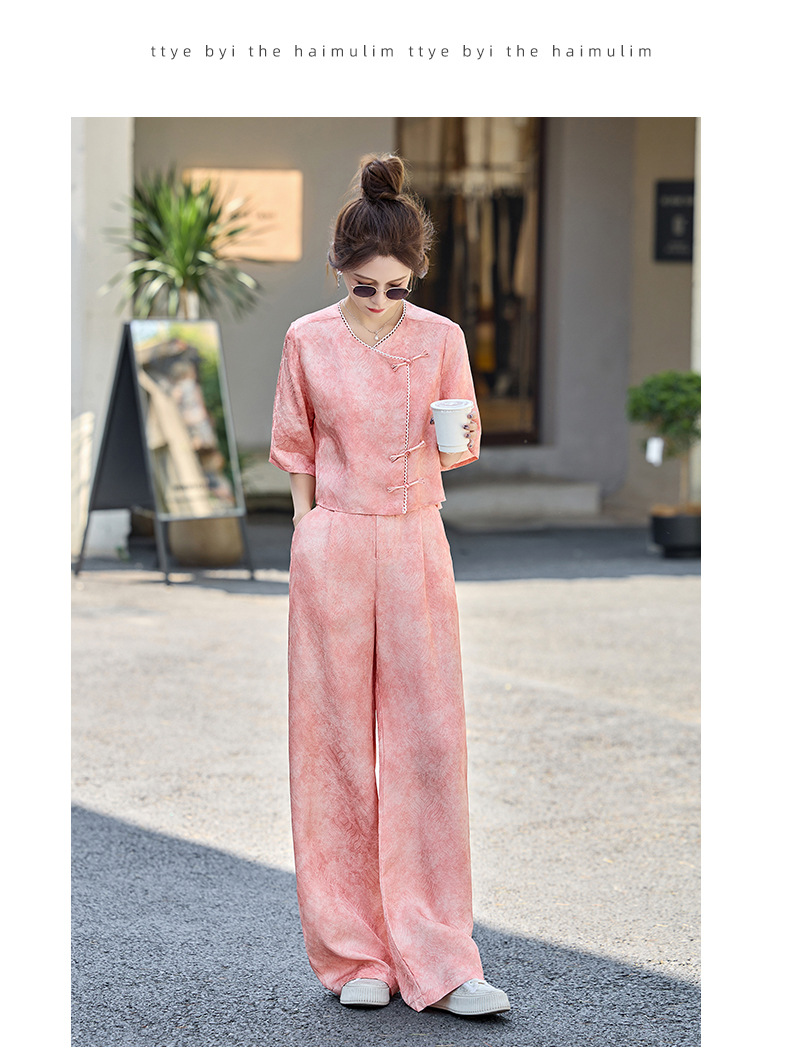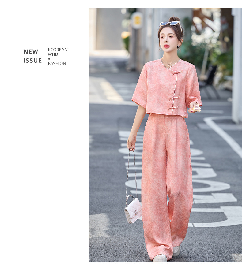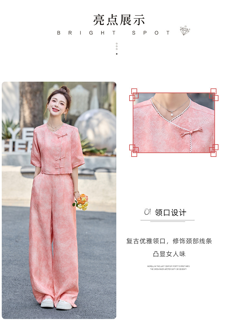 巨好看的年轻洋气套装女2025夏季新款民国风中式盘扣超火两件套裤HR-YQH9235