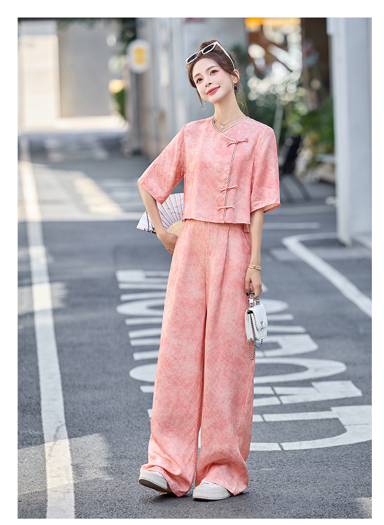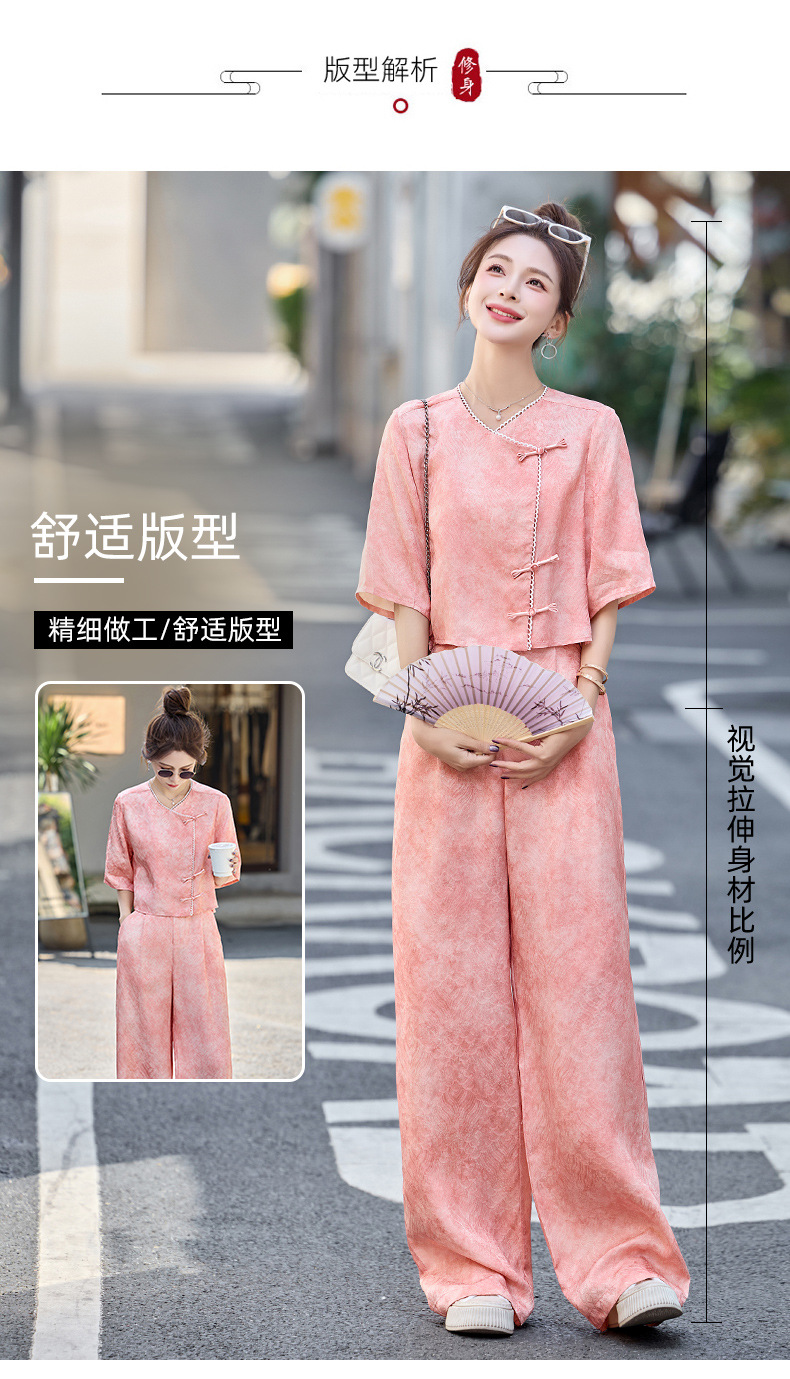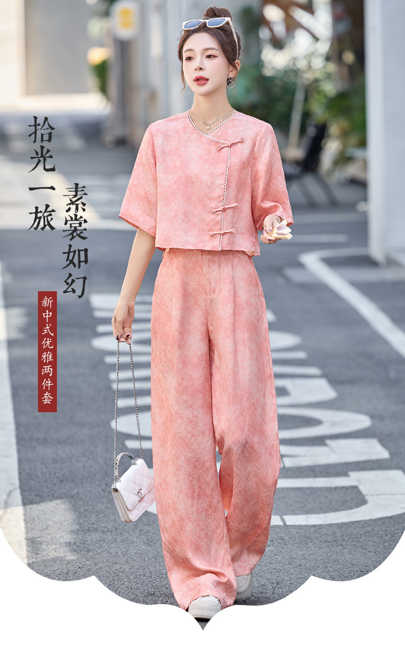 巨好看的年轻洋气套装女2025夏季新款民国风中式盘扣超火两件套裤HR-YQH9235
