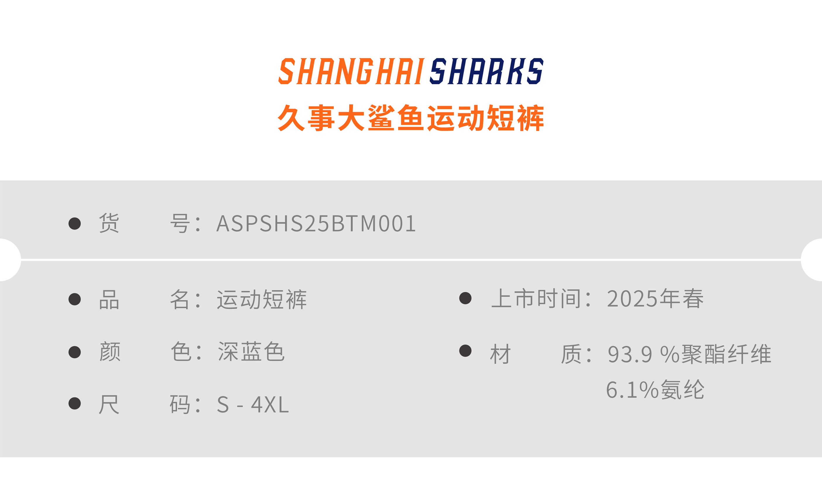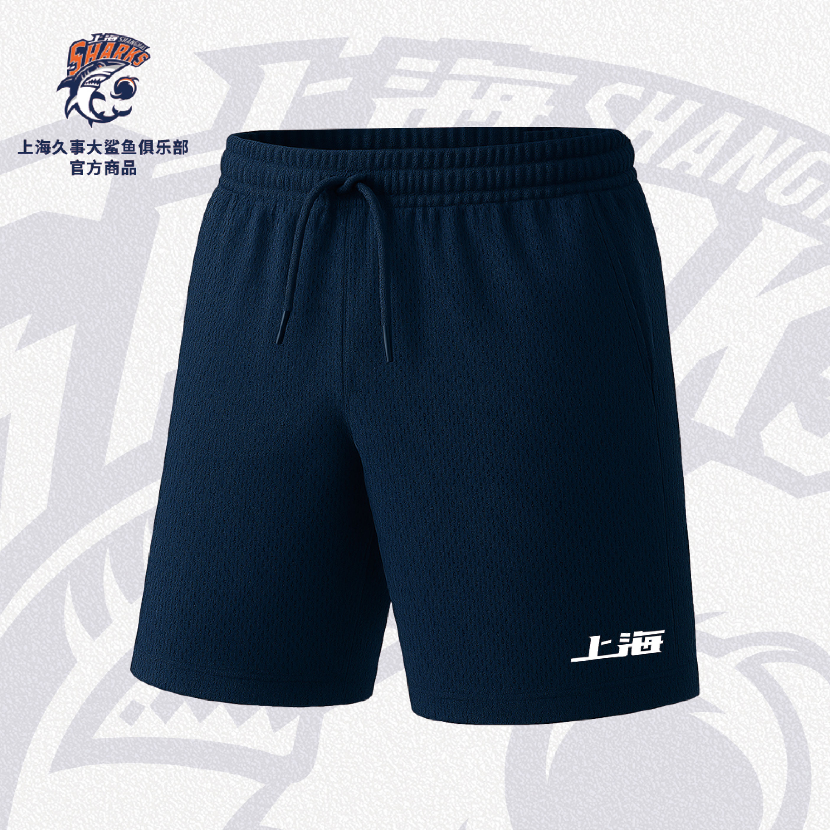 【官方正版】上海久事大鲨鱼俱乐部 | 深蓝色运动短裤抽绳透气网眼防晒面料