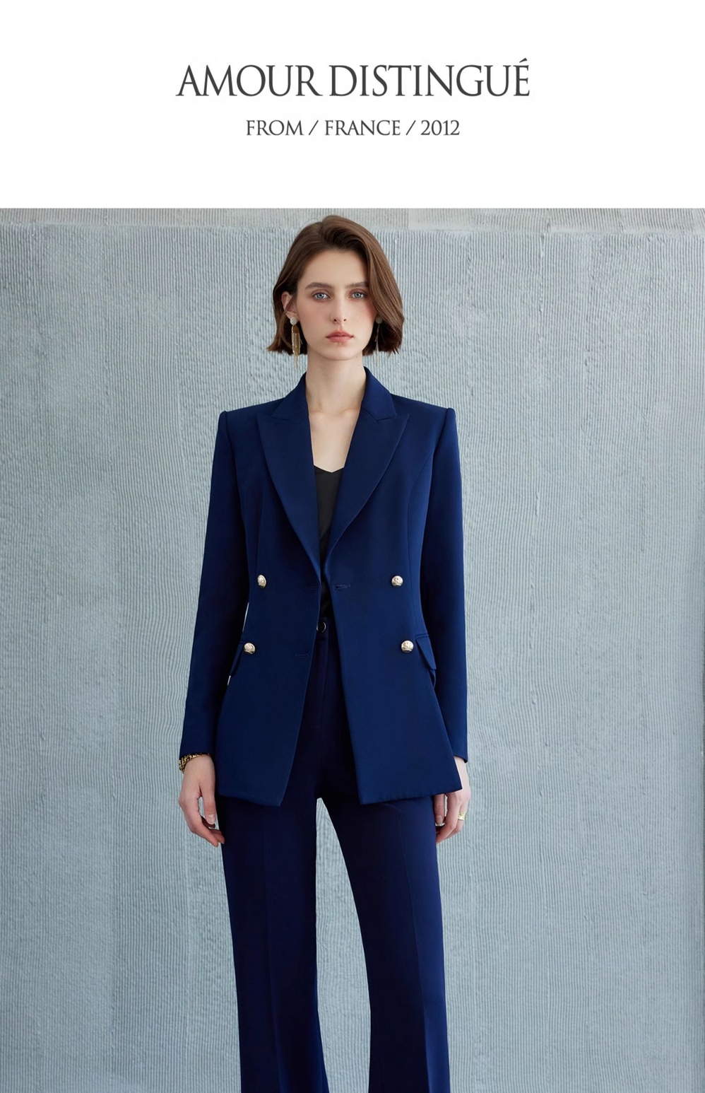 IWY/藏青色西装套装高级感公务员面试正装酒店经理职业装总裁西服CP2085