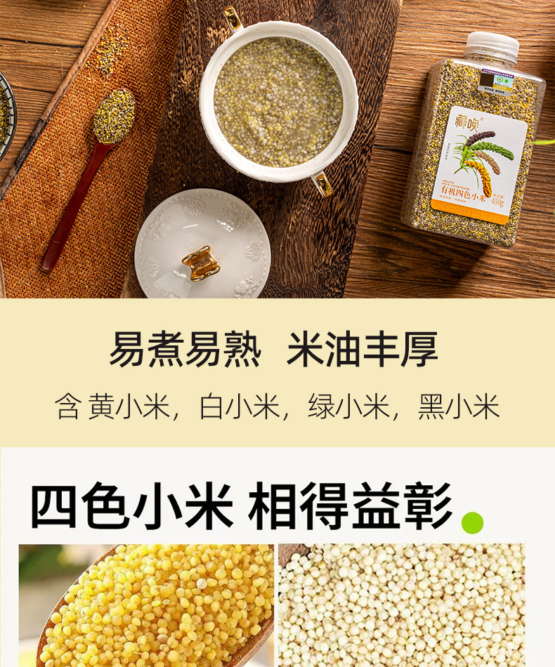 有机四色小米450g内蒙敖汉黄小米黑小米早餐谷物杂粮组合粗粮粥米