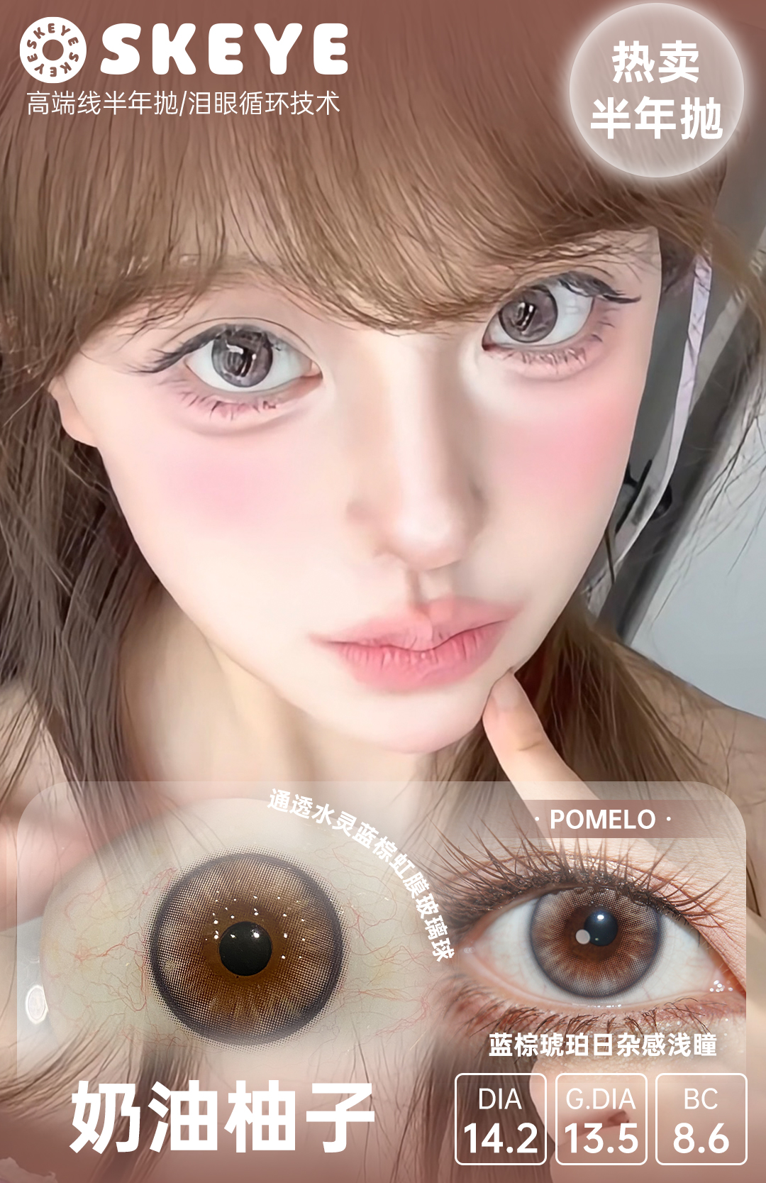 skeye半年抛 奶油柚子 14.2mm 蓝棕 着色13.5 非离子
