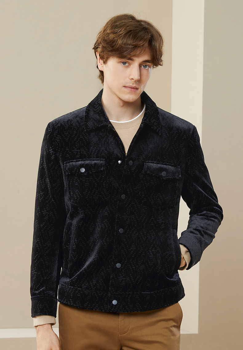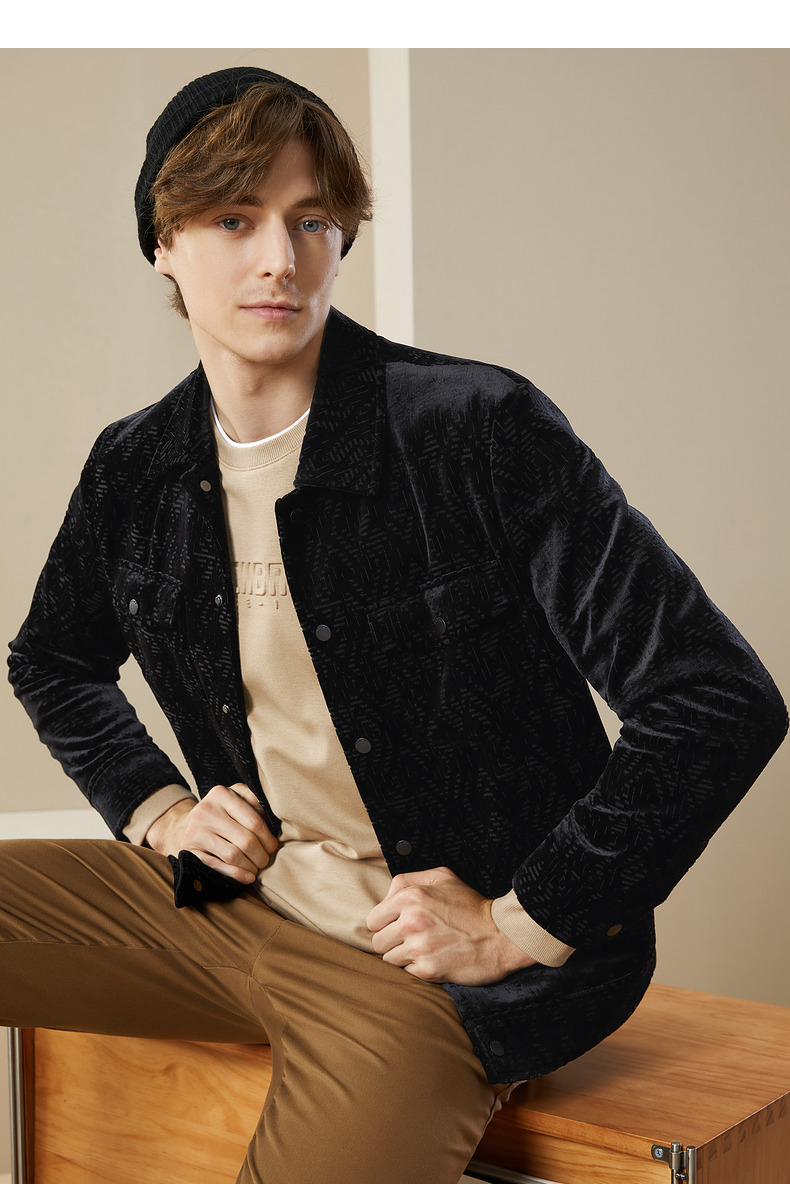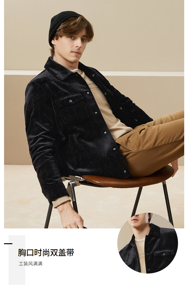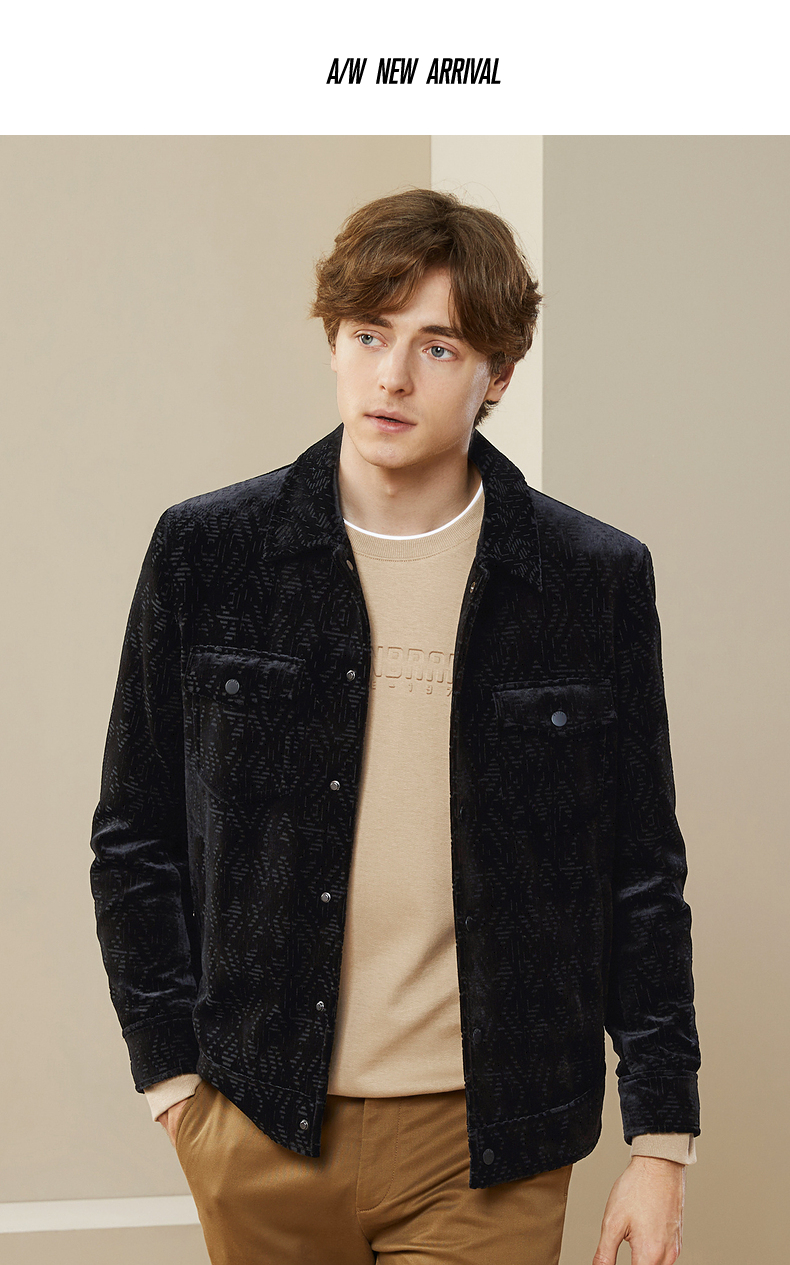 【丝绒面料】柒牌夹克外套男秋季新款时尚潮流黑色工装翻领茄克衫 125K70480