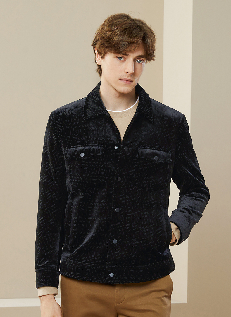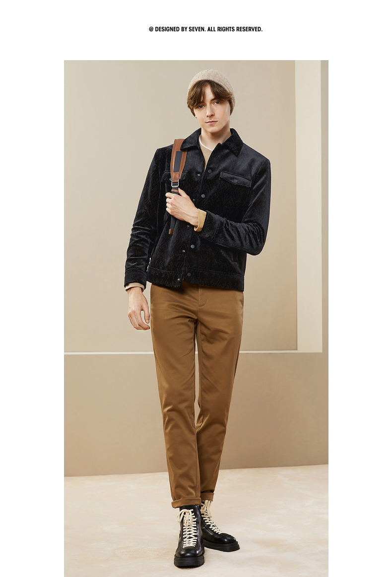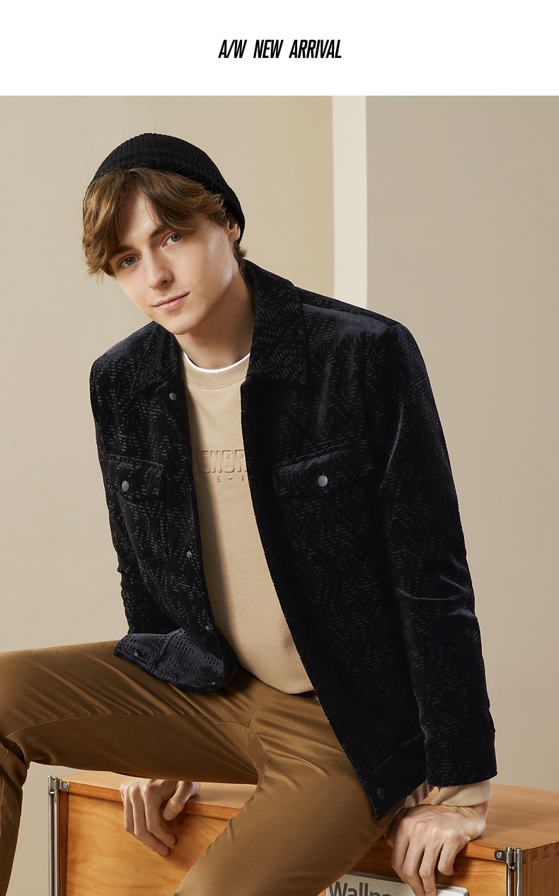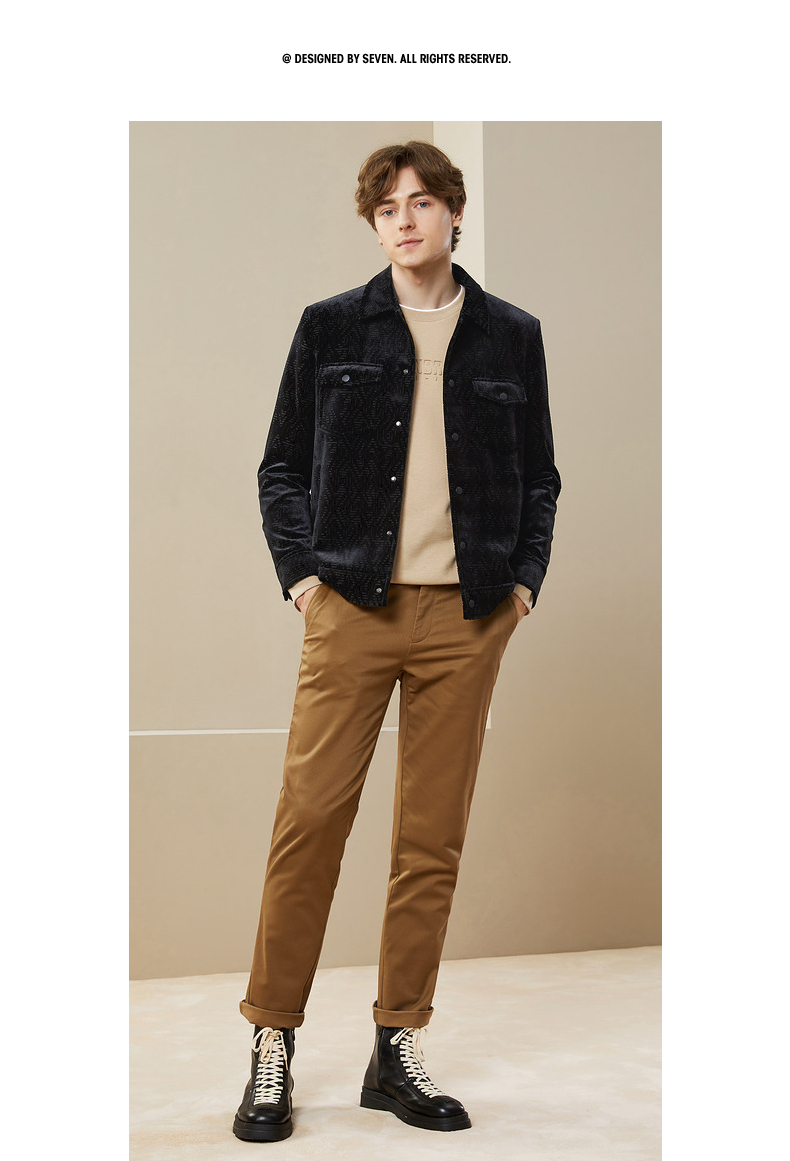 【丝绒面料】柒牌夹克外套男秋季新款时尚潮流黑色工装翻领茄克衫 125K70480