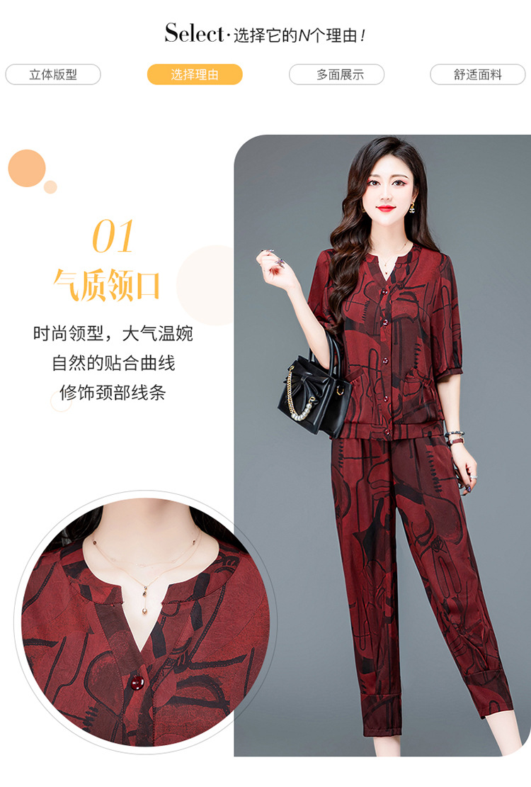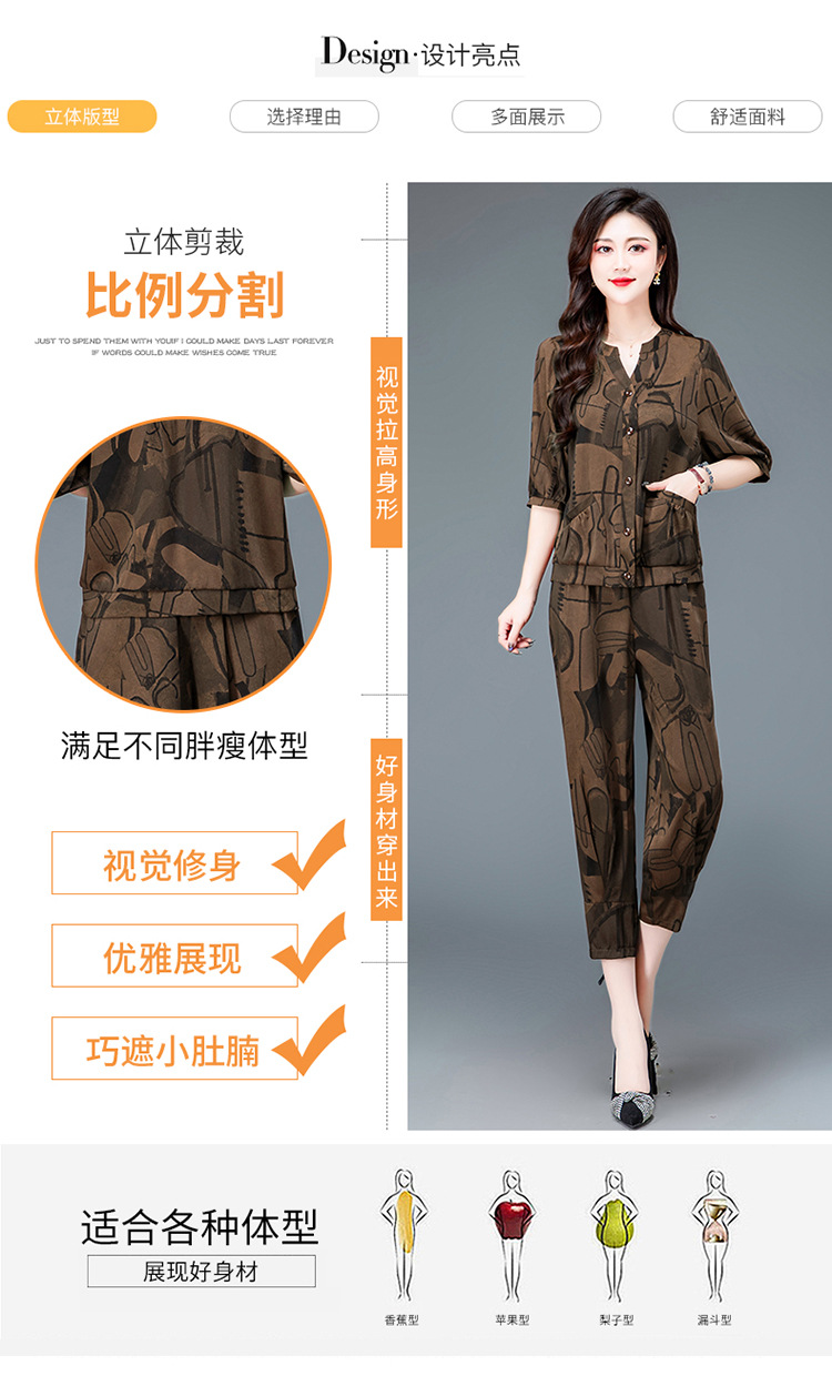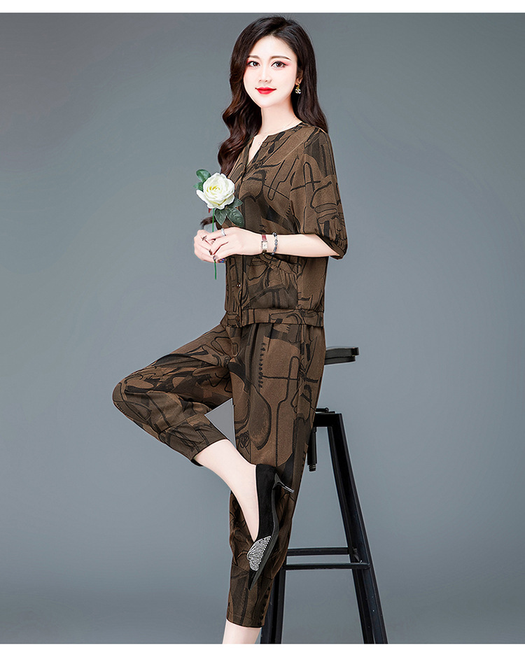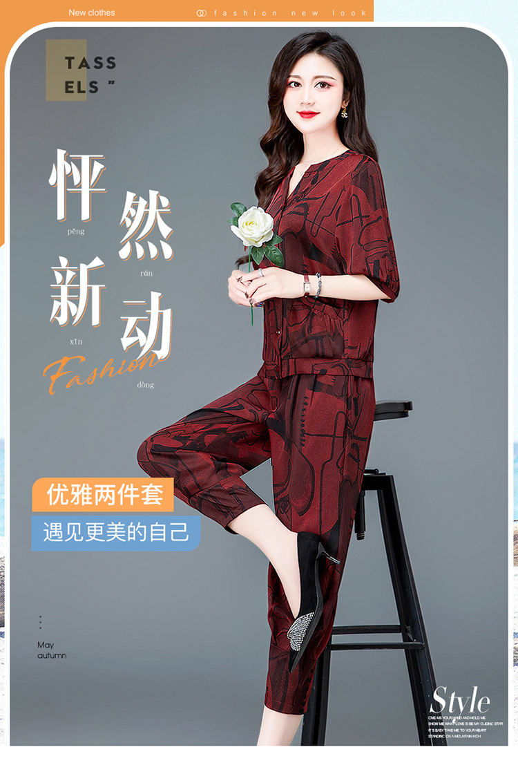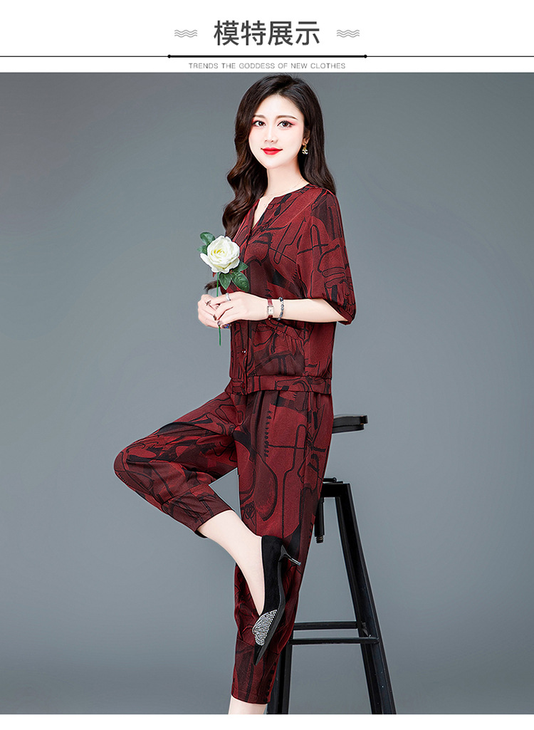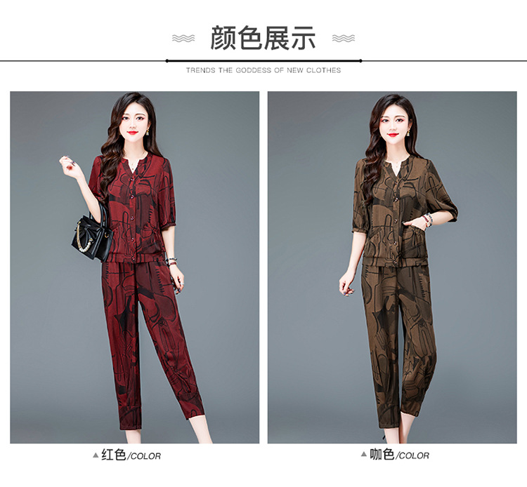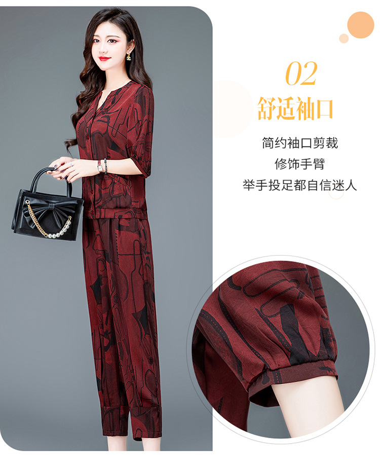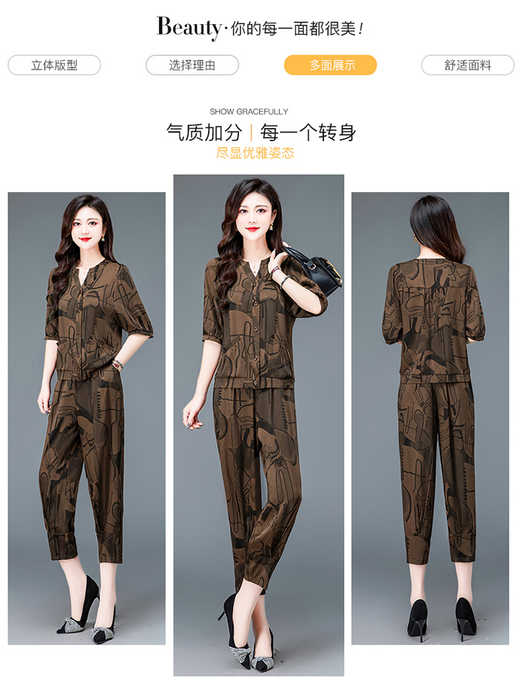 时尚妈妈装套装,印花两件套打底衫高腰哈伦裤小脚裤QYM-TYH-23B856 -Y